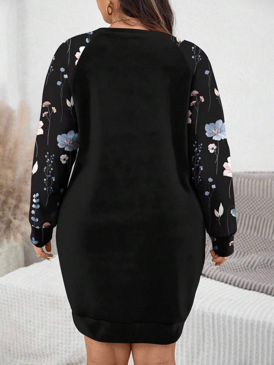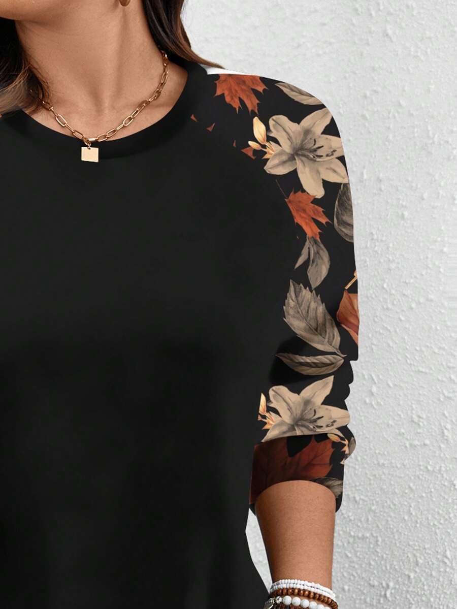 Chic Plus Size Floral Sweatshirt for Autumn & Winter: Elegant Minimalist Style