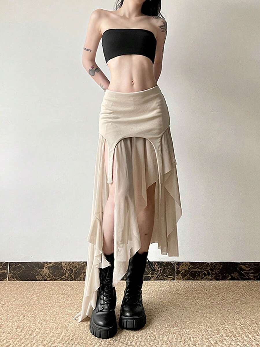 Chic Solid Color Fitted Asymmetric Hem Skirt for Effortless Street Style