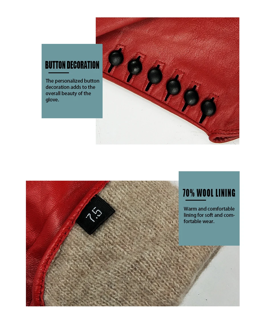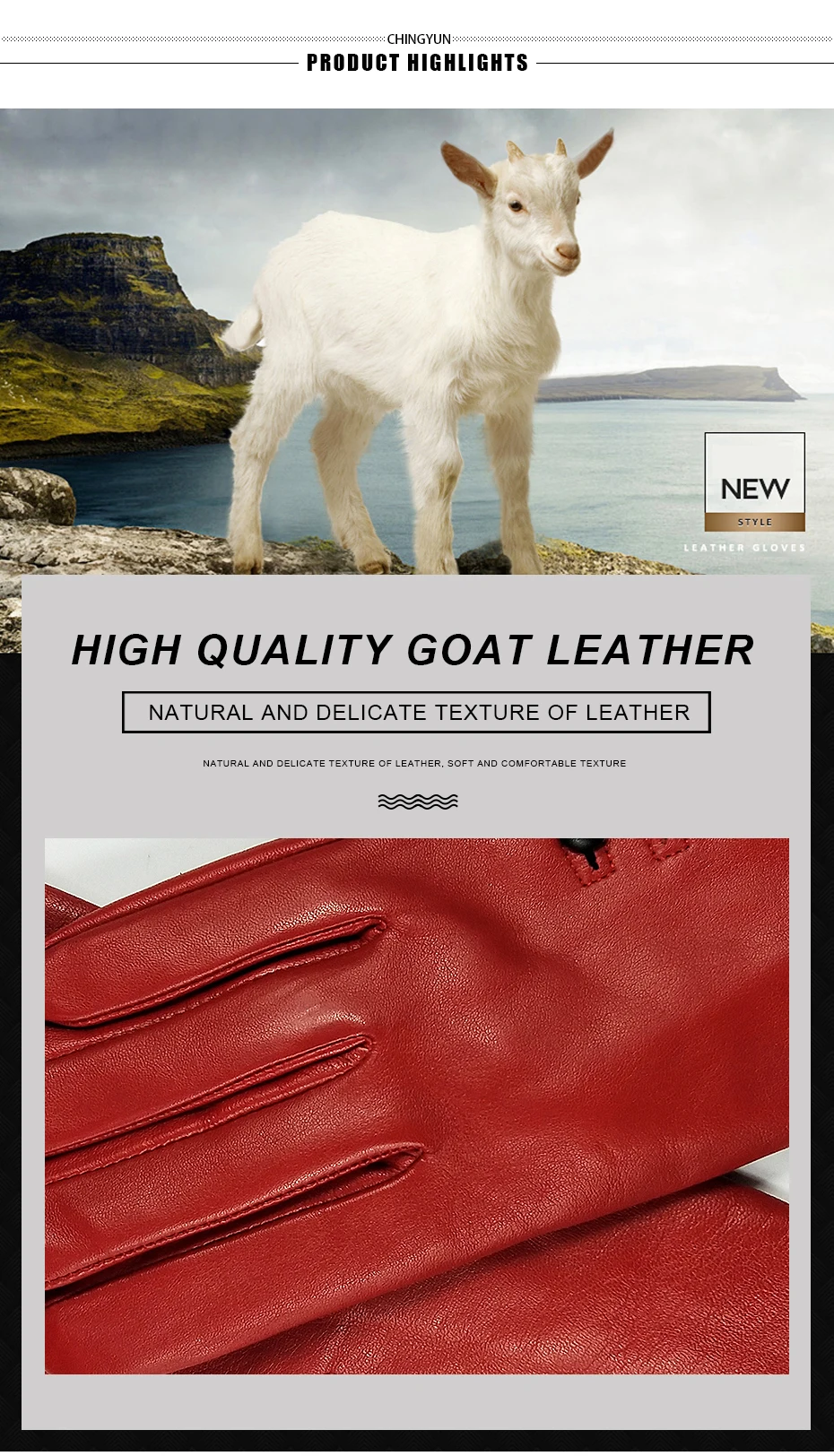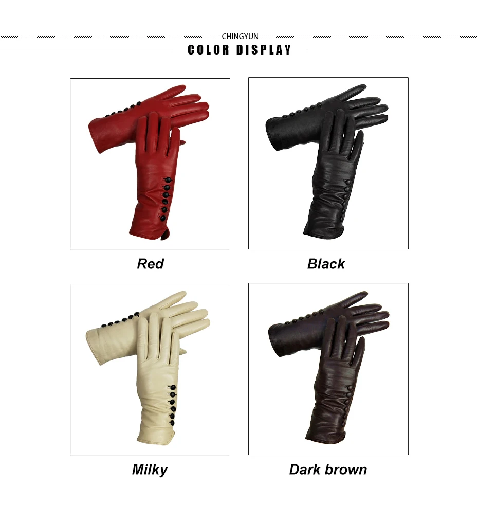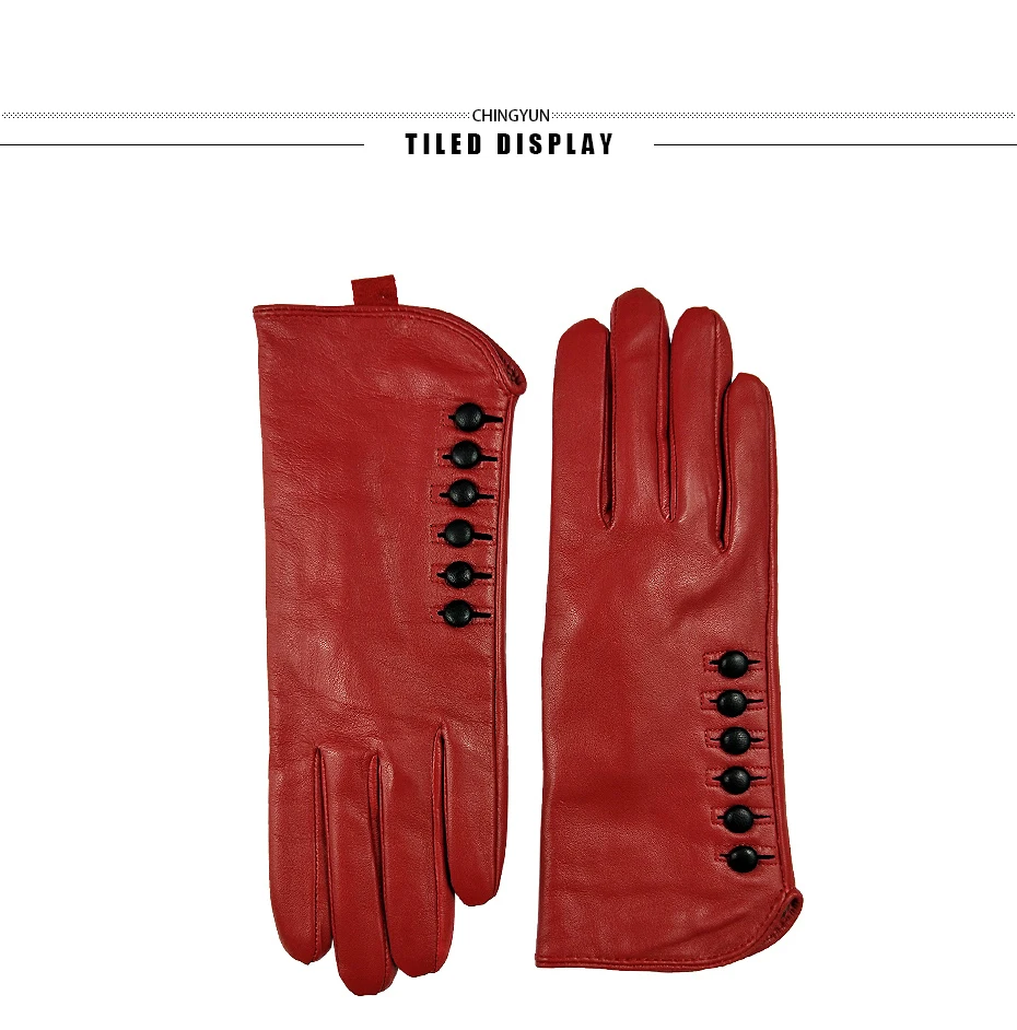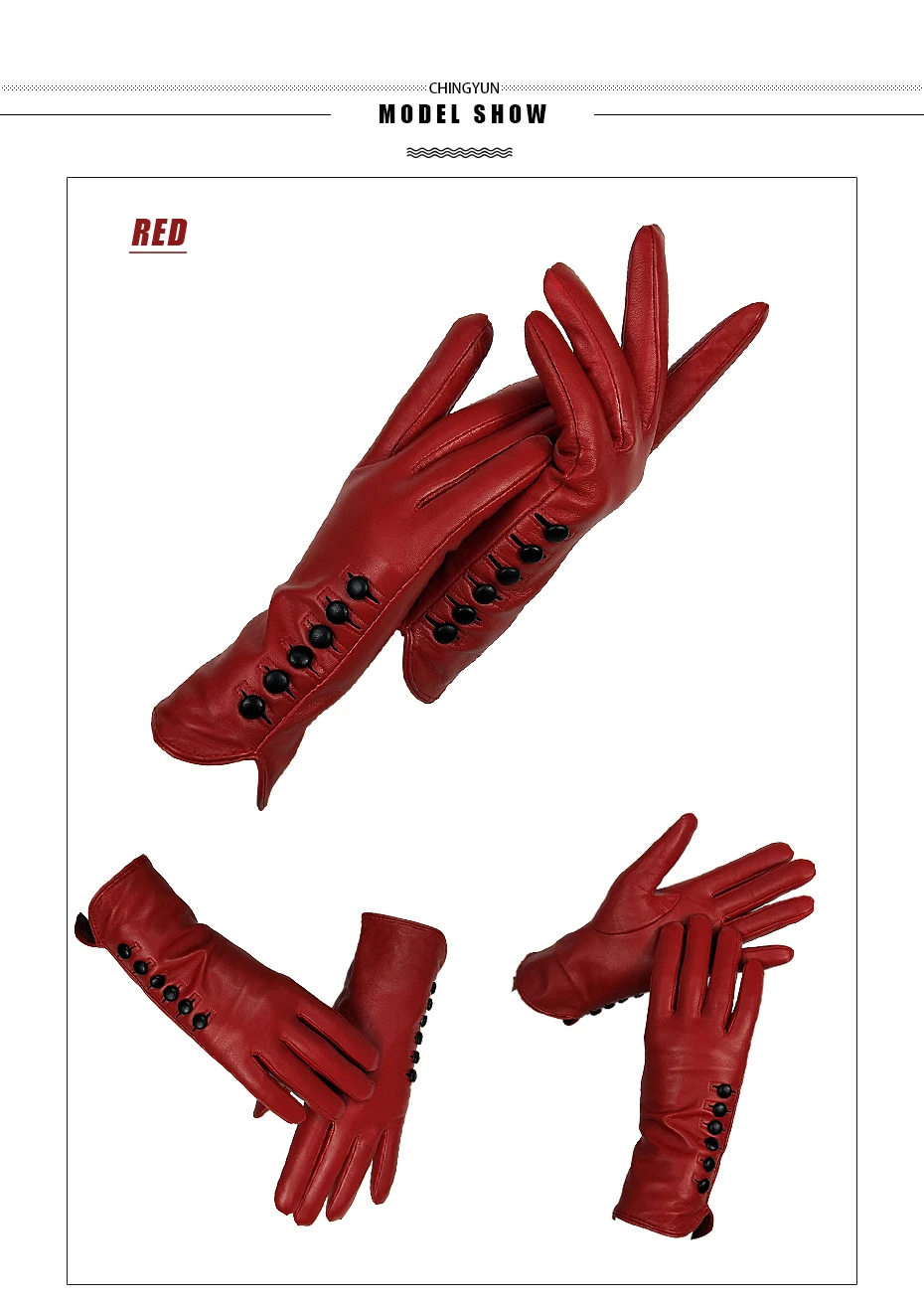 CHING YUN New Women Gloves Genuine Leather Winter Autumn Ladies Fashion Brand High quality goat skin Warm 6 buckle gloves womanNote: