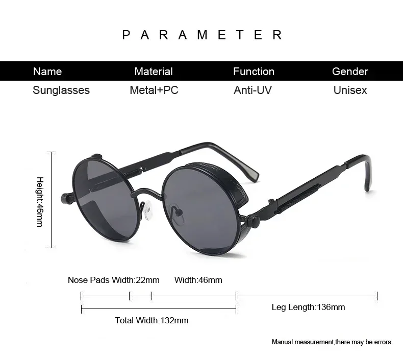 Classic Gothic Steampunk Sunglasses Luxury Brand Designer High Quality Men and Women Retro Round Metal Frame Sunglasses UV400