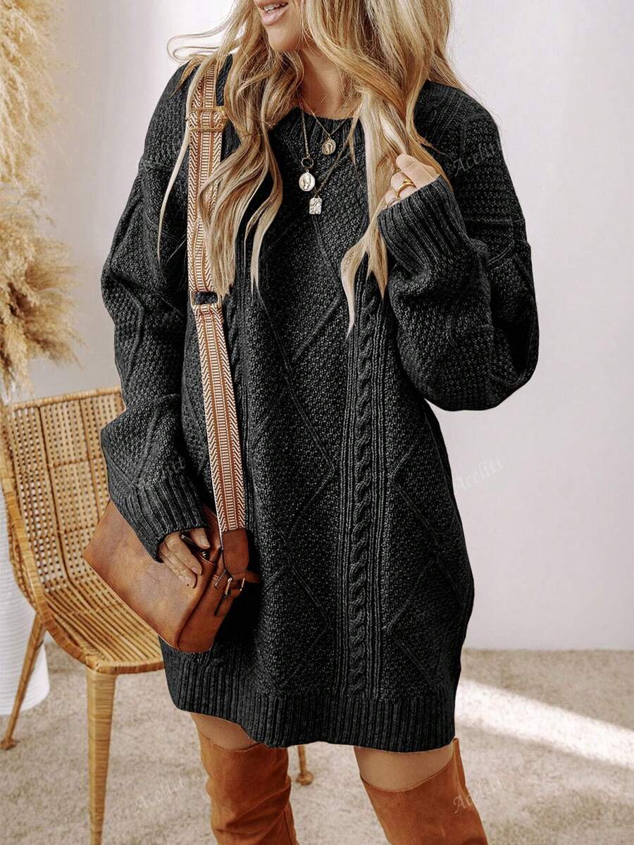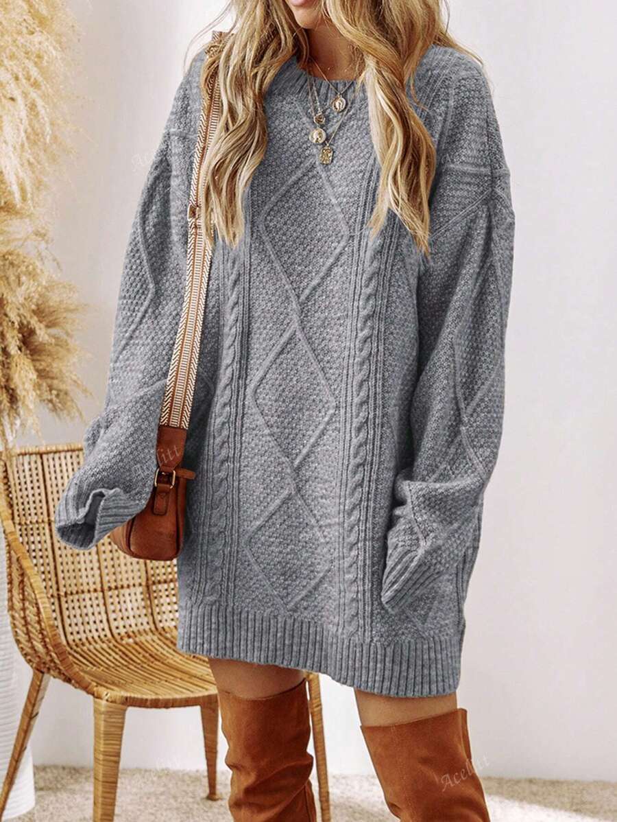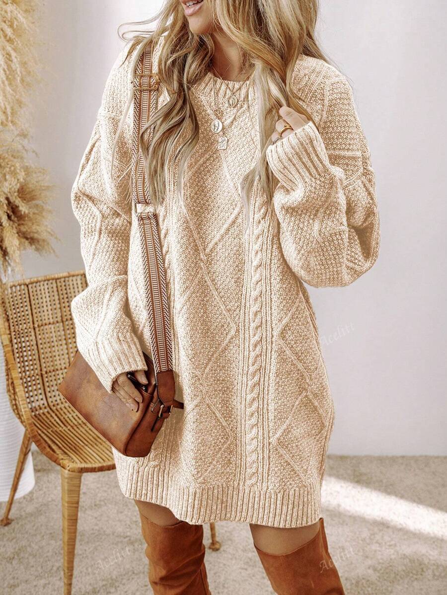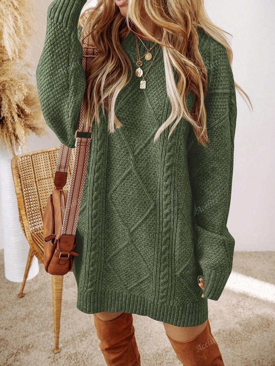 Cozy Chic: Acelitt Oversized Knitted Sweater Dress for Autumn & Winter