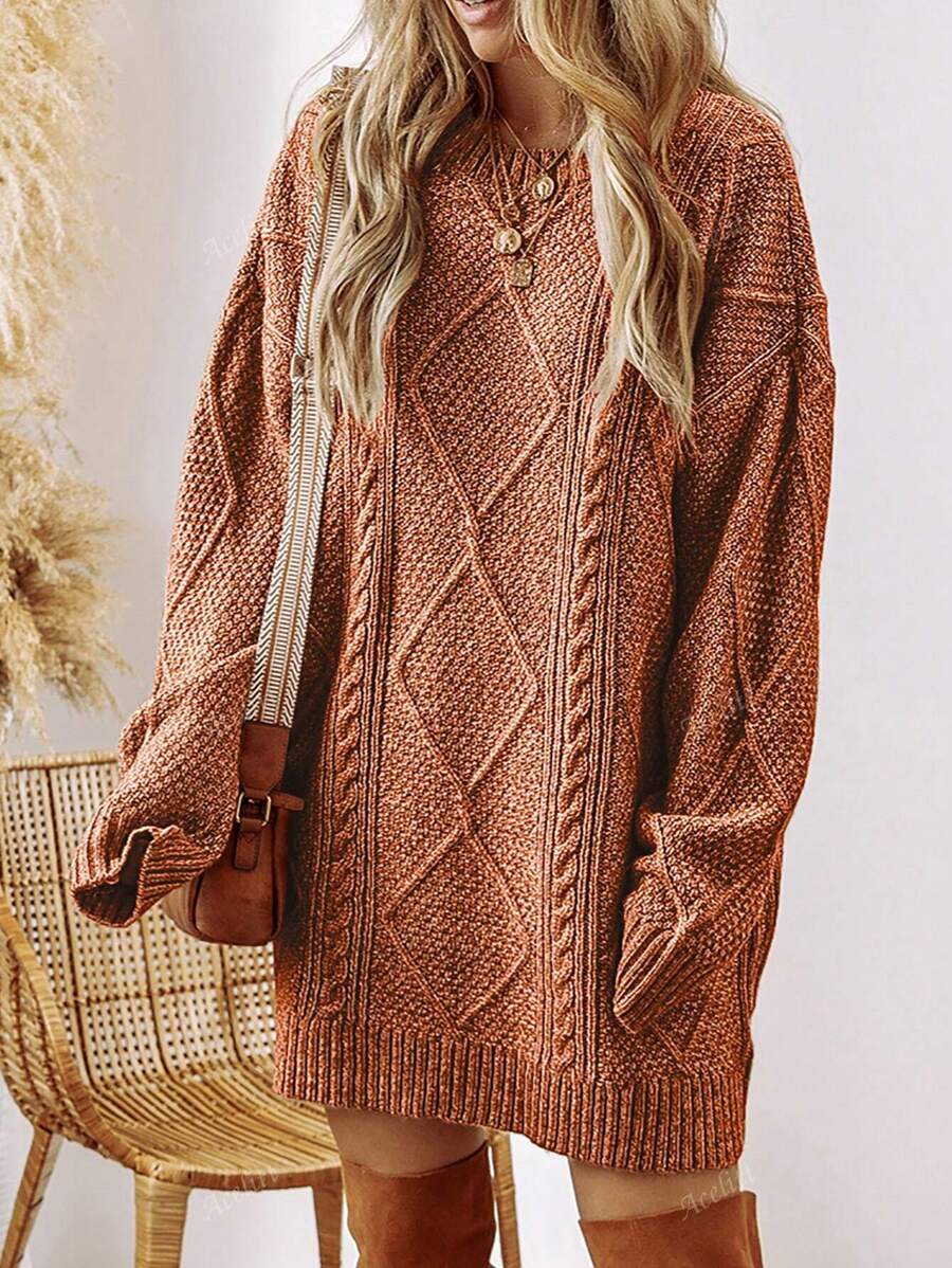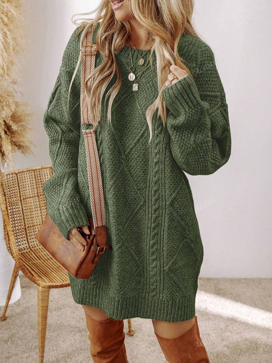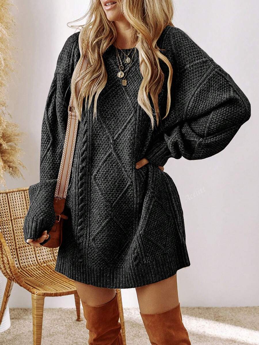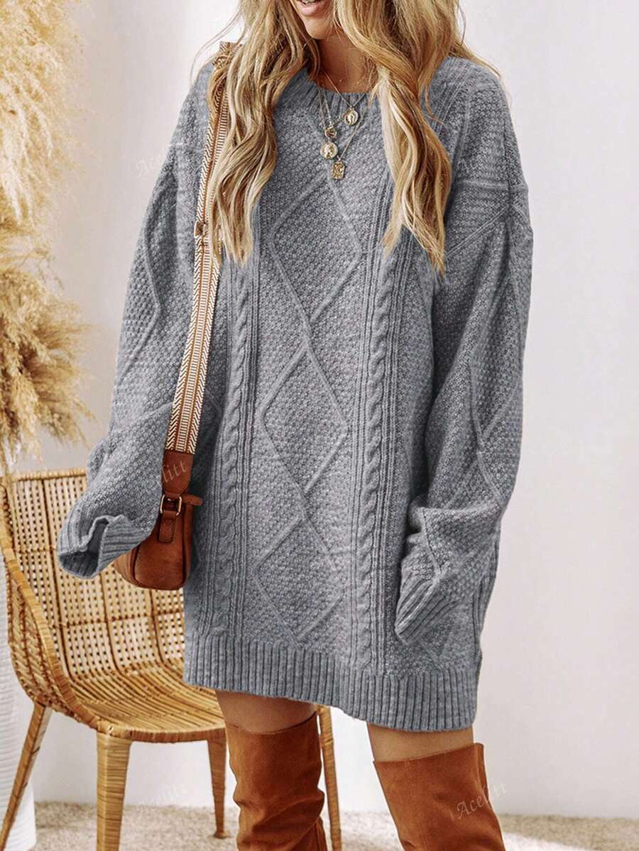 Cozy Chic: Acelitt Oversized Knitted Sweater Dress for Autumn & Winter