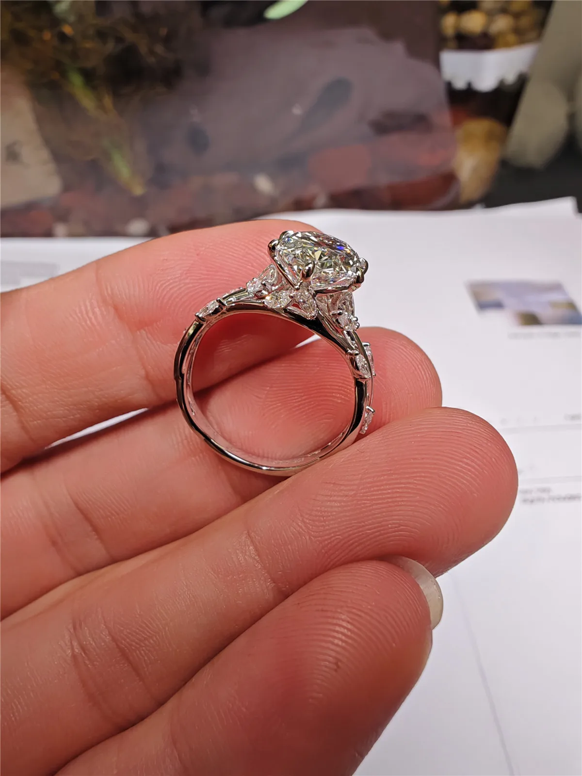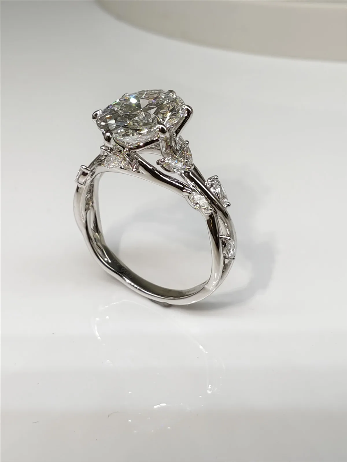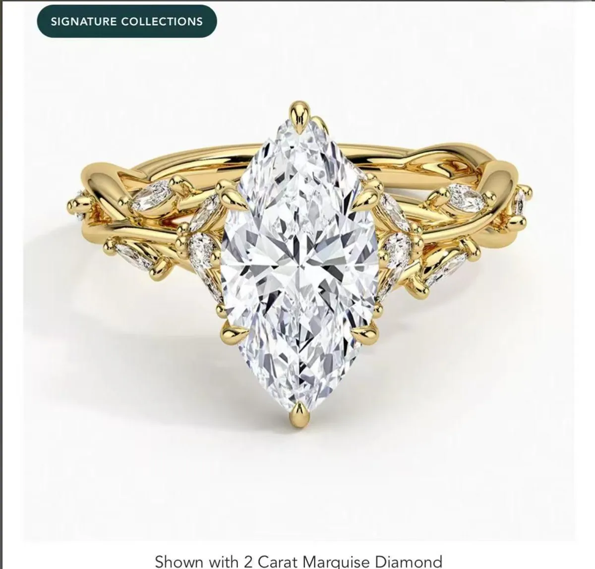 Custom 18K Solid Gold Lab-Grown Marquise Diamond 2 Carat E VVS2 Engagement Ring with Diamond Vine Design in 10K YELLOW GOLD