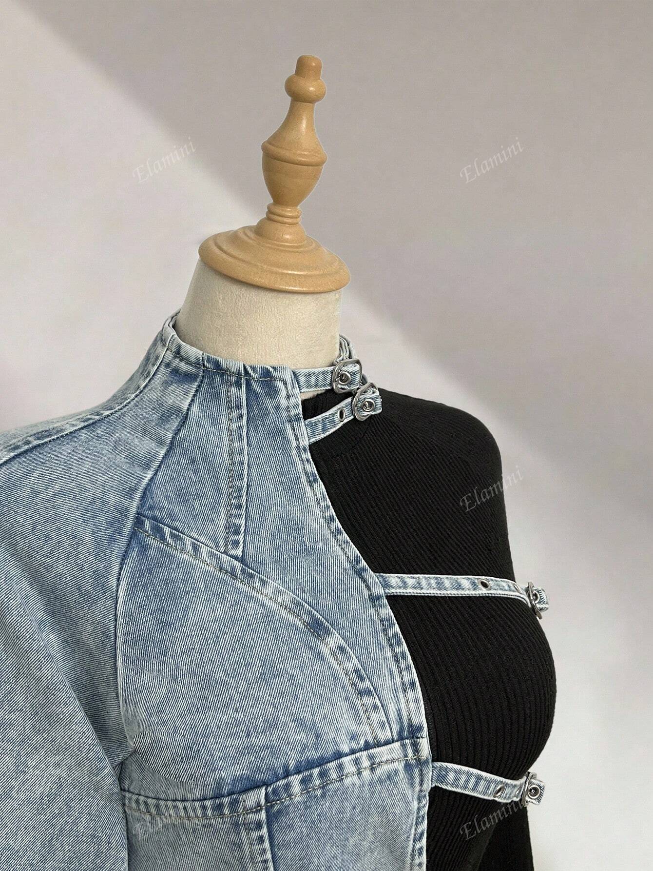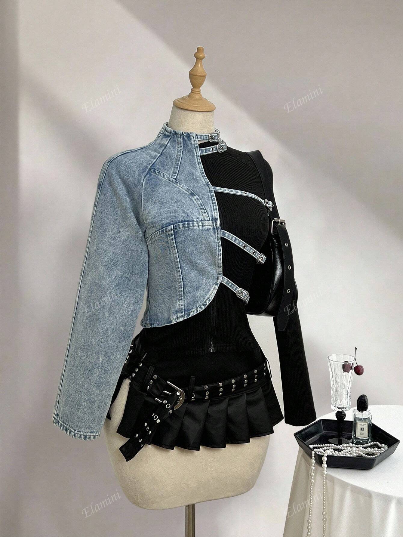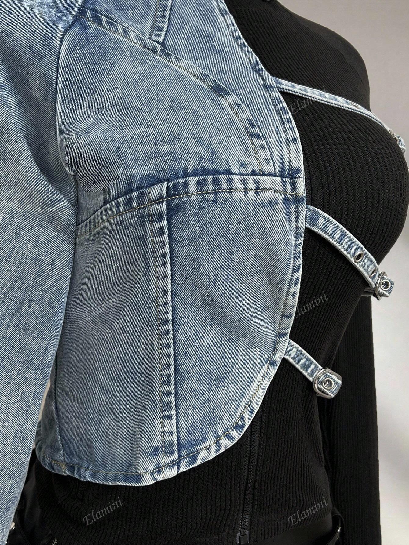 Elamini Sexy Distressed Hollow Out Denim Jacket - Trendy Y2K Style for Modern Fashionistas