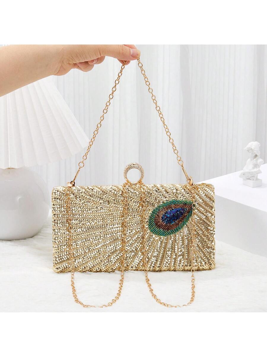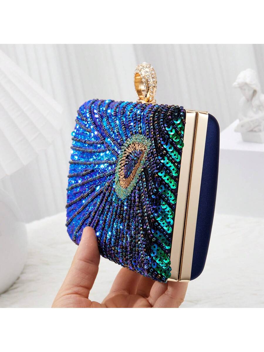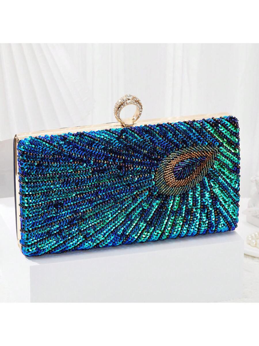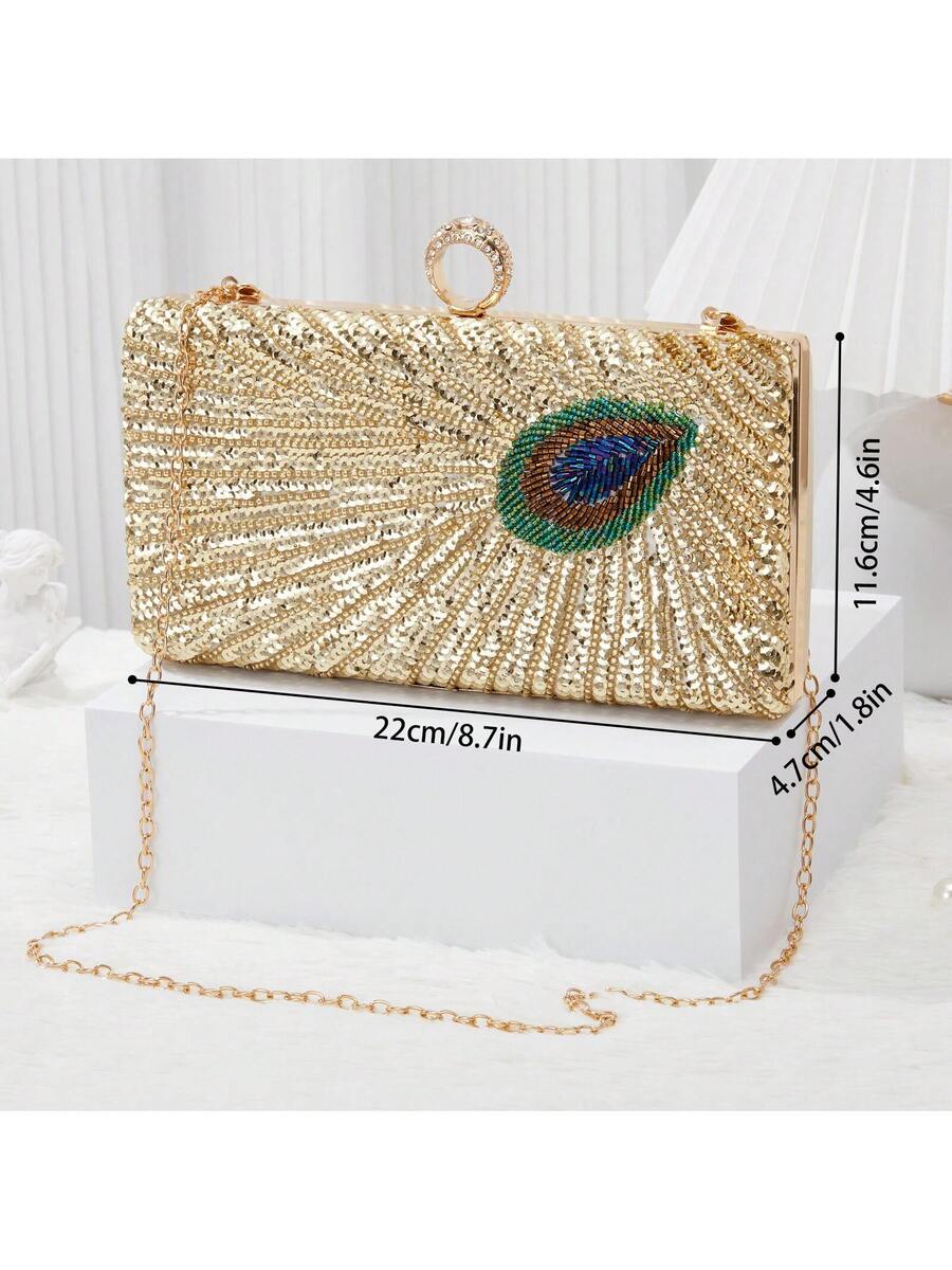 Elegant Luxury Beaded Peacock Evening Bag - Rhinestone Clutch for Weddings and Formal Events