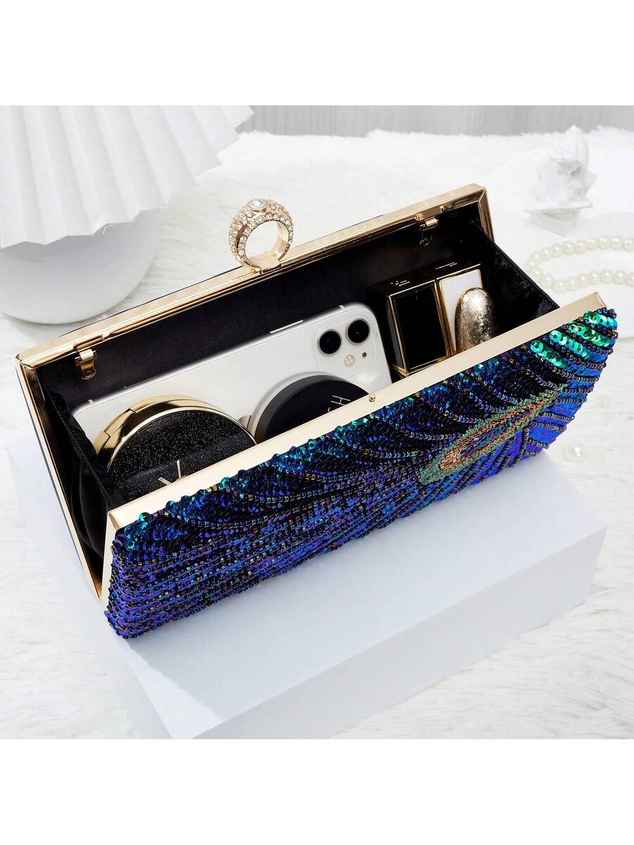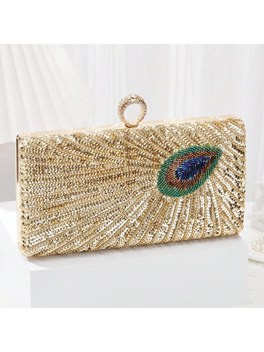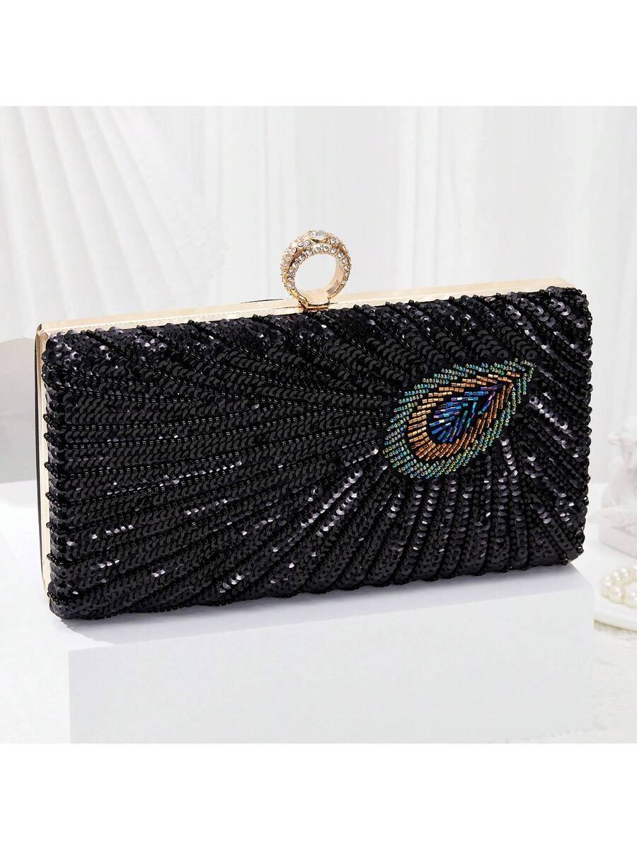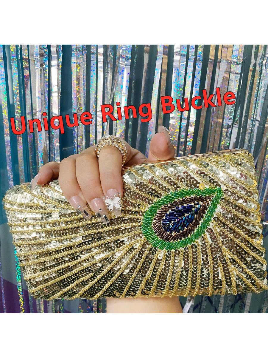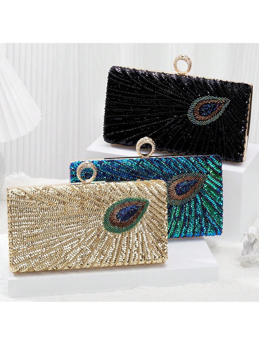 Elegant Luxury Beaded Peacock Evening Bag - Rhinestone Clutch for Weddings and Formal Events