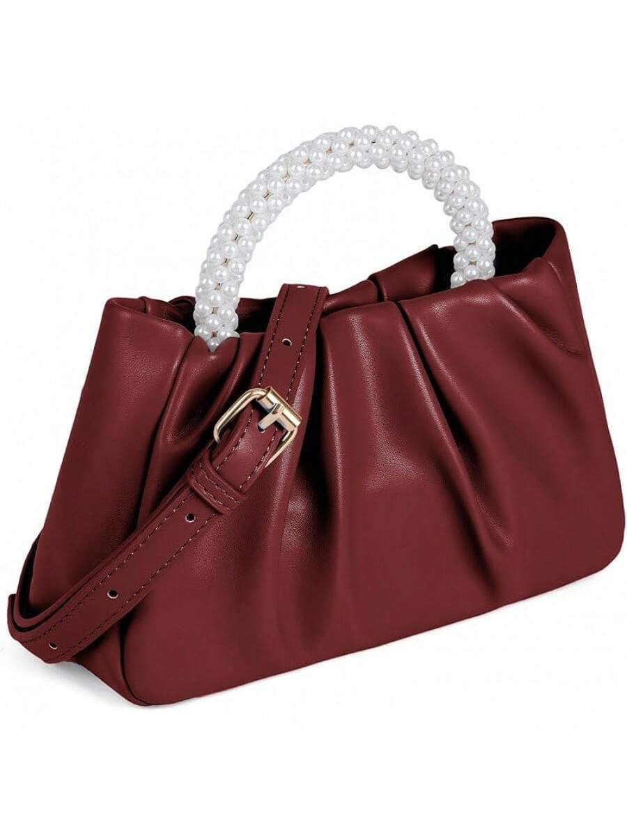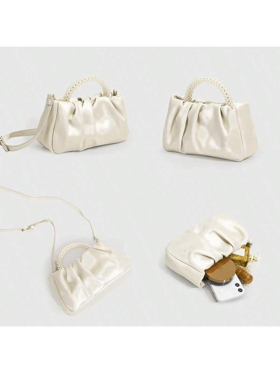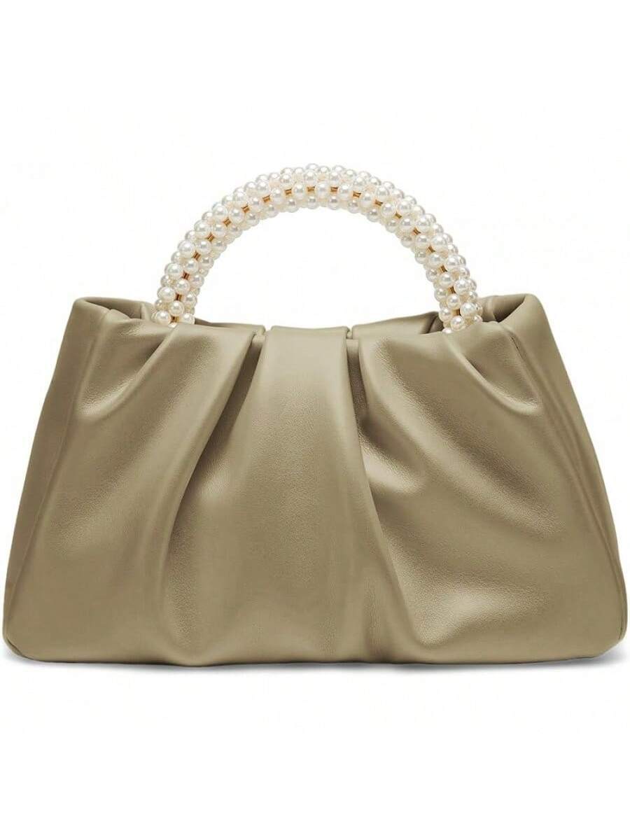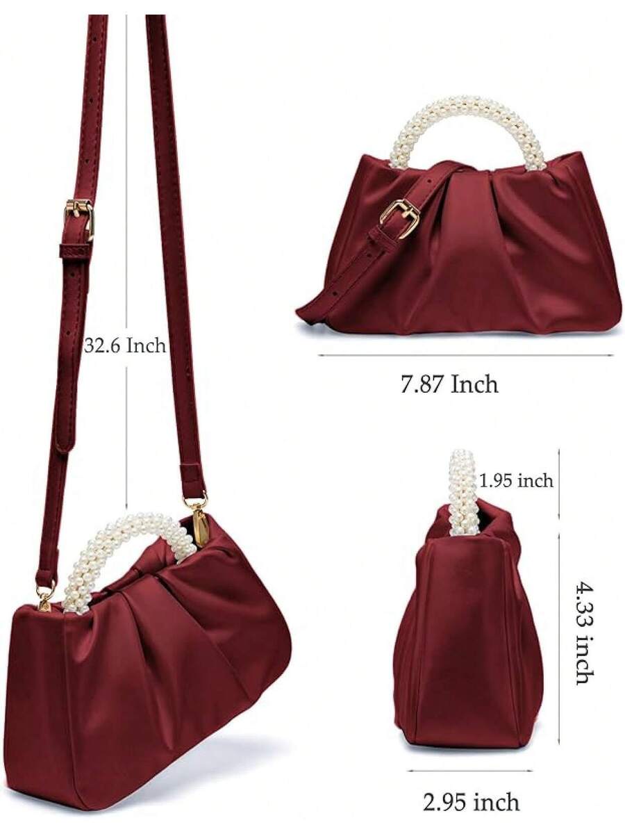 Elegant Pearl-Embellished Evening Purse for Women - Soft Leather Ruched Wedding Clutch & Crossbody Bag