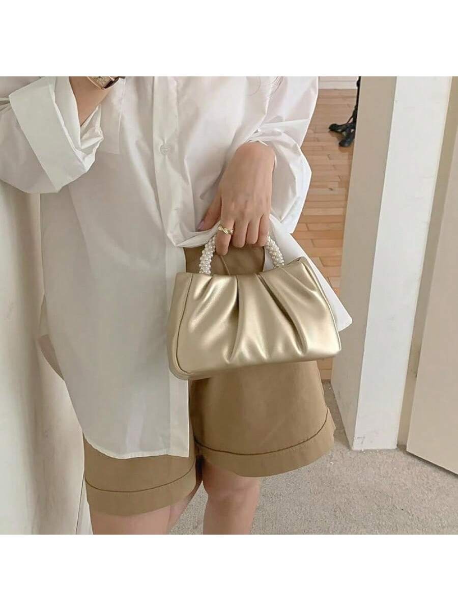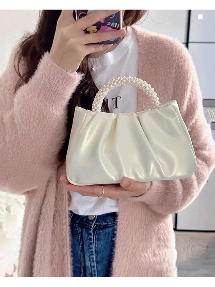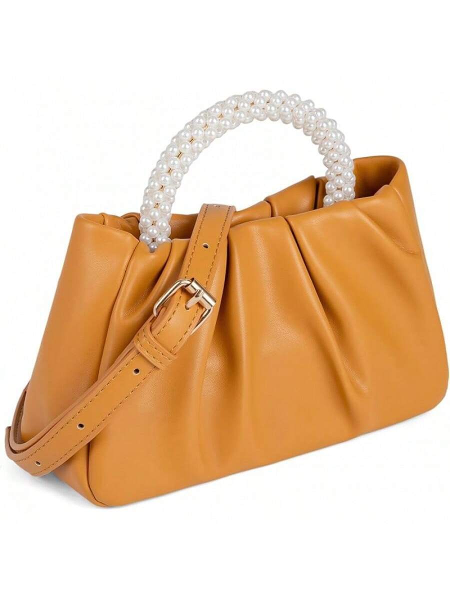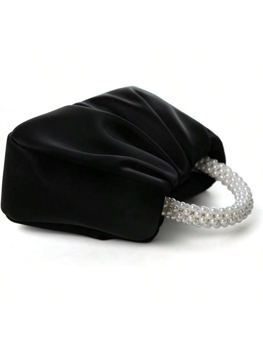Elegant Pearl-Embellished Evening Purse for Women - Soft Leather Ruched Wedding Clutch & Crossbody Bag