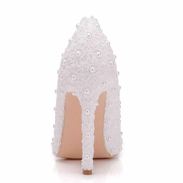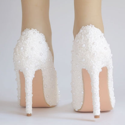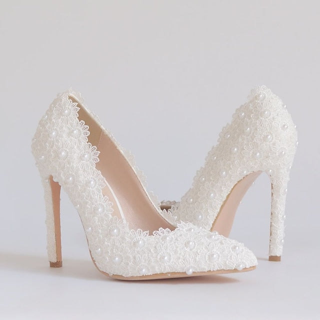 Elegant Vintage Stiletto Heels for Weddings - Lace and Pearl Accented Pointed Toe