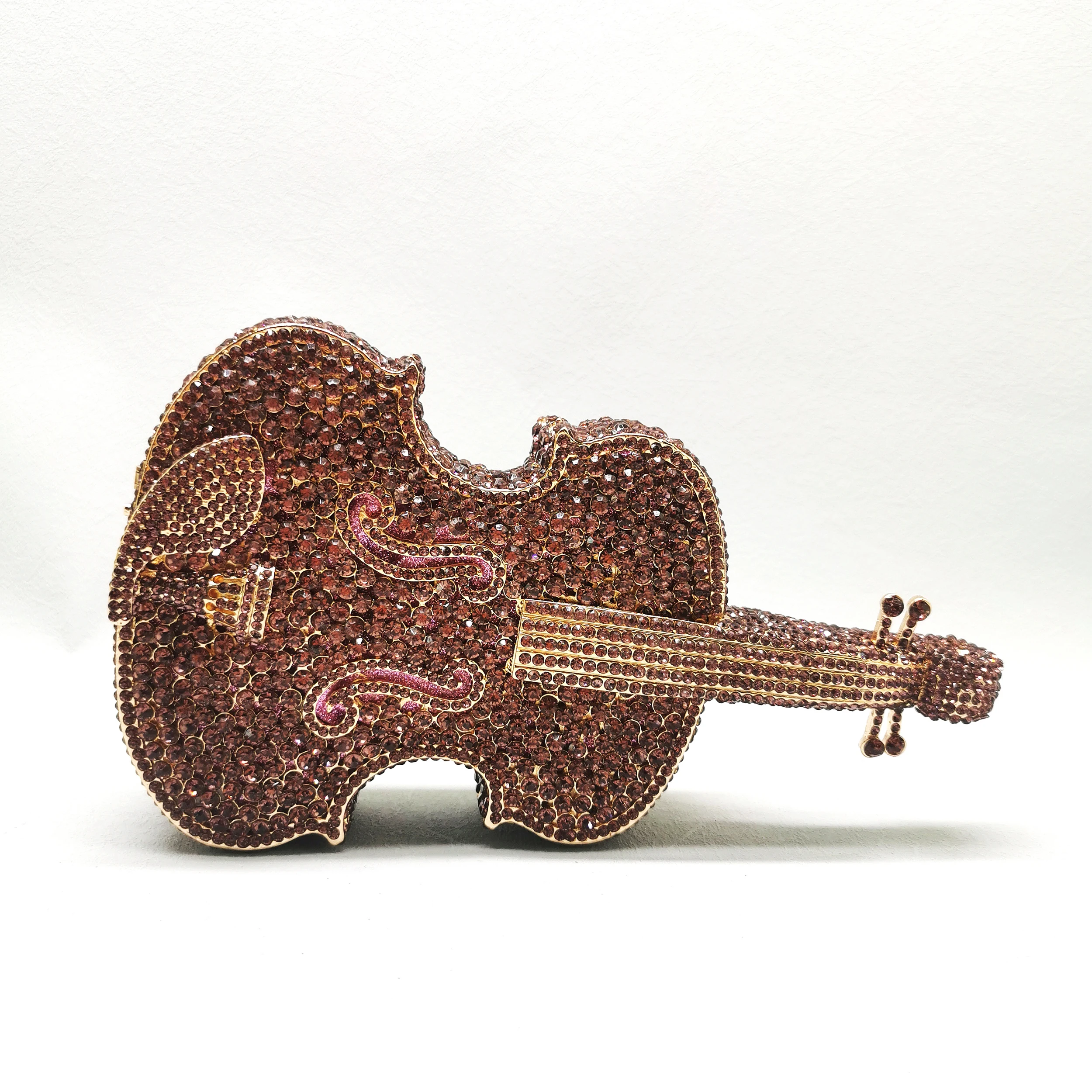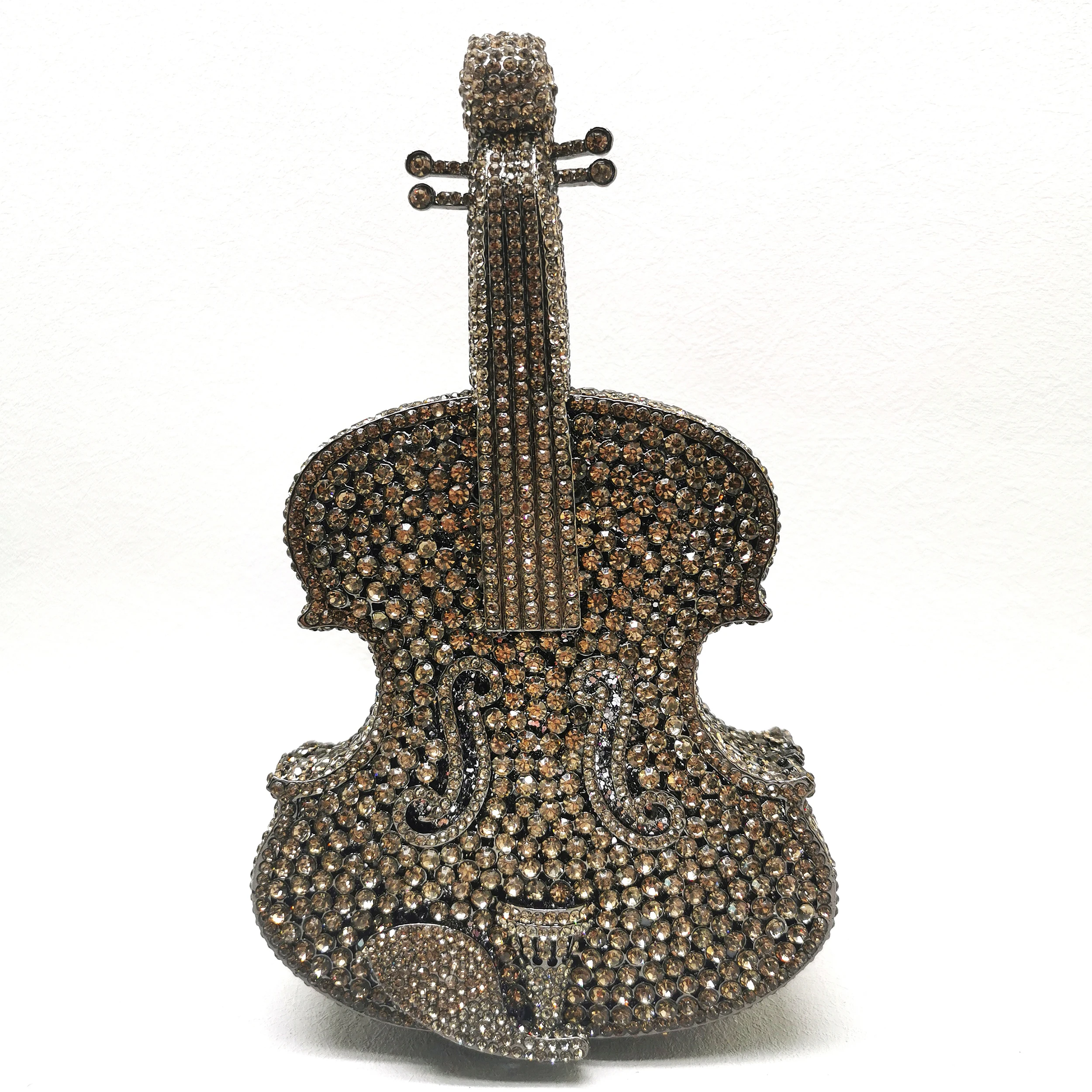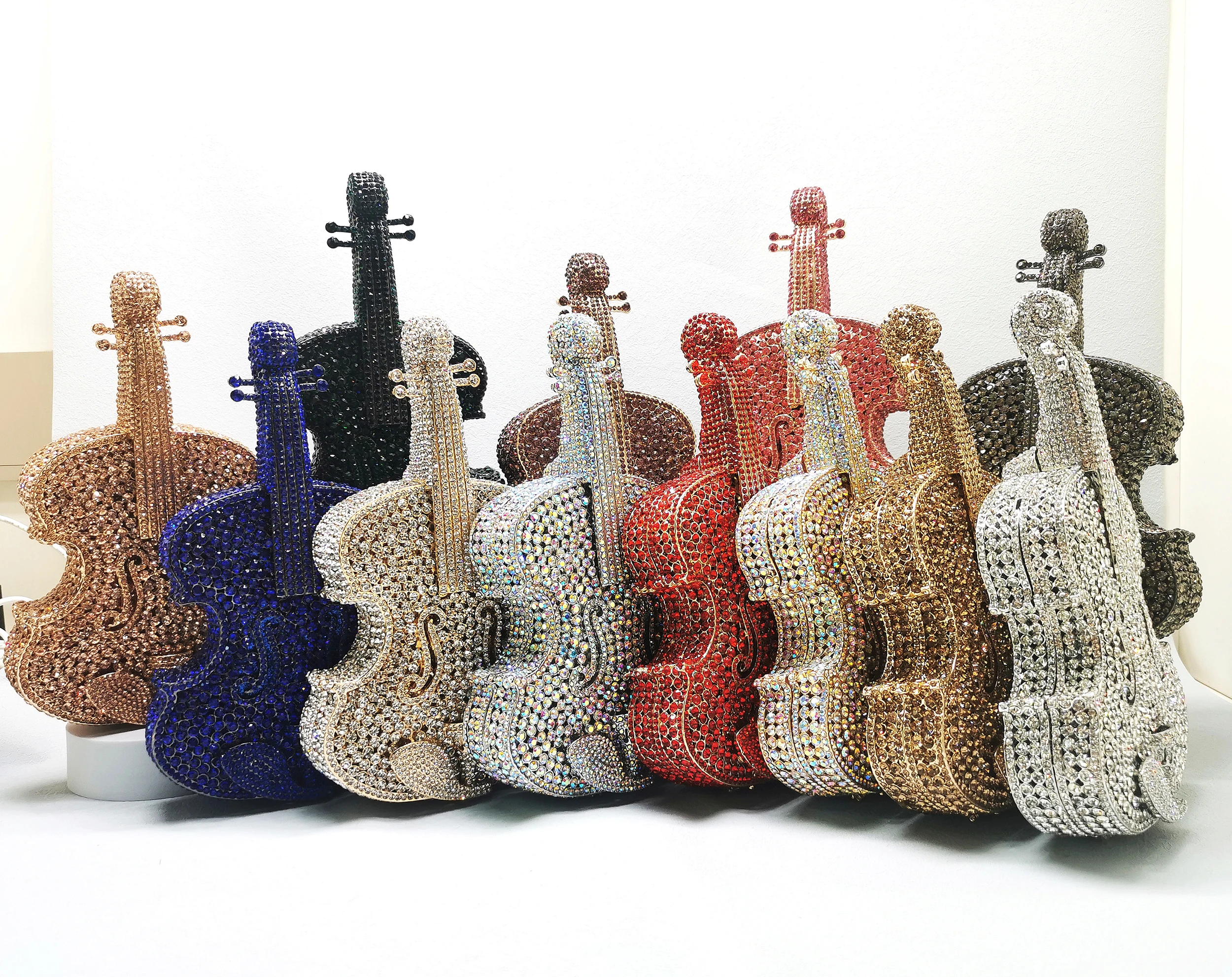Impress with our Elegant Violin Women Evening Bag. Made with high-quality rhinestones, this clutch features intricate violin designs adorned with elegant green and red stones. Perfect for formal events or weddings, this diamond handbag will add a touch of sophistication to any outfit
