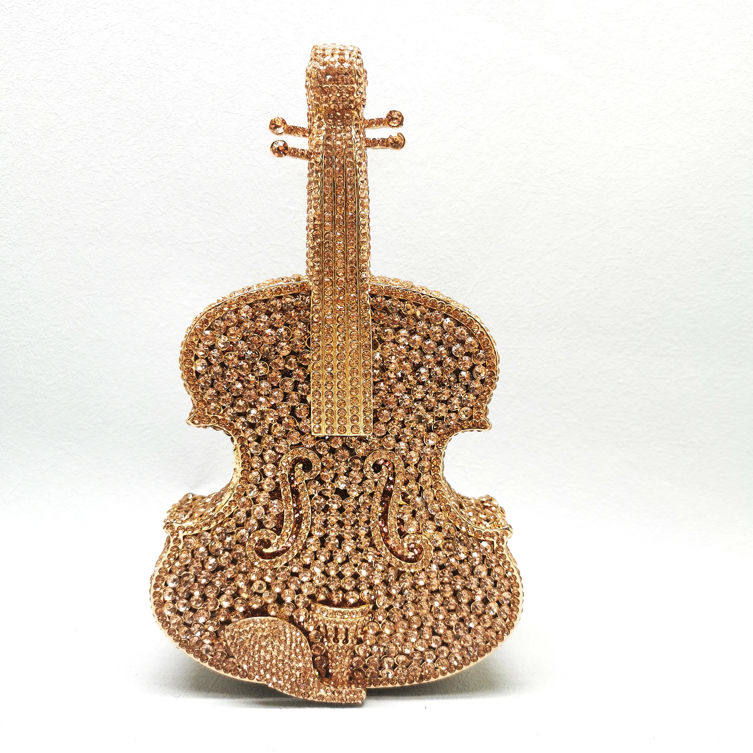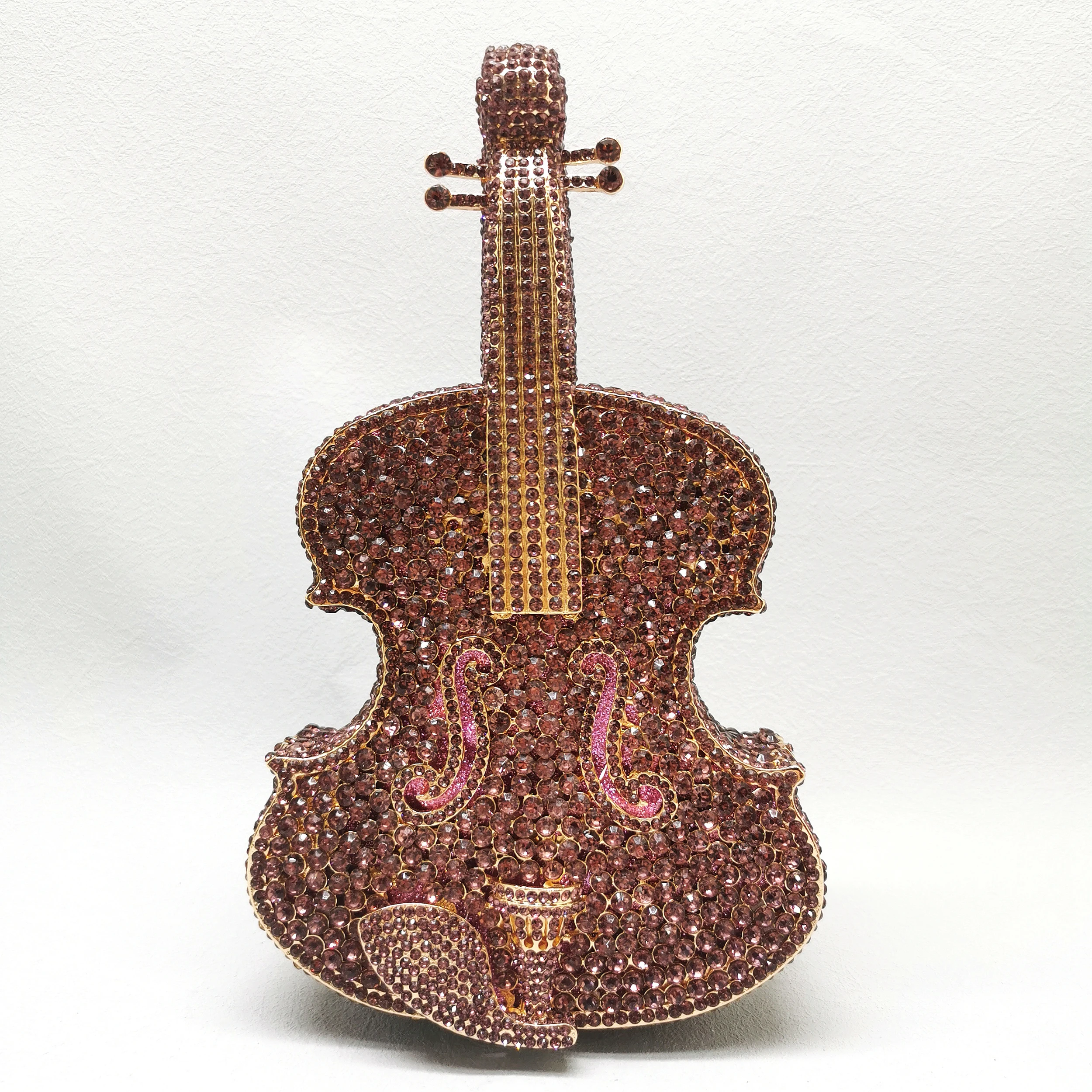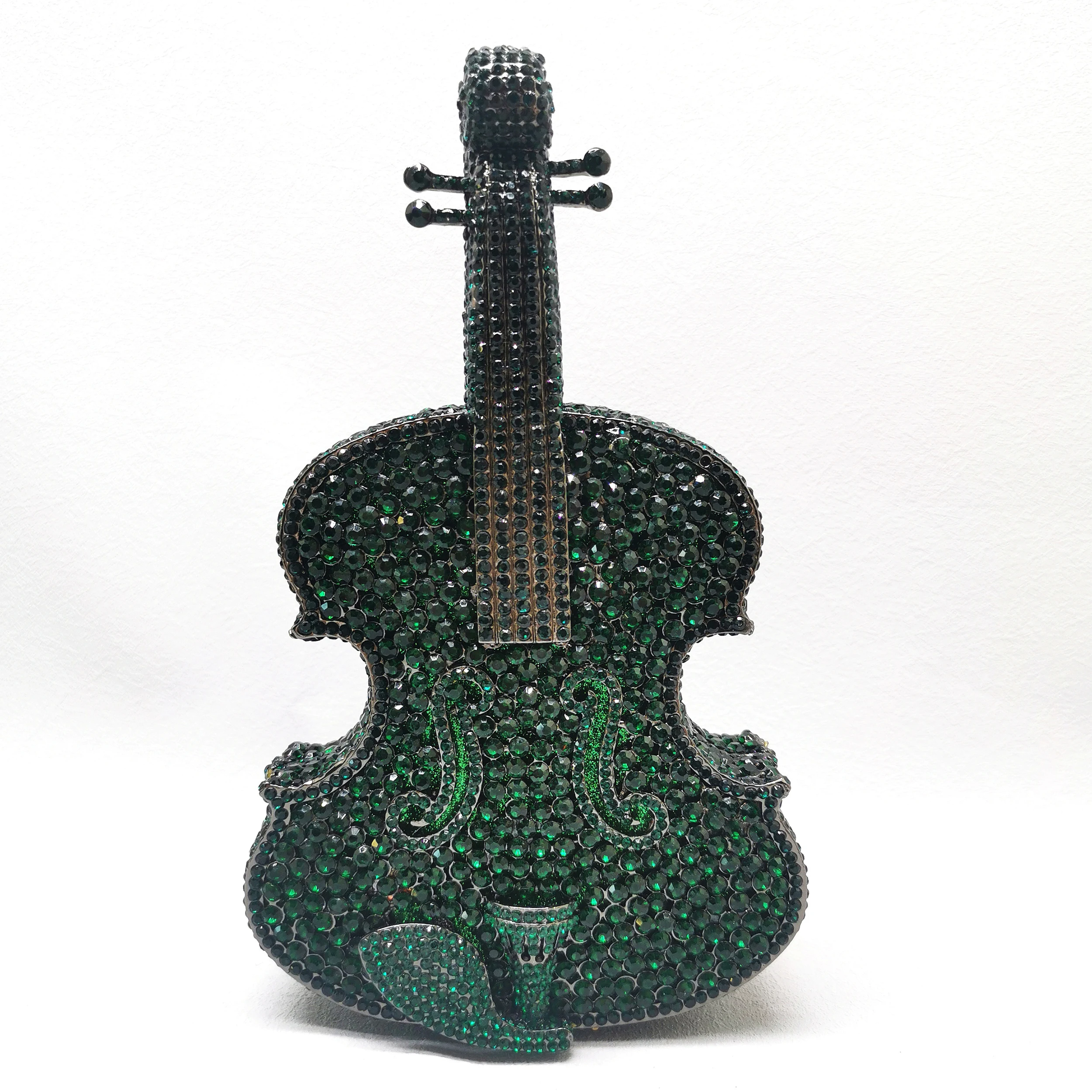 Elegant Violin Women Green/Red Stones Evening Bags Rhinestones Clutches Bags Formal Dinner Diamond Handbags Wedding Clutch Purse