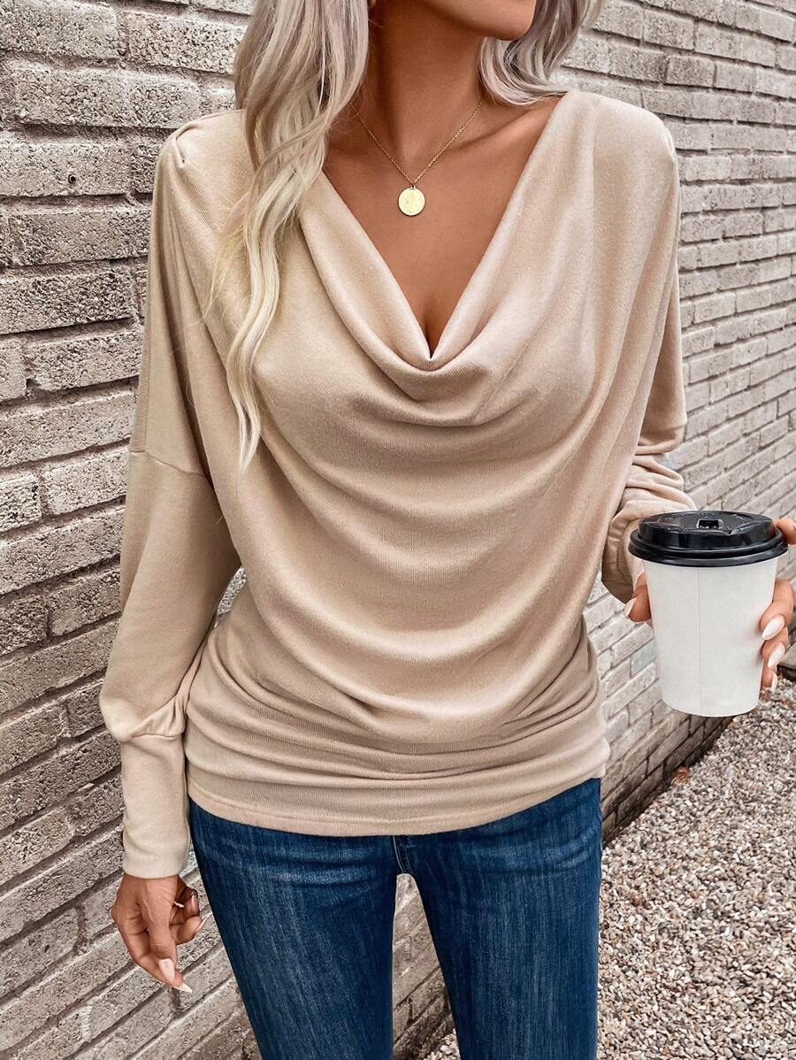 Women's Draped Collar Drop Shoulder Tee - Perfect Fall Fashion Essential
