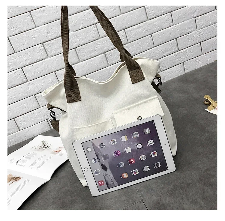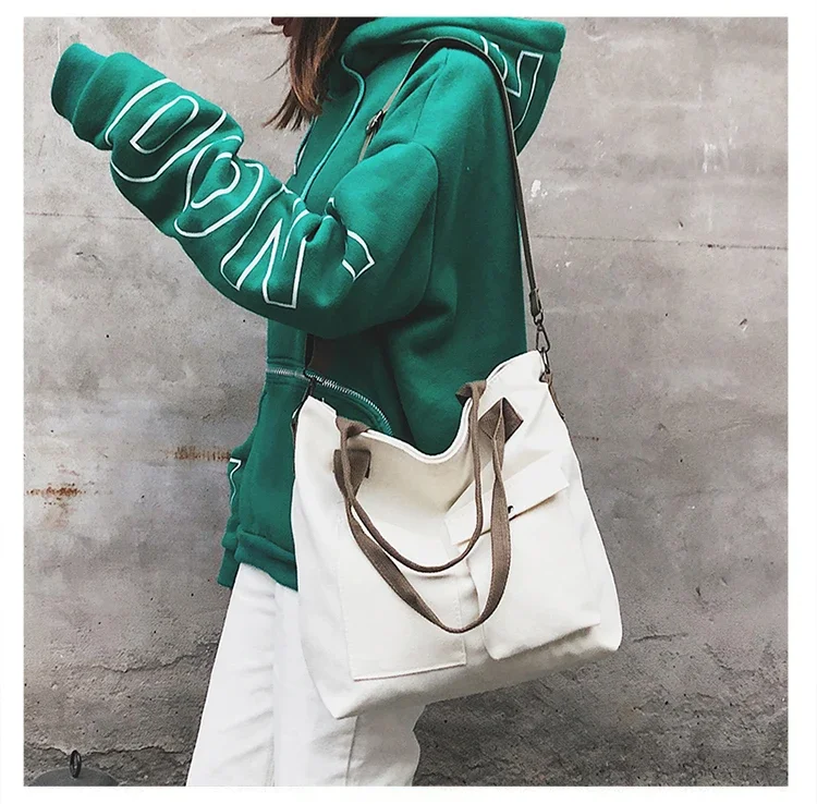 Fashion Canvas Bags Students Handbag Shoulder Bag Large Capacity Solid Color Totes Shopper Bag Casual Female CrossBody 2024