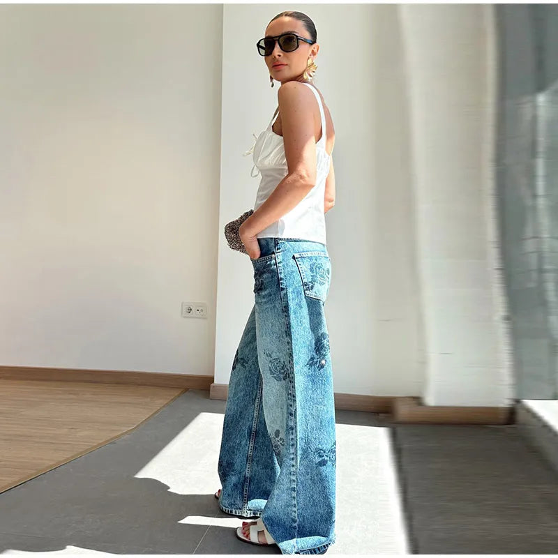 Designed with a wide - leg silhouette, these jeans flatter various body types. The wide - leg cut gracefully skims over your legs, creating a sleek and elongated appearance. The mid - rise waistband sits comfortably on your hips, enhancing your natural curves and giving you a balanced, confident look. No matter your body shape, these jeans will make you look and feel amazing.
