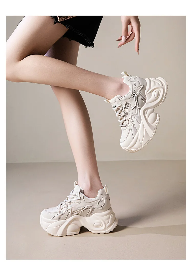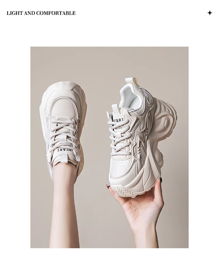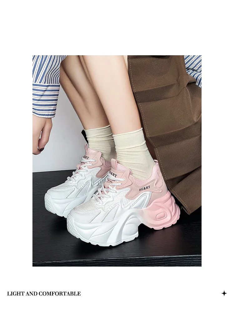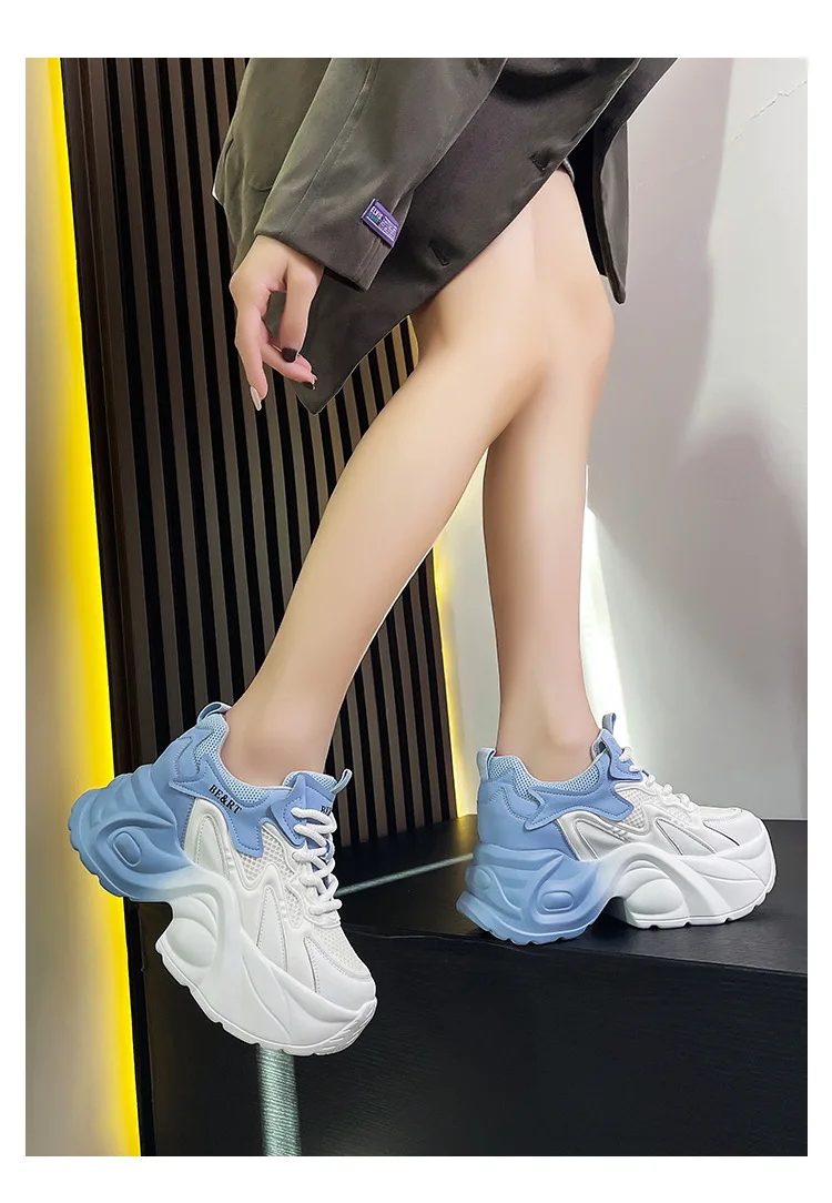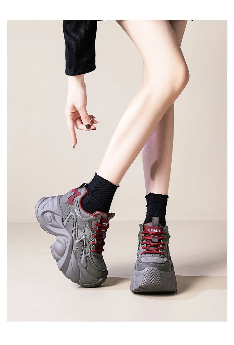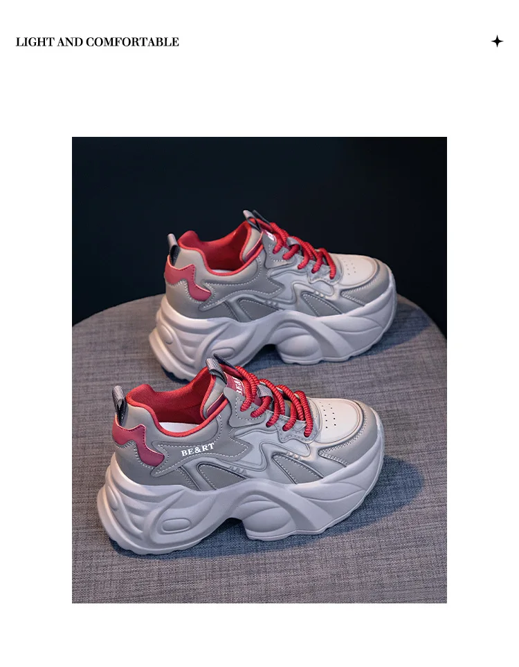Upgrade your shoe game with the Fujin 8cm Air Mesh Genuine Leather Vulcanize Vulcanize High Brand Sneakers. The chunky platform provides both style and comfort, while the genuine leather material guarantees durability. Perfect for all seasons, these sneakers will elevate any outfit.