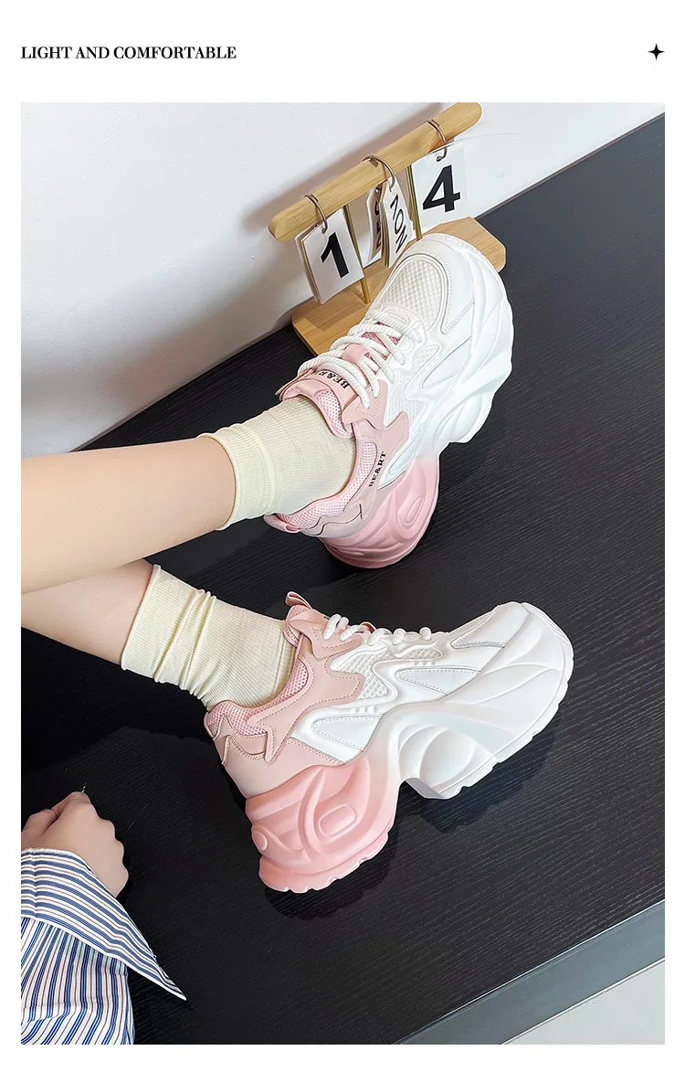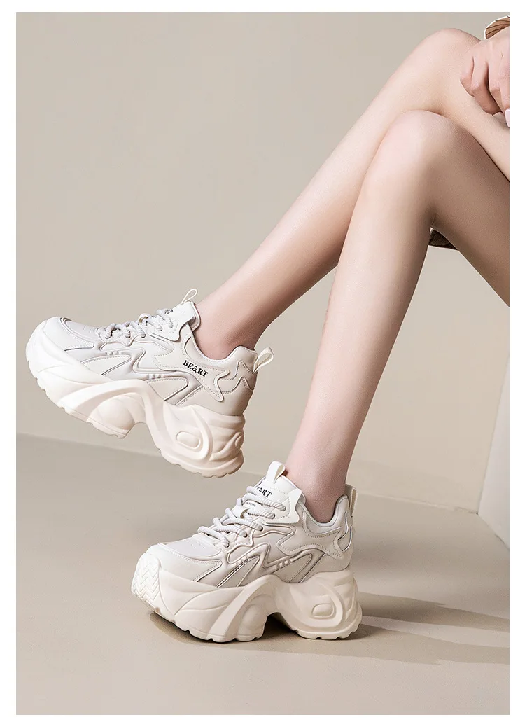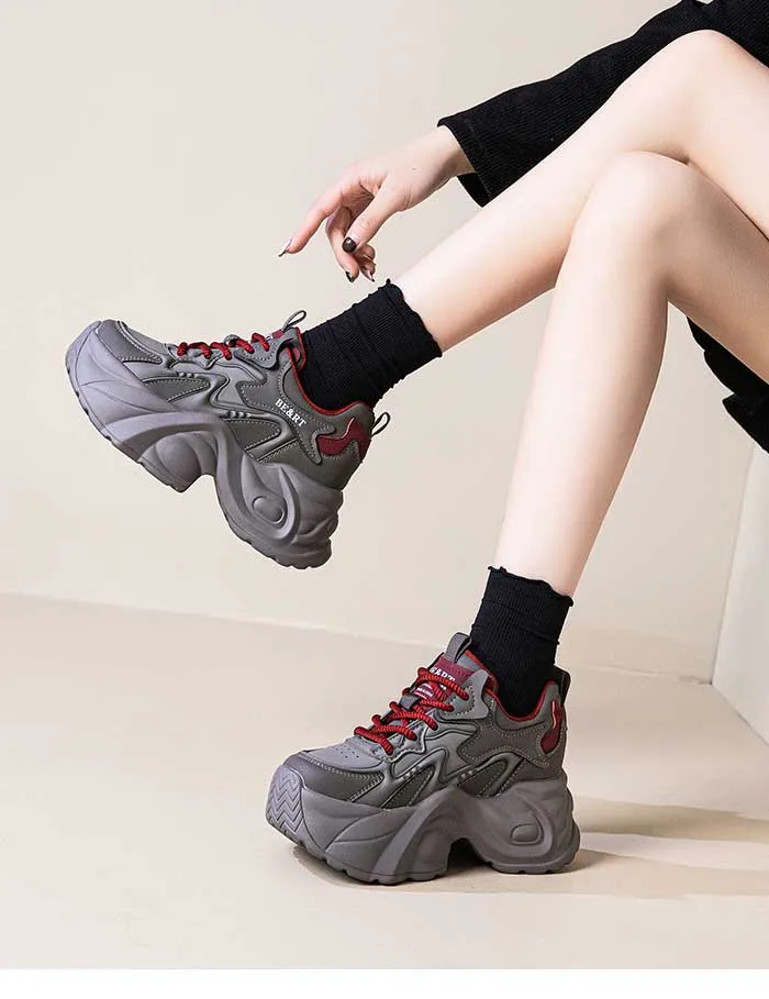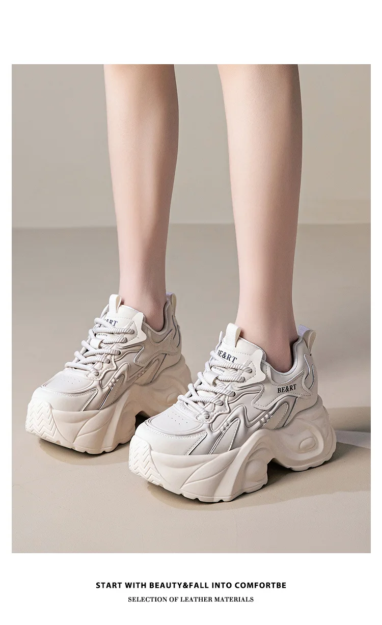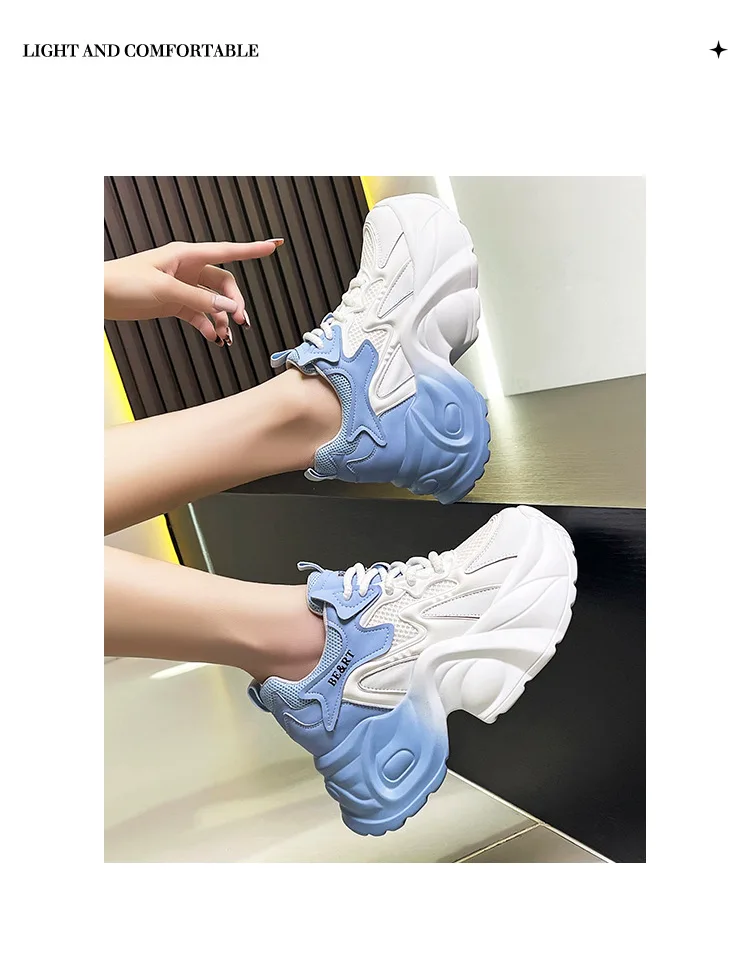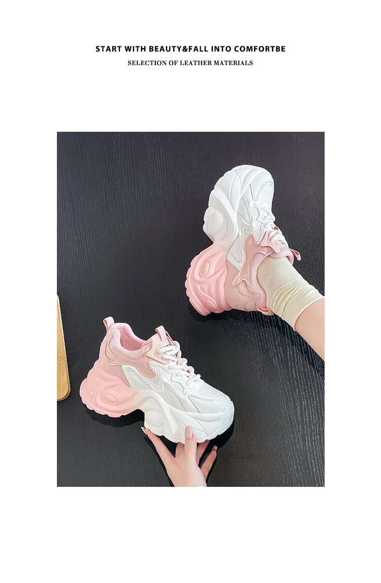 Upgrade your shoe game with the Fujin 8cm Air Mesh Genuine Leather Vulcanize Vulcanize High Brand Sneakers. The chunky platform provides both style and comfort, while the genuine leather material guarantees durability. Perfect for all seasons, these sneakers will elevate any outfit.