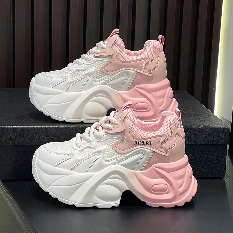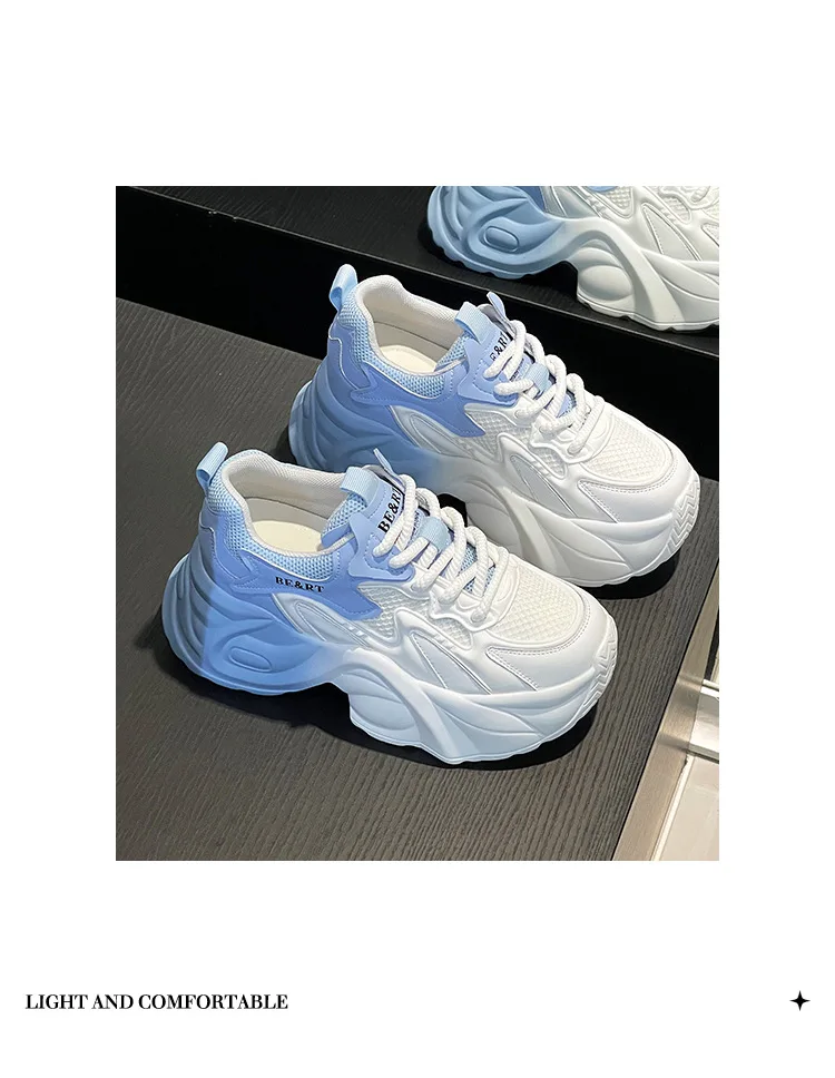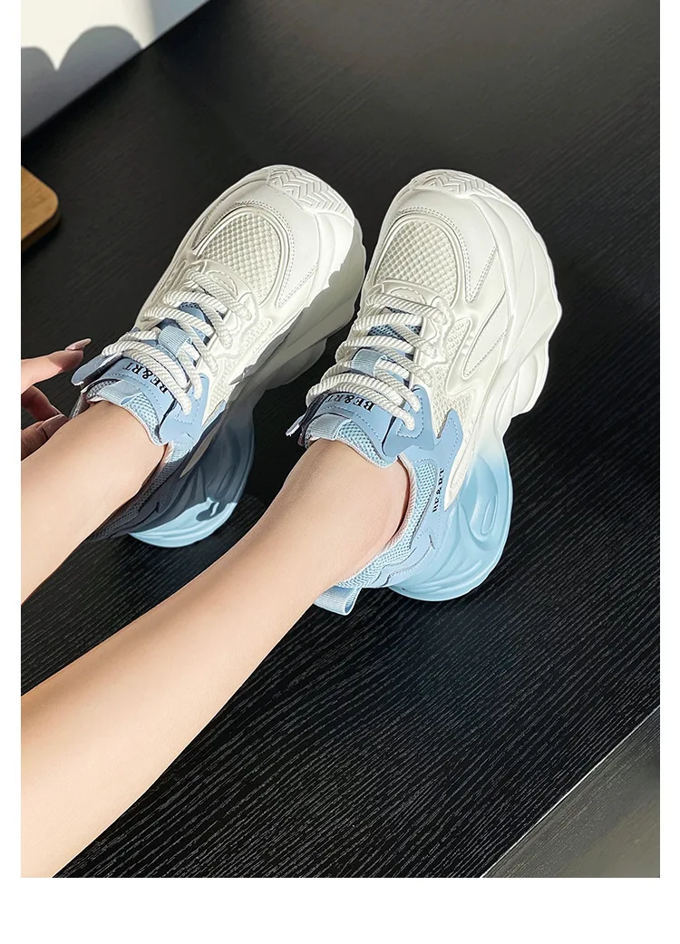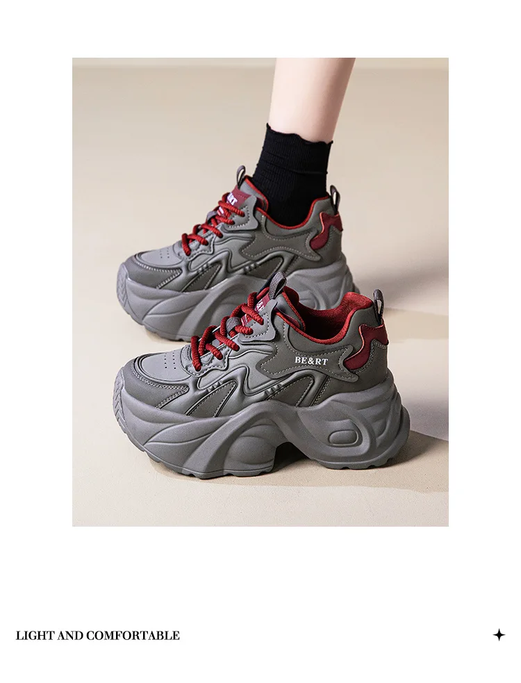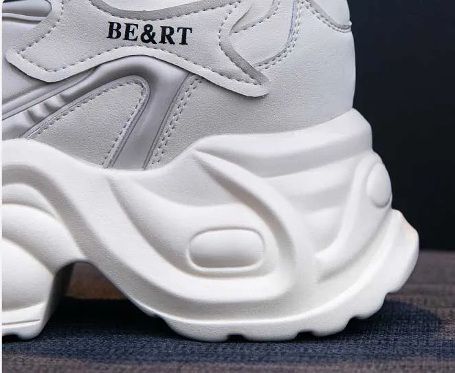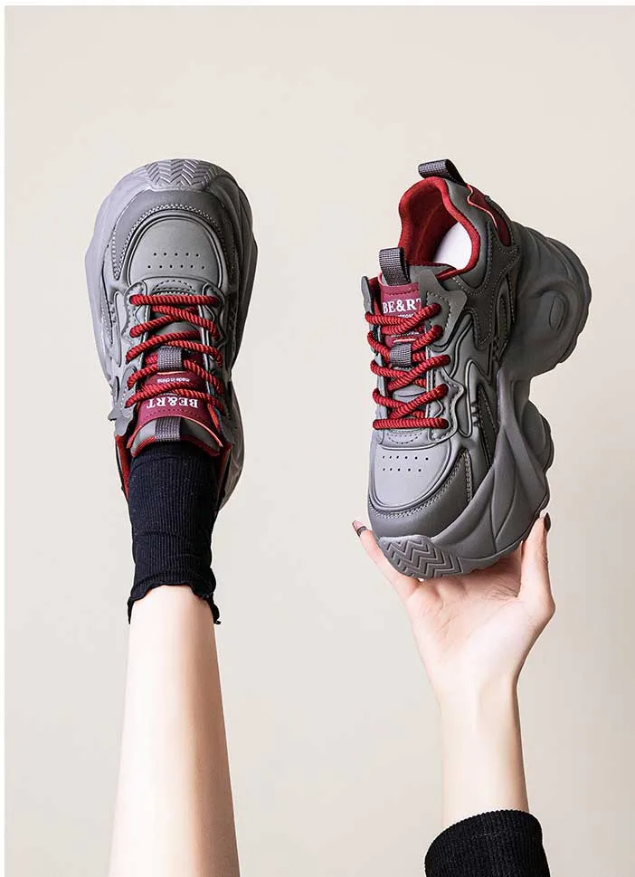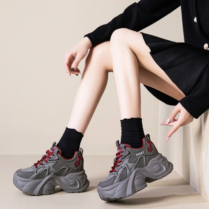Upgrade your shoe game with the Fujin 8cm Air Mesh Genuine Leather Vulcanize Vulcanize High Brand Sneakers. The chunky platform provides both style and comfort, while the genuine leather material guarantees durability. Perfect for all seasons, these sneakers will elevate any outfit.