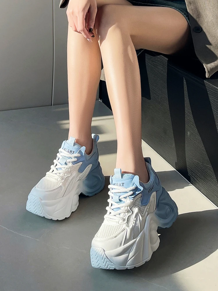Air Mesh Genuine Leather Vulcanize High Brand Comfy Chunky Sneaker Loafer Platform Women Shoes