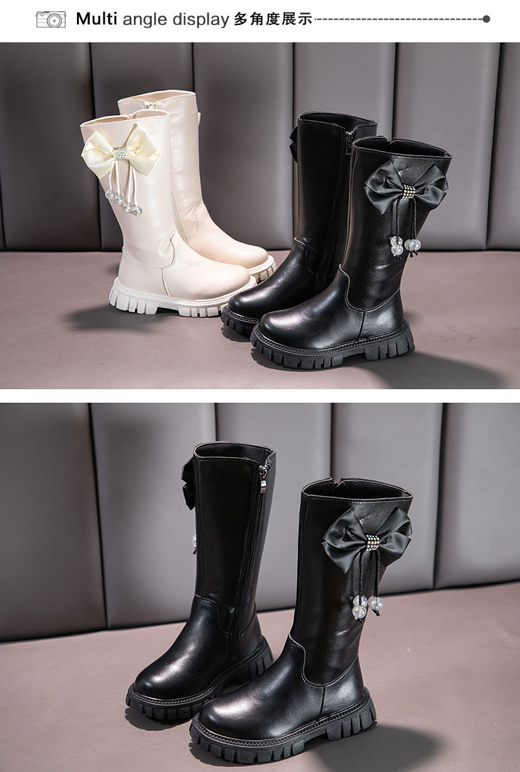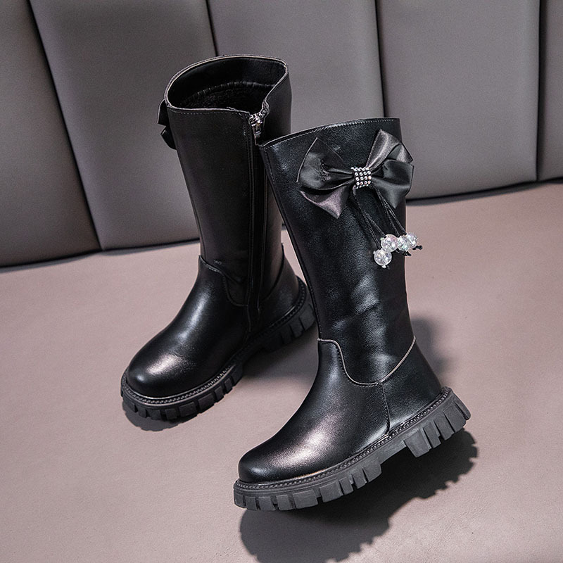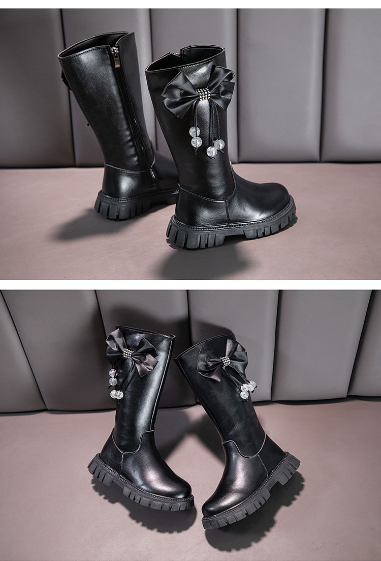 Girls Boots Zip Kids Knee High Non-Slip Plush Long Snow Boots for Girls High Leather Boots Winter Fashion Boot Princess Shoes