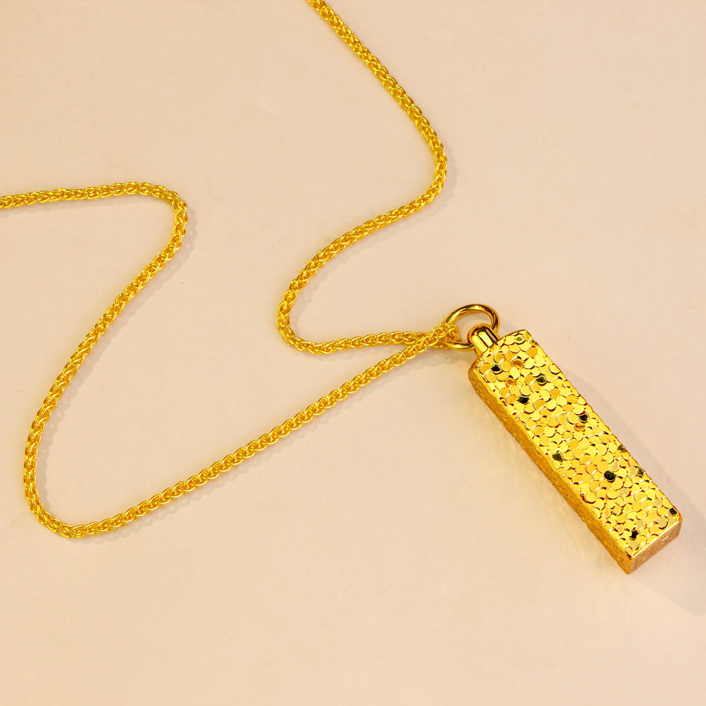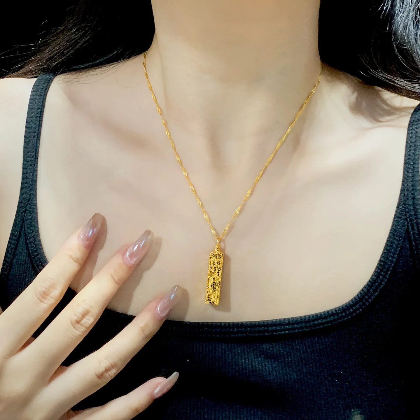 Gold store 9999 24K real gold sparkling crushed ice small gold bar pendant versatile clavicle chain for women
