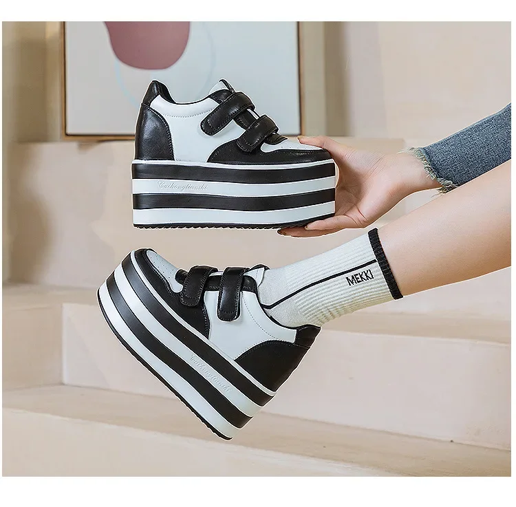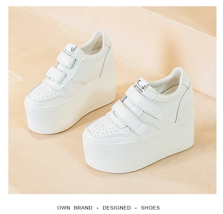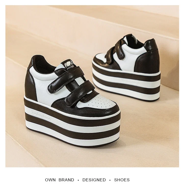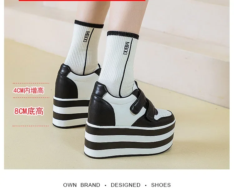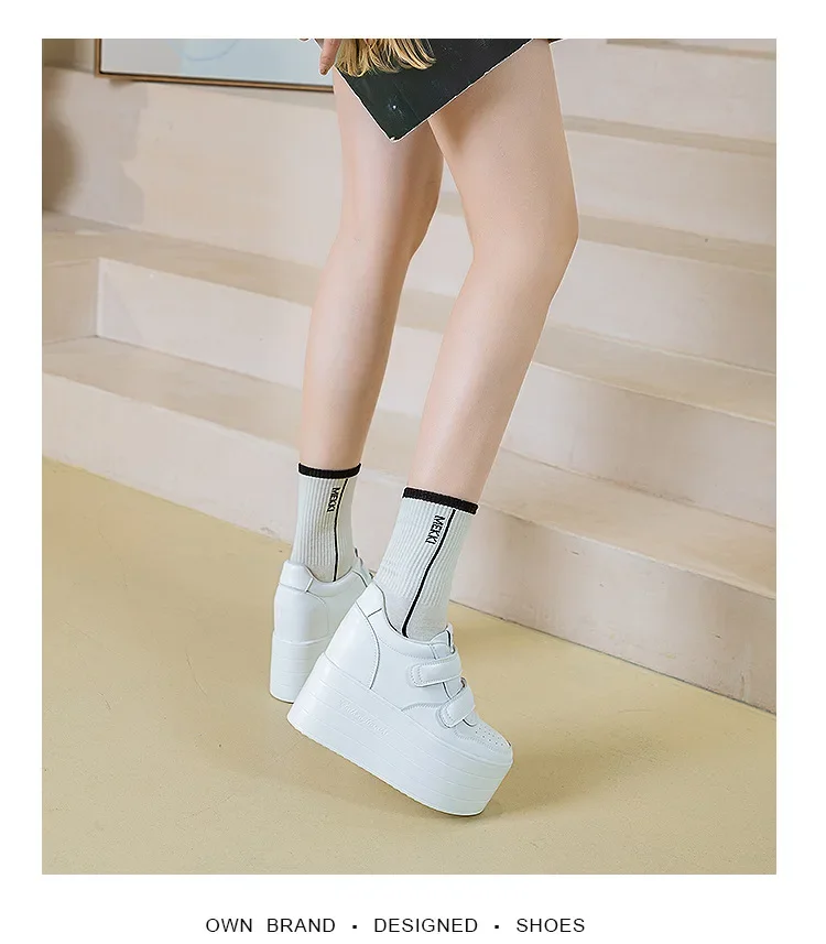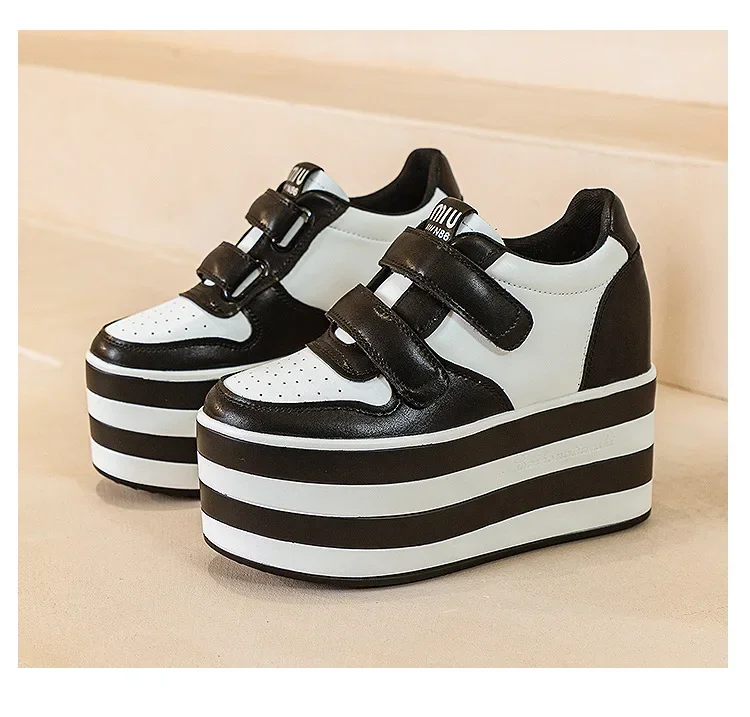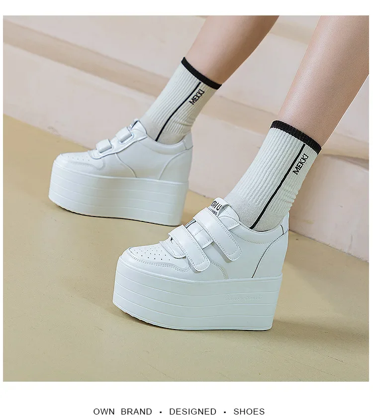 High quality 12cm Synthetic Genuine Leather Boot Ankle Platform Wedge High Brand Chunky Sneaker Shoes