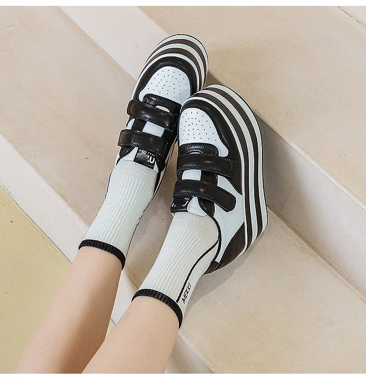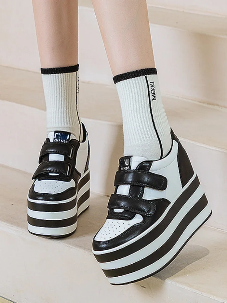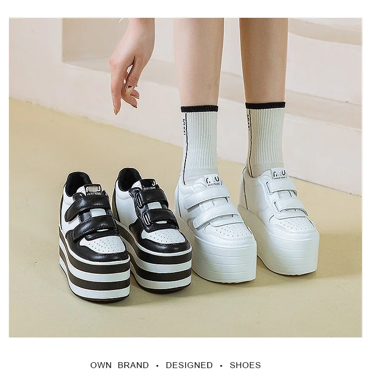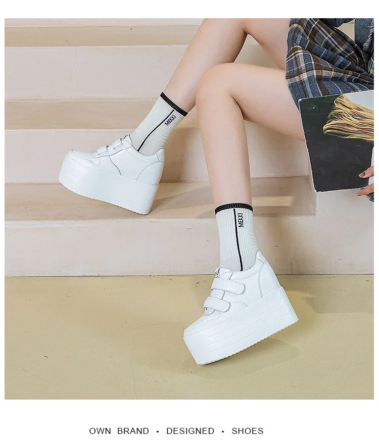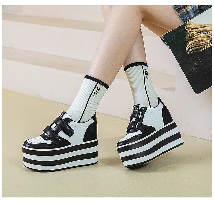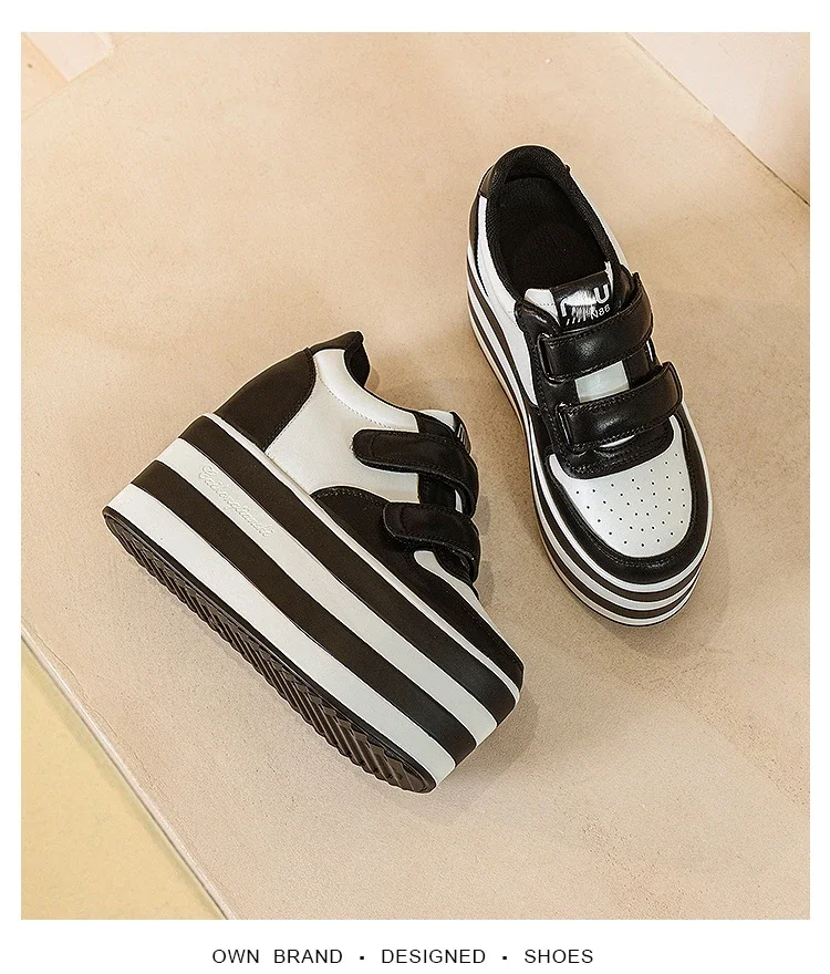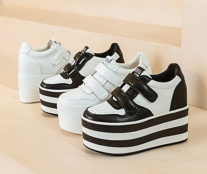 High quality 12cm Synthetic Genuine Leather Boot Ankle Platform Wedge High Brand Chunky Sneaker Shoes