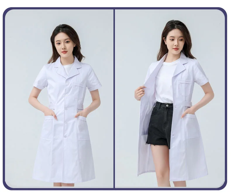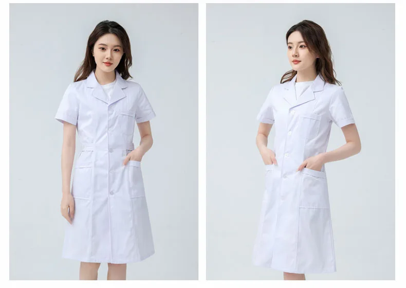Hospital Clinical Uniforms Scrubs Lab Coat Pharmacy Short Sleeve Nurse Doctor Dress Medical Robe Women White Coat