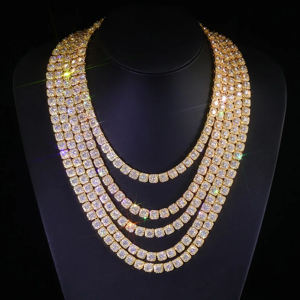 ICEOMG Hip Hop Jewelry 7mm Cluster Tennis Chain Necklace Shiny Diamond Thin Necklace Iced Out Chain for Man Women