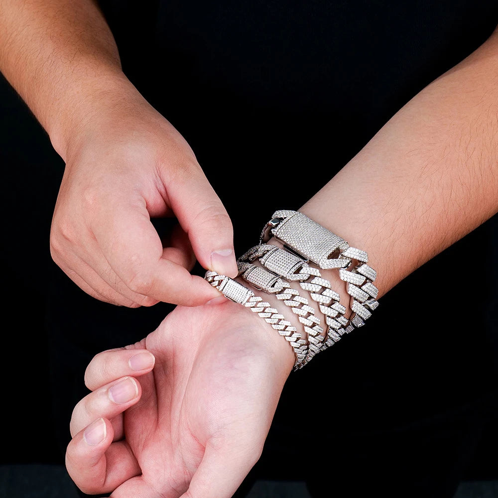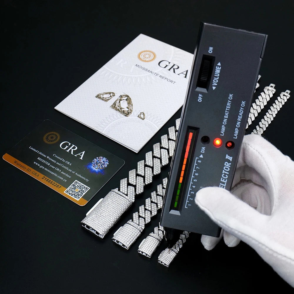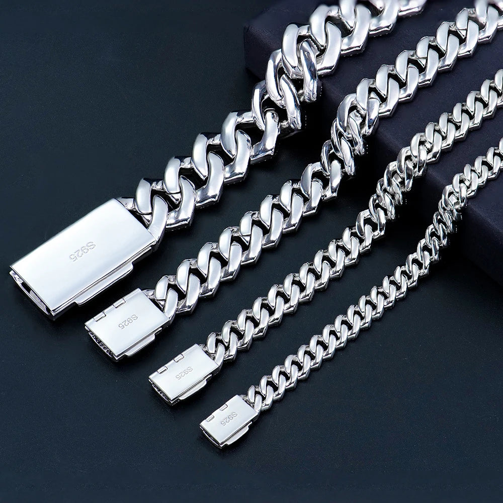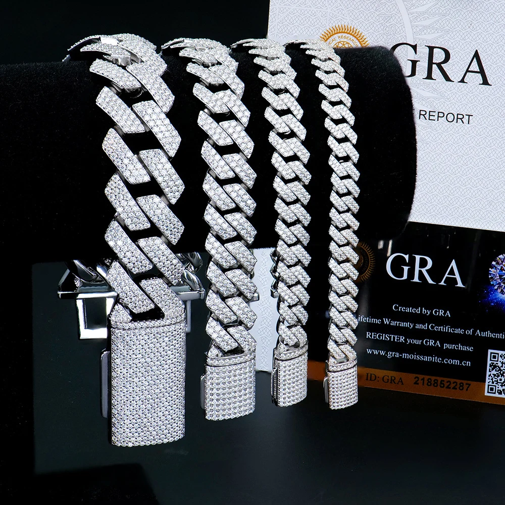 KNOBSPIN GRA Certified D VVS1 Moissanite Cuban Bracelet 8mm/10mm/12mm/14mm s925 Sterling Sliver Cuban Bracelets for Women Man