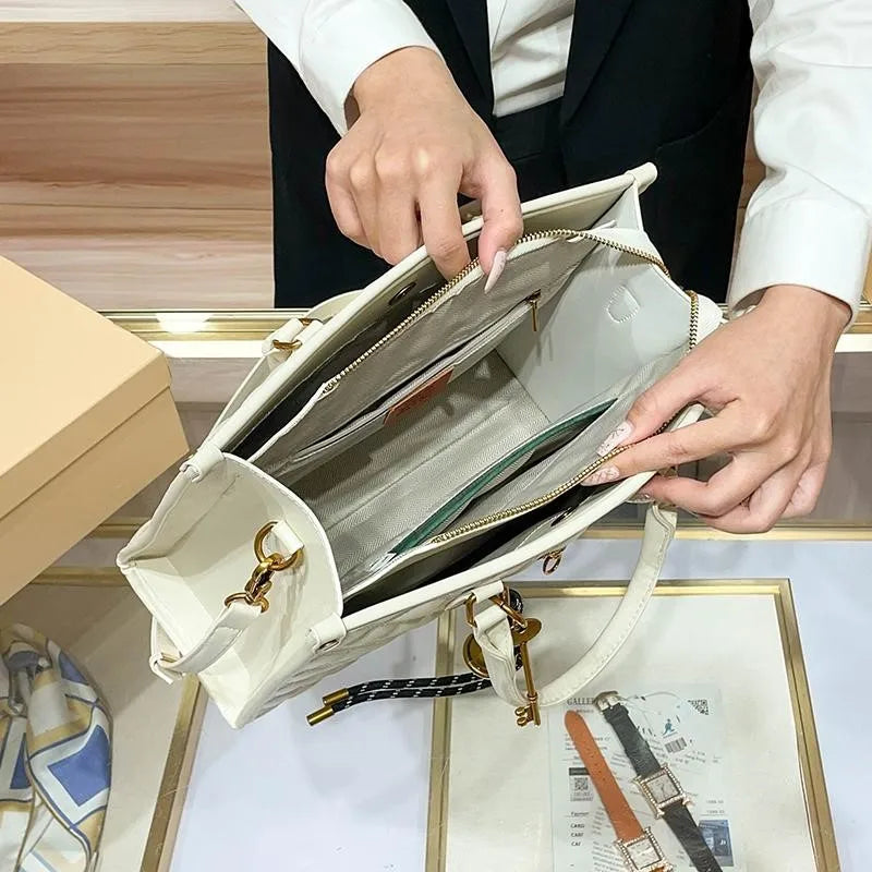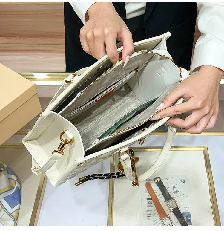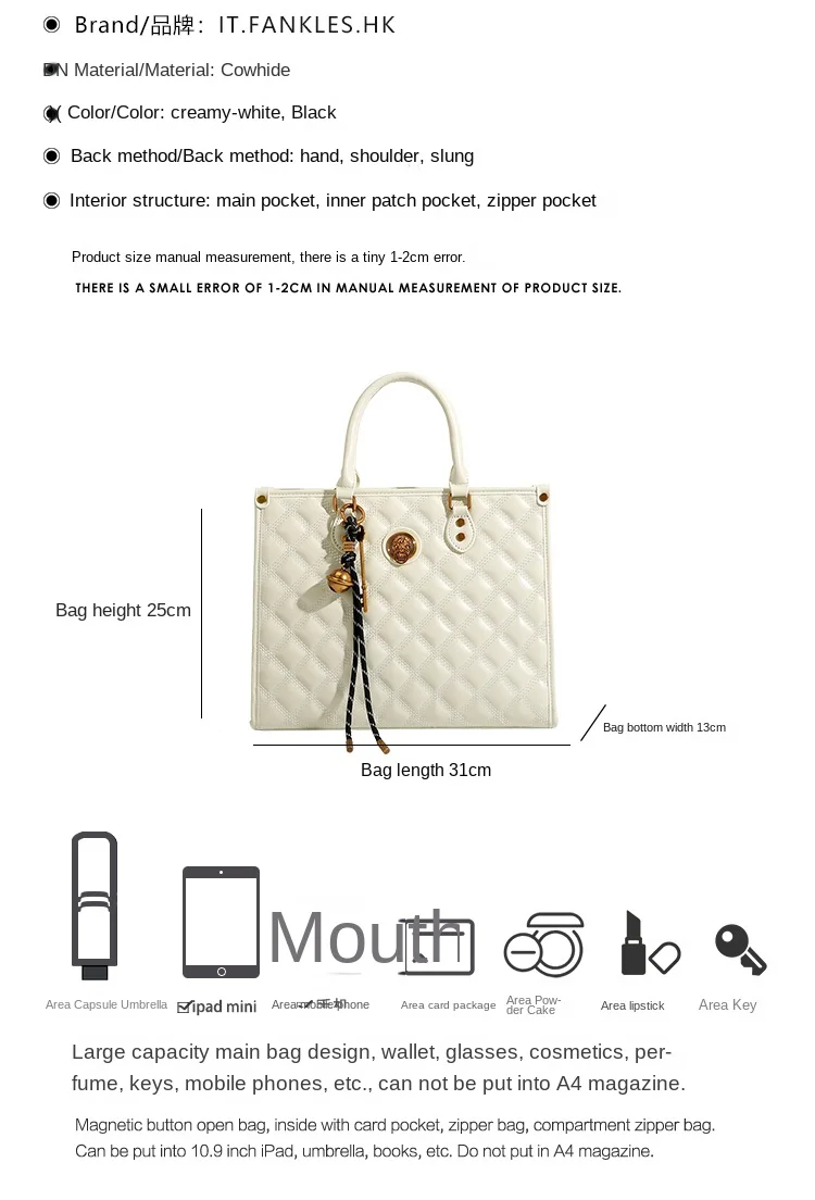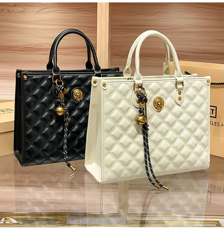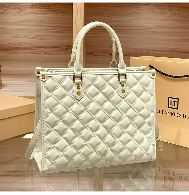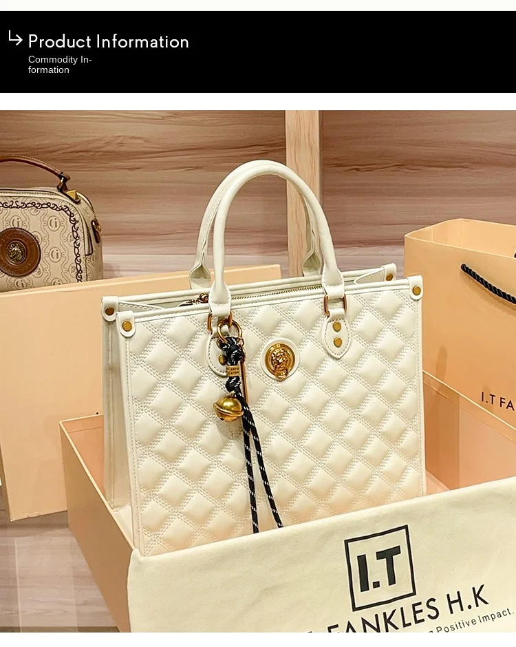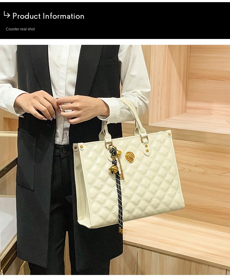 Light luxury brand hand-held large capacity tote bag diamond grid single shoulder diagonal cross bag