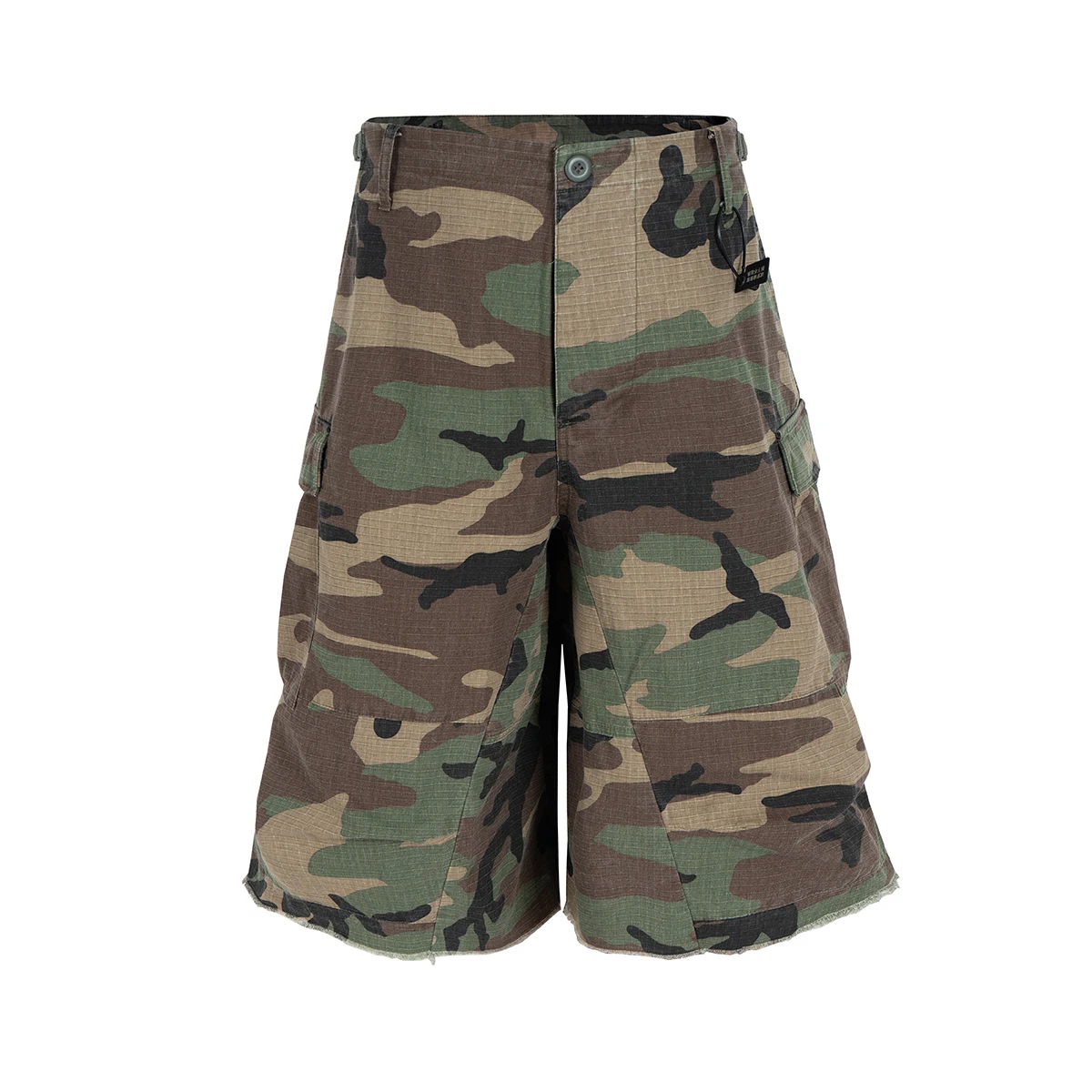 Silhouette Camouflage Cargo Cropped Shorts for Men Wide Leg Patchwork Baggy Over Knee Pants