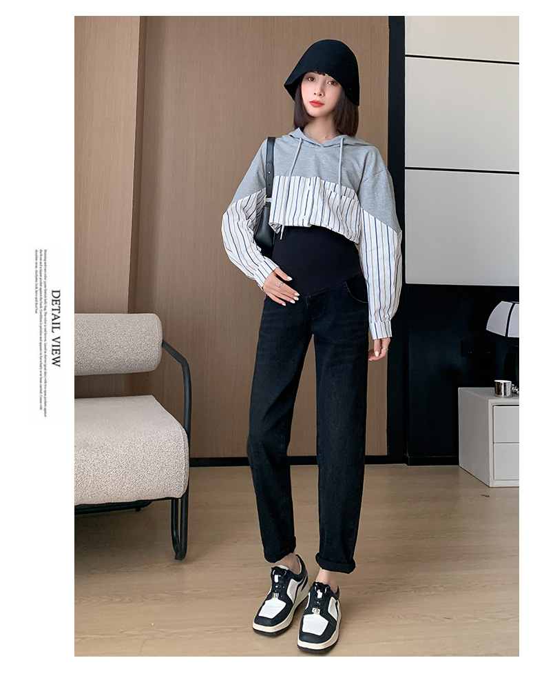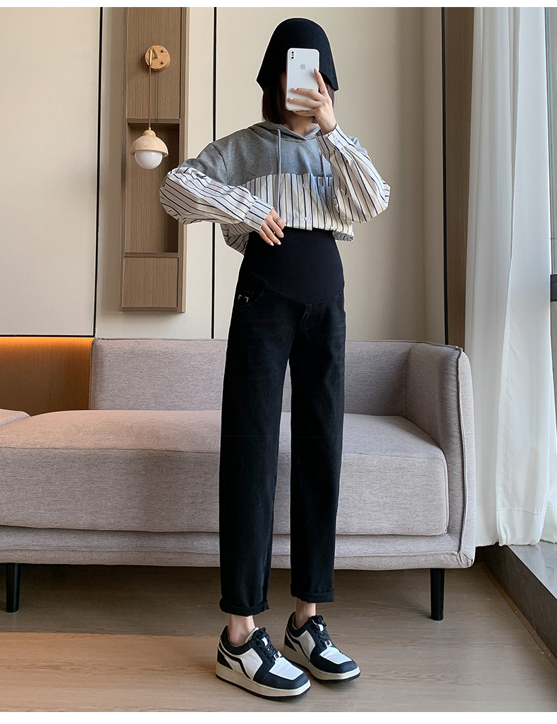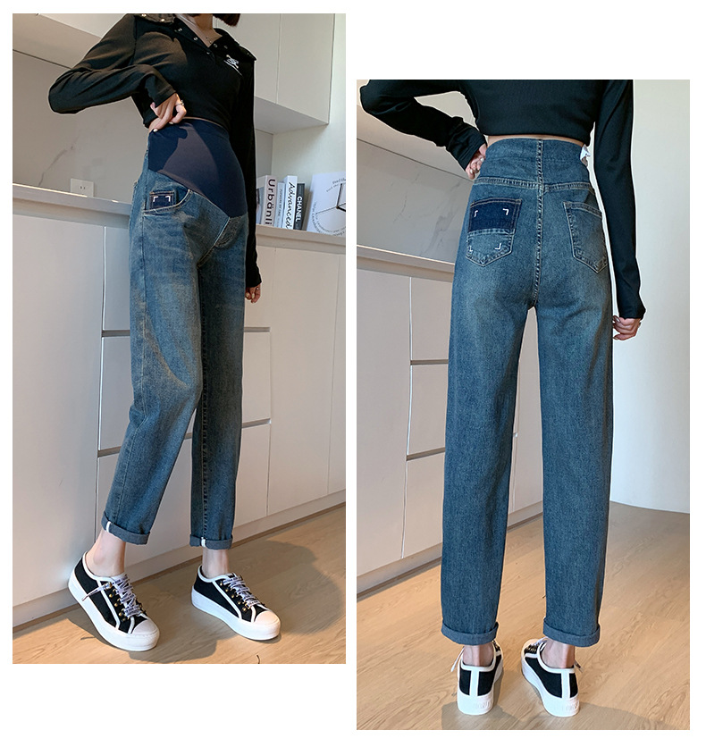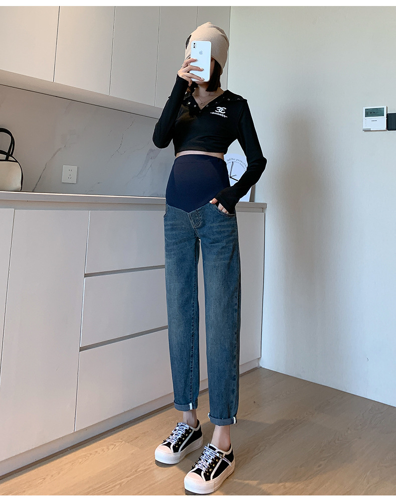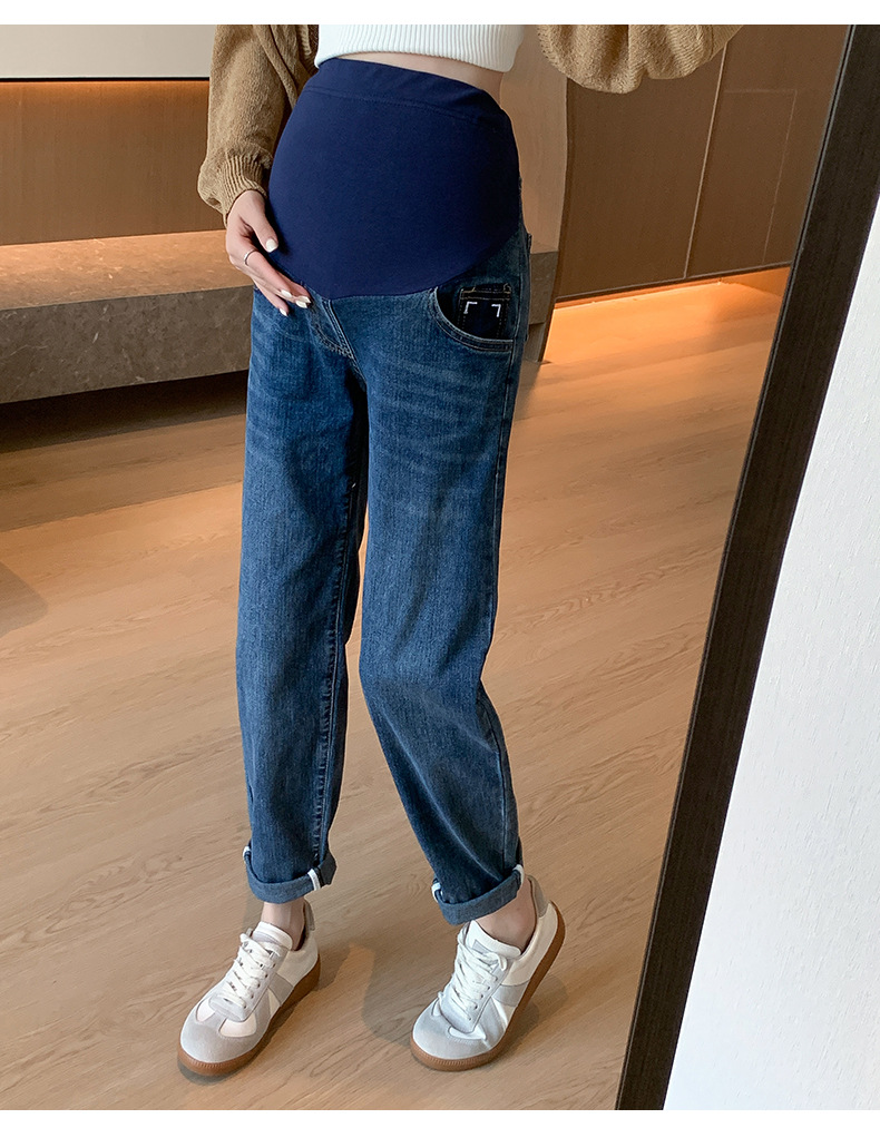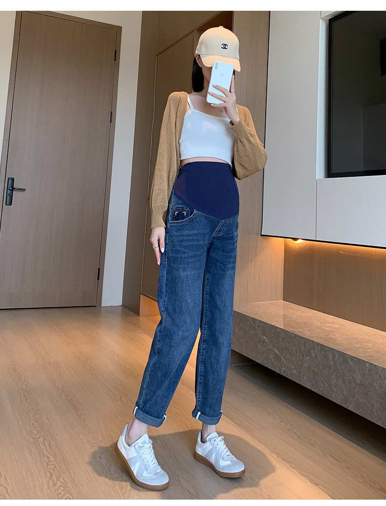 Maternity Jeans Spring and Autumn Fashion Denim Adjustable Belly Wide Leg Pants for Pregnant Women Loose Pregnancy Trousers