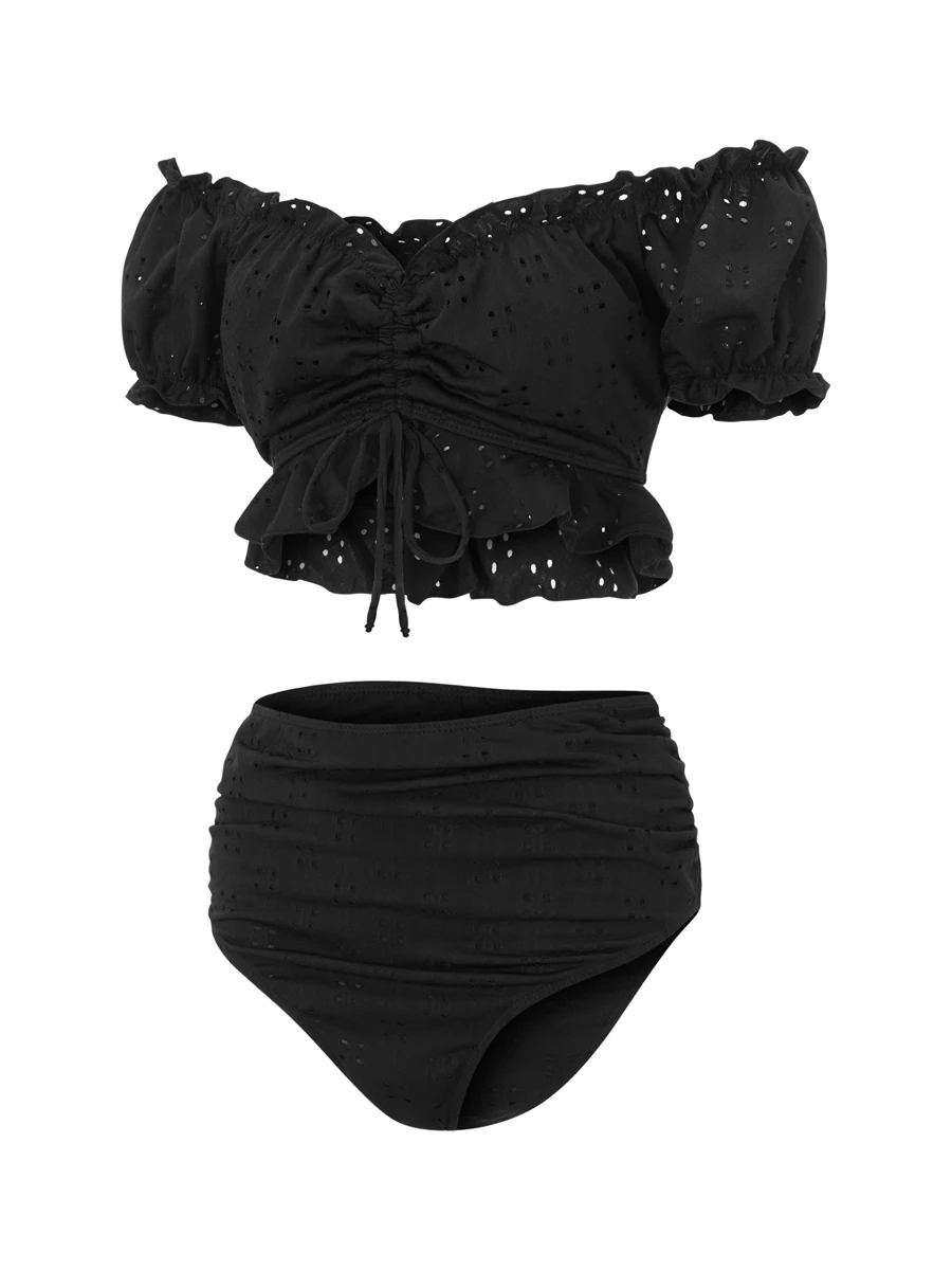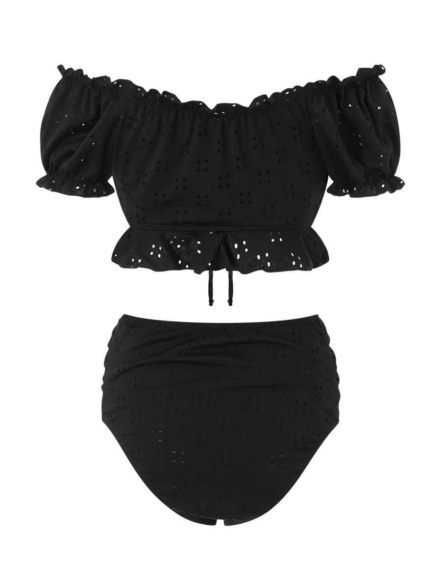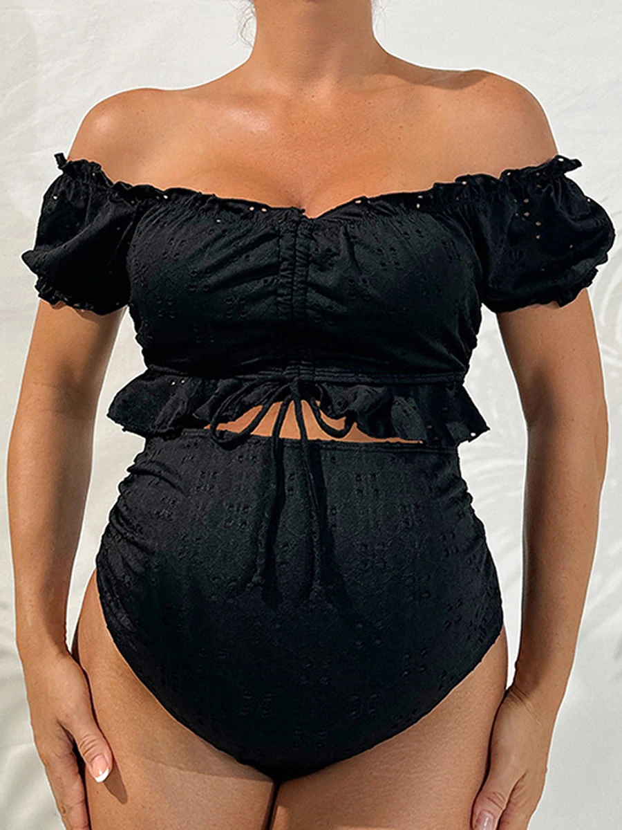 Maternity Tankini Swimsuit High Waisted 2 Pieces Bikini Set Solid Color Off Shoulder