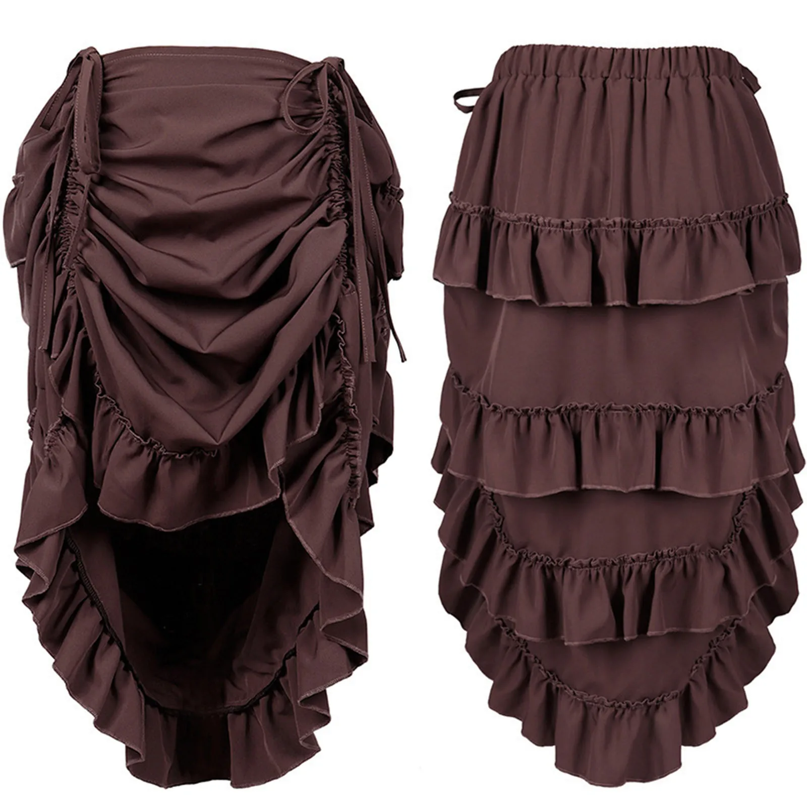 Women's Stage Performance Costume Halloween Costume Drawstring Punk Gothic Wrap Dress Ruffled Maxi Skirt