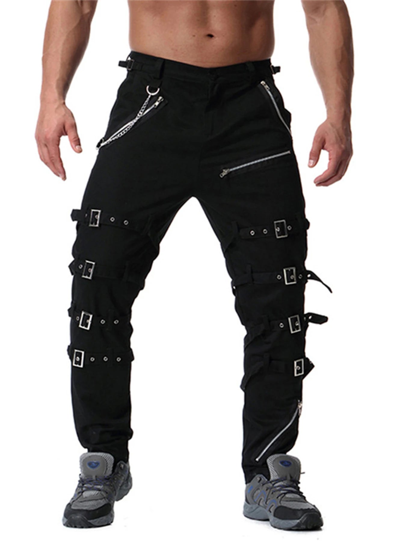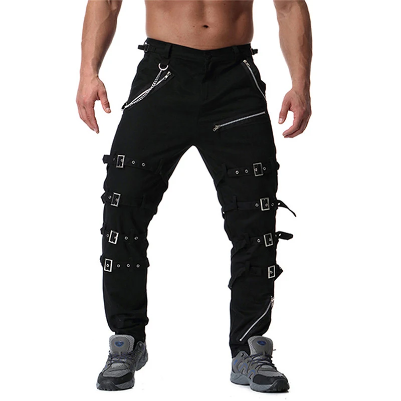 Men`s Steampunk Gothic Hip Hop Techwear Pants with Chain For Cosplay