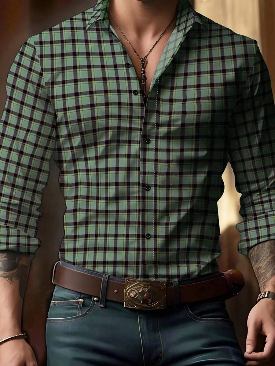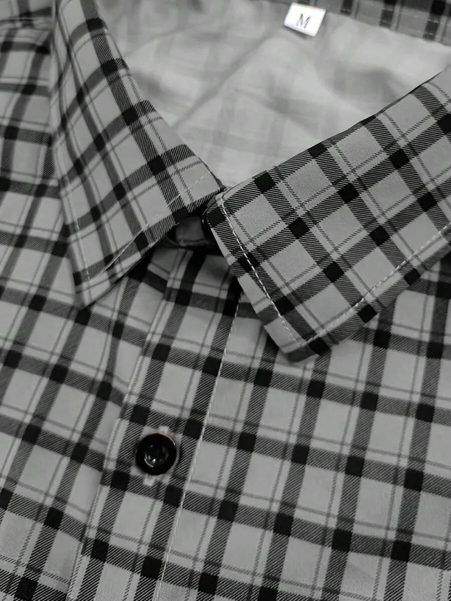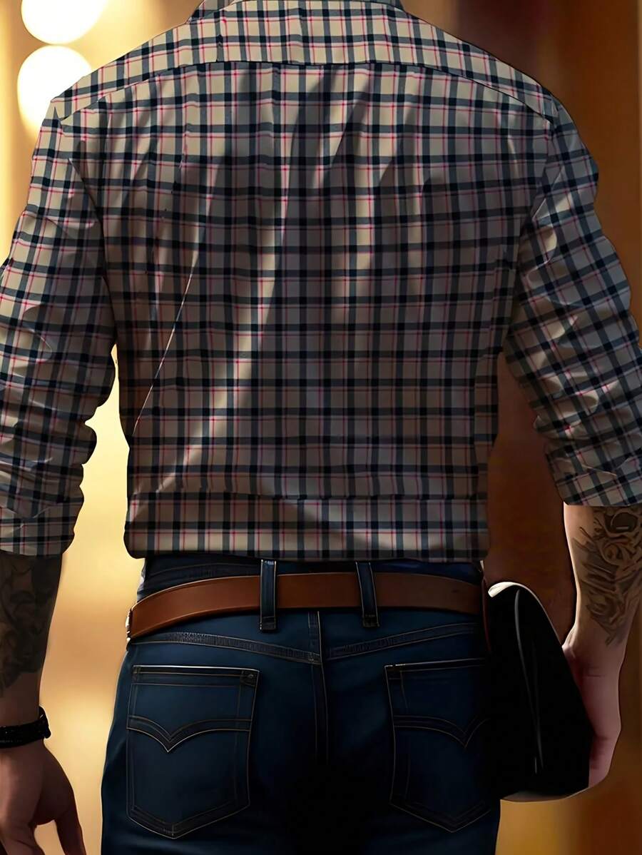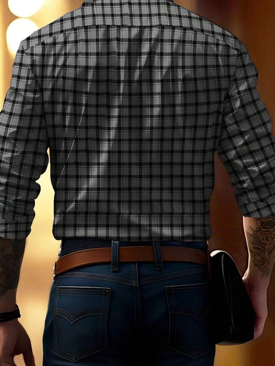 Men's Checkered Button-Up Dress Shirt - Stylish Long Sleeve Formal Work Essential