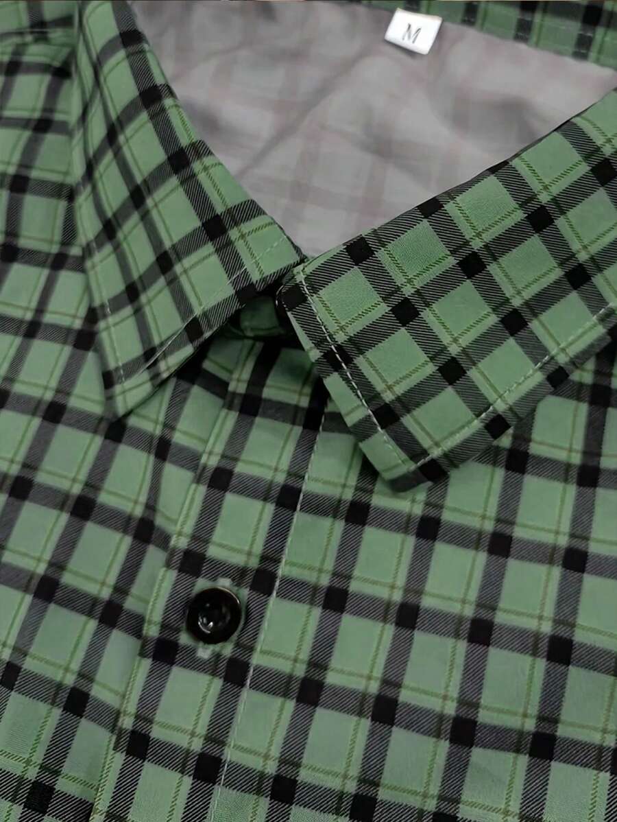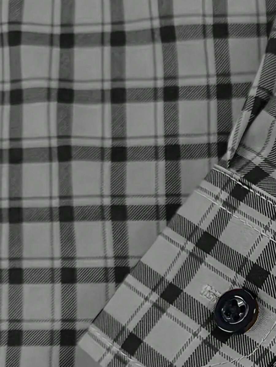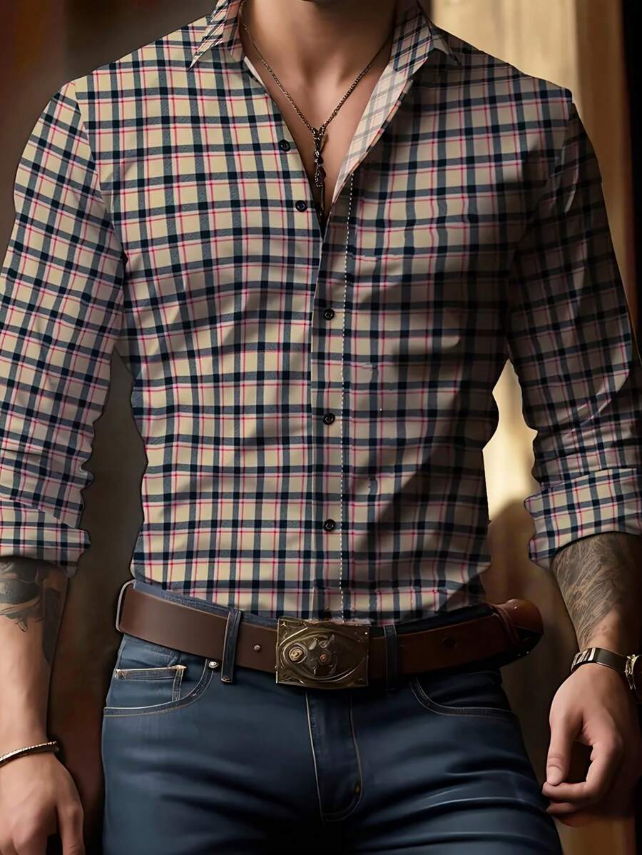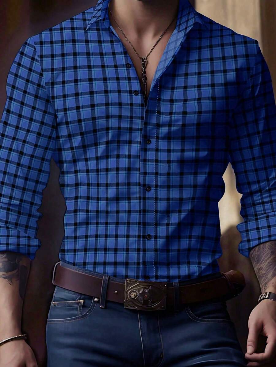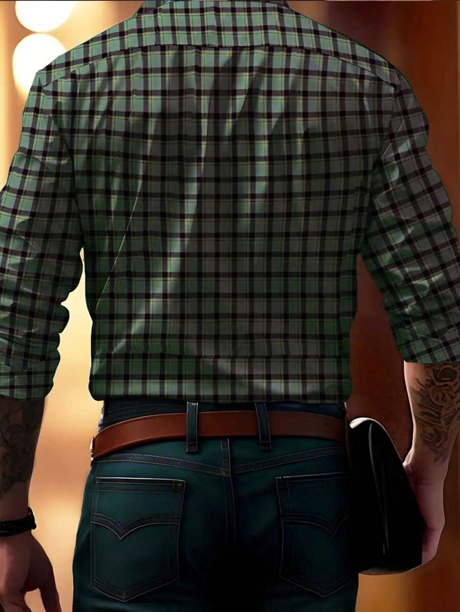Men's Checkered Button-Up Dress Shirt - Stylish Long Sleeve Formal Work Essential