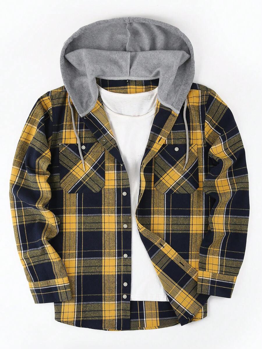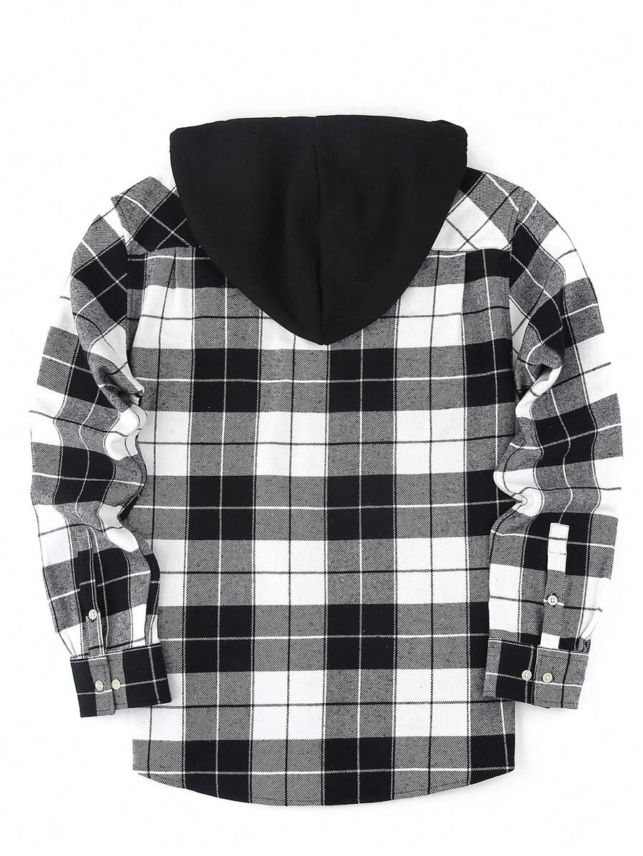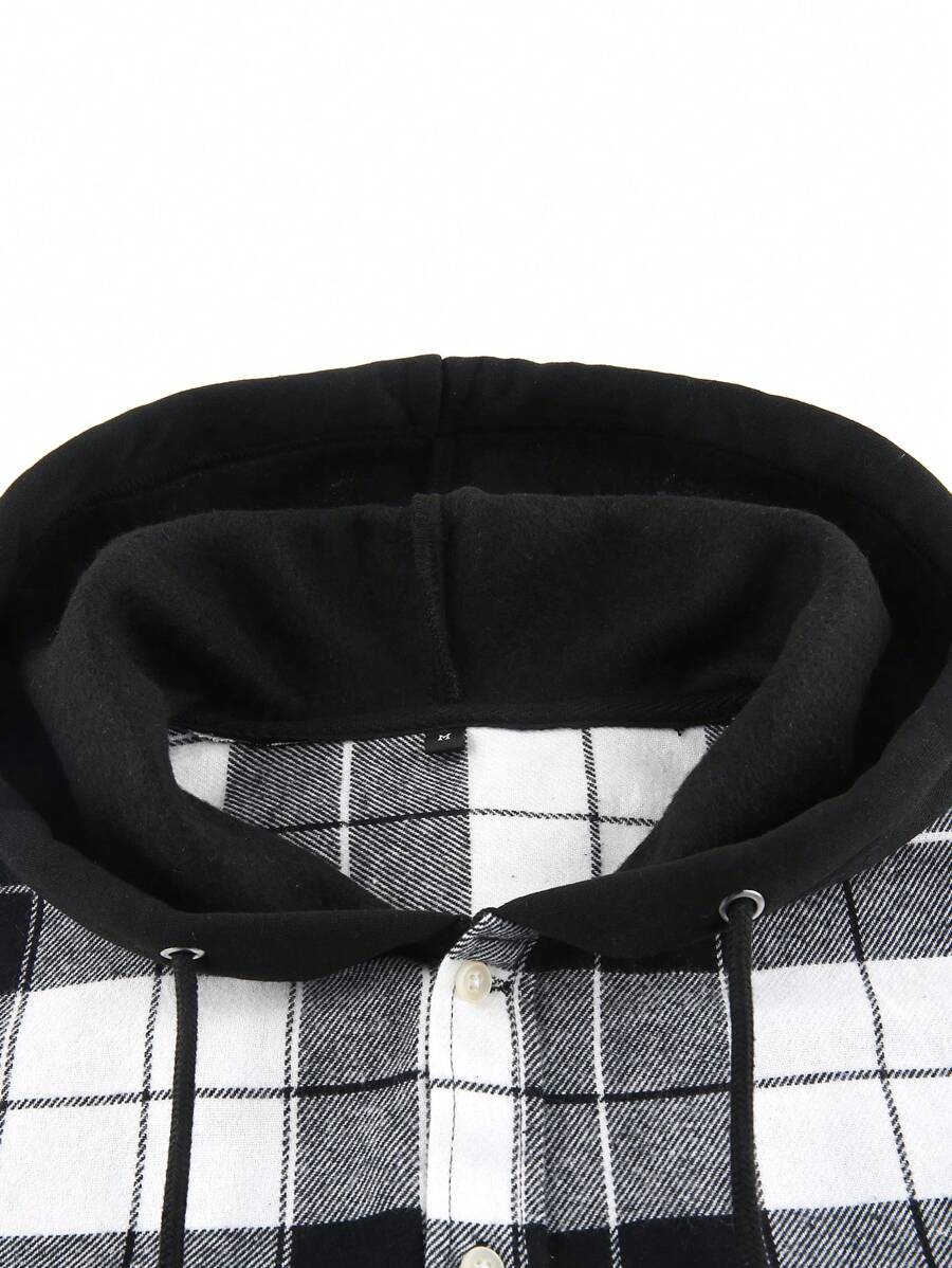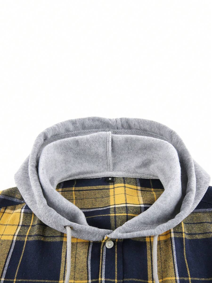 Men's Hooded Plaid Shacket with Button Details and Dual Pockets - Perfect for Fall Casual Outdoor Style