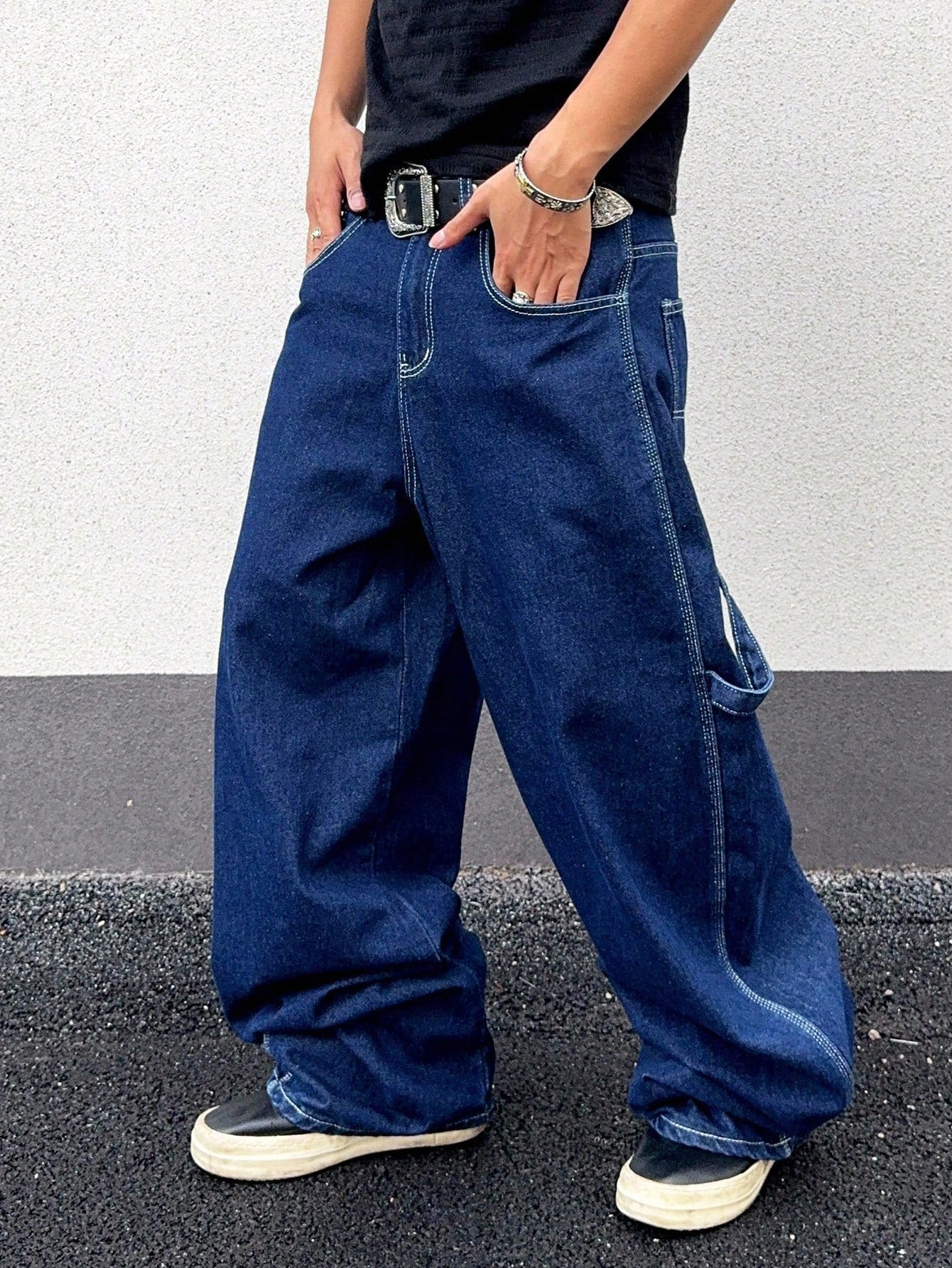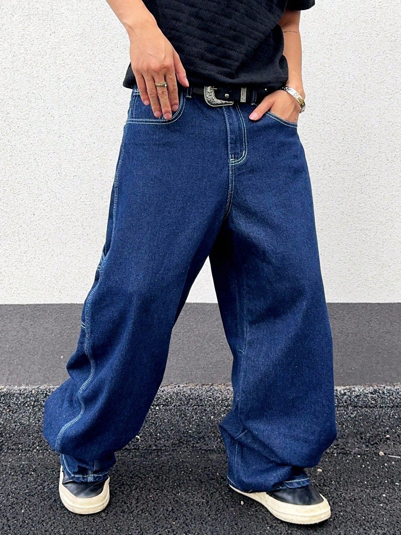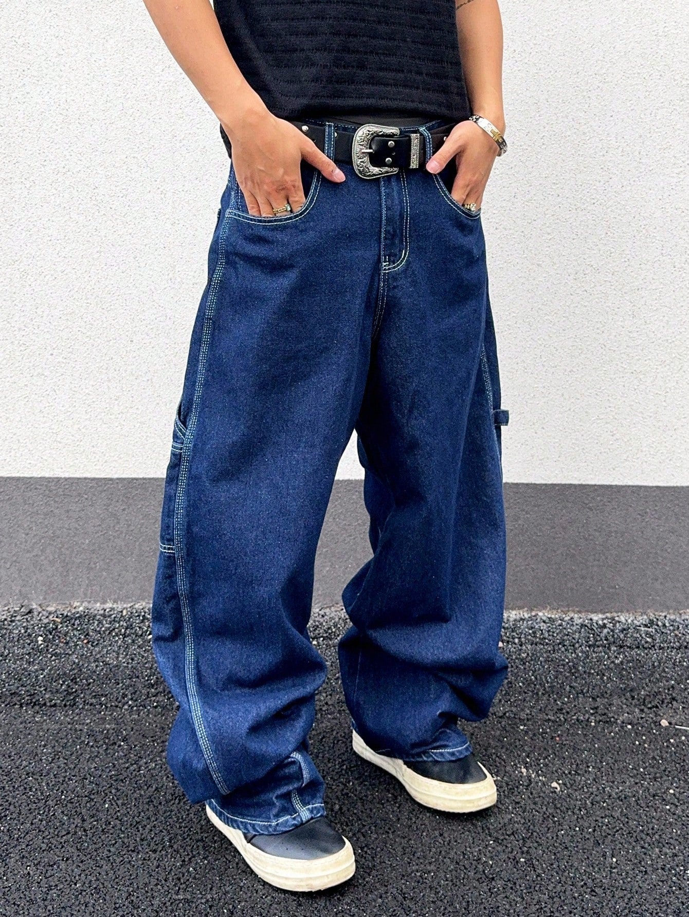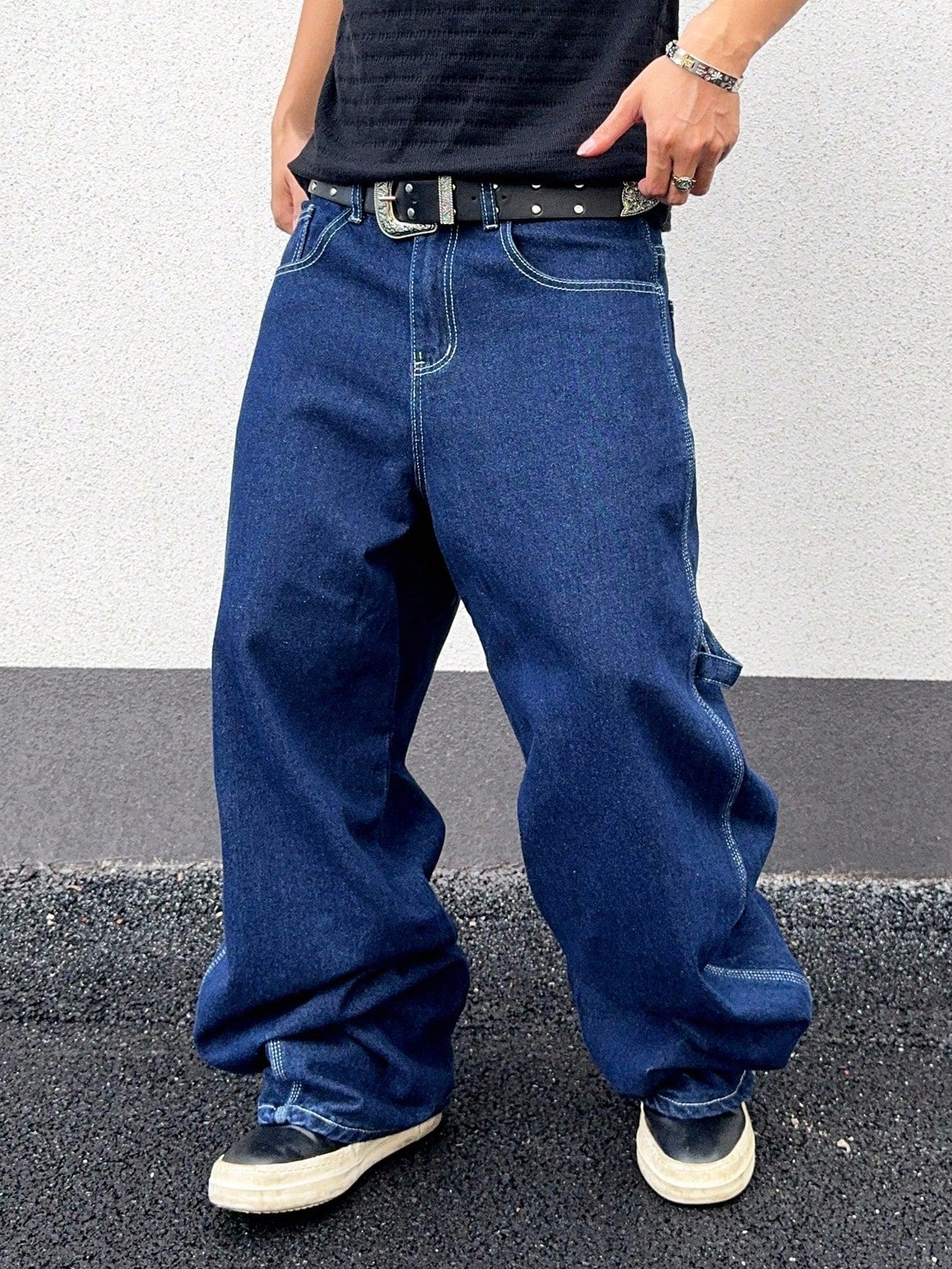 Men's Loose Fit Curved Hem Casual Jeans with Pocket Decor