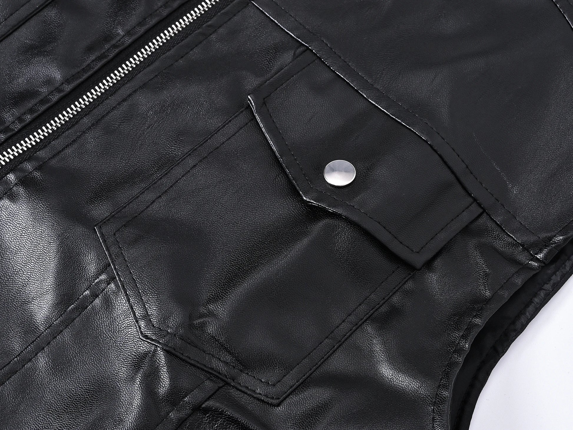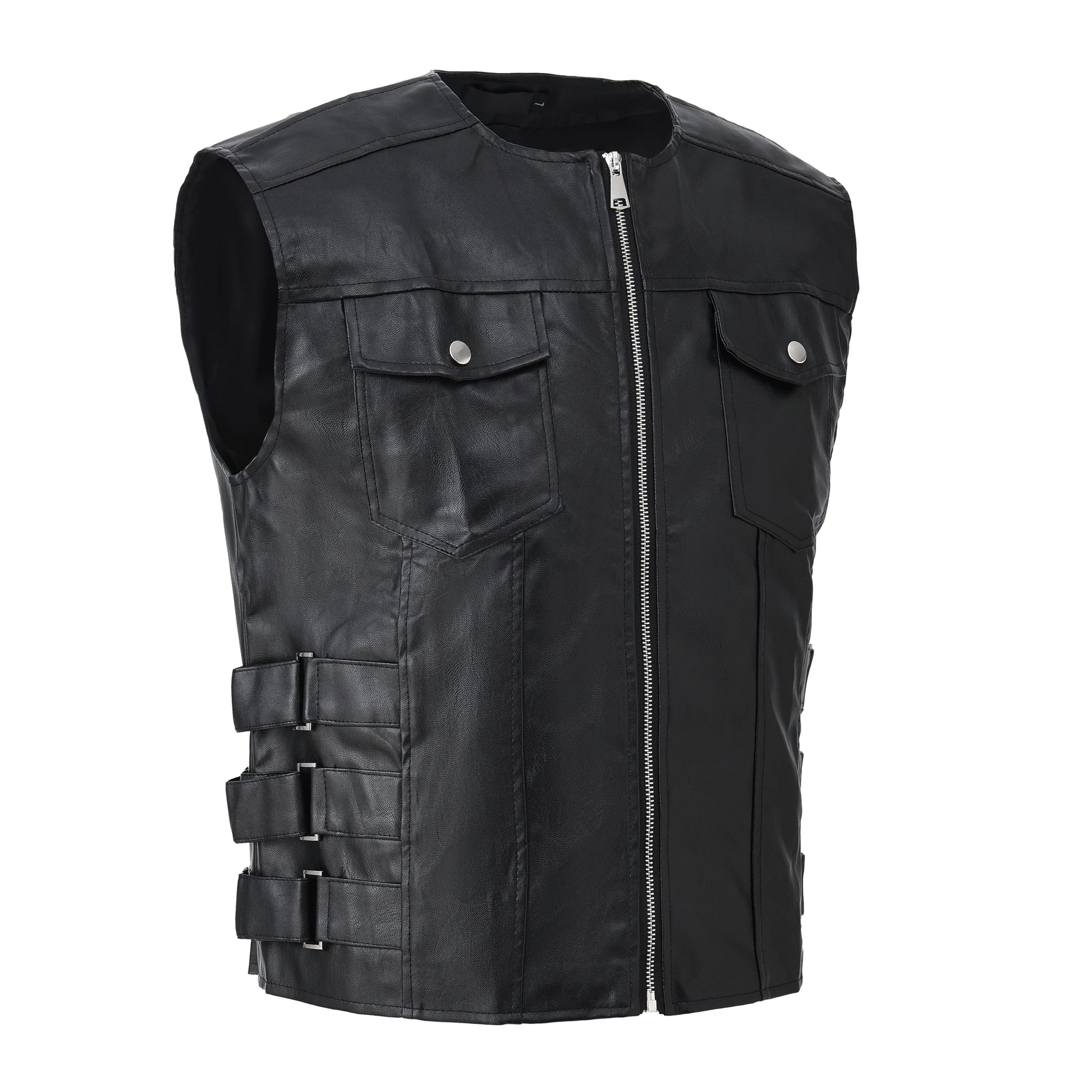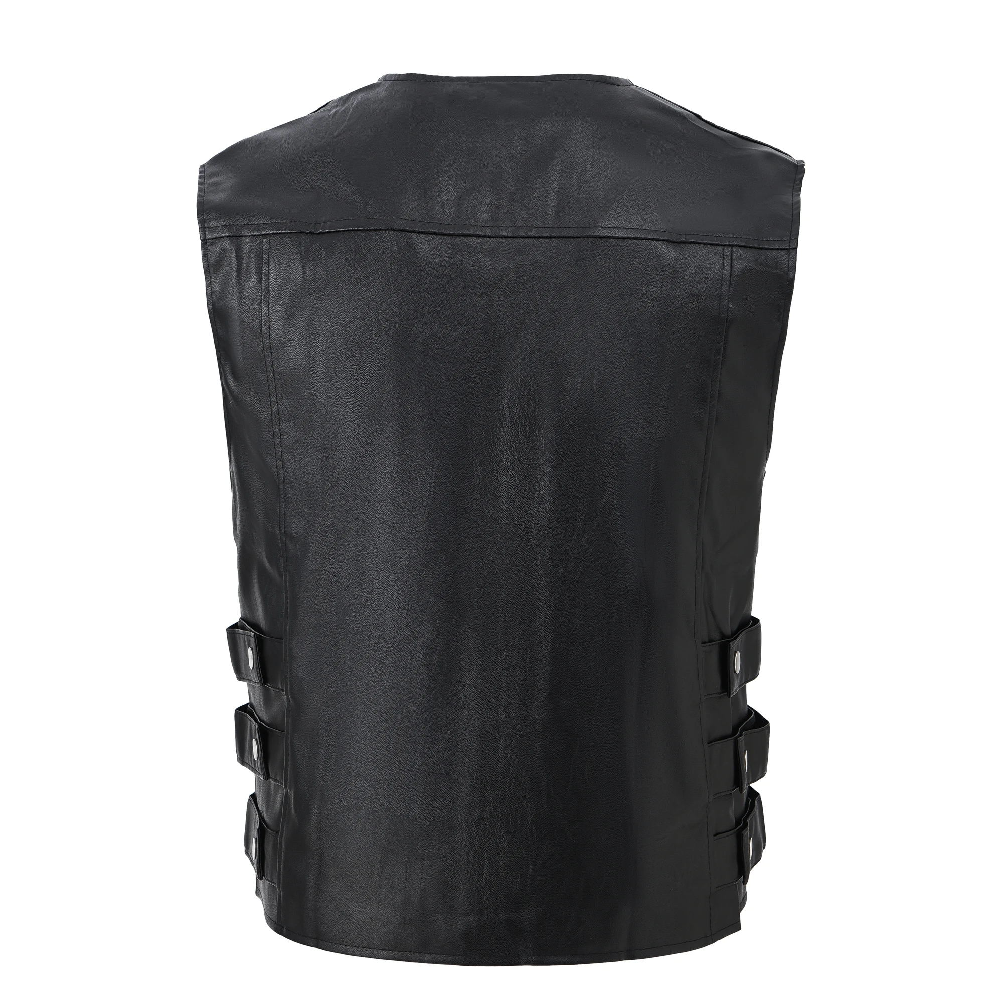 Men's Motorcycle Faux Leather Vest Sleeveless Collarless Waistcoat