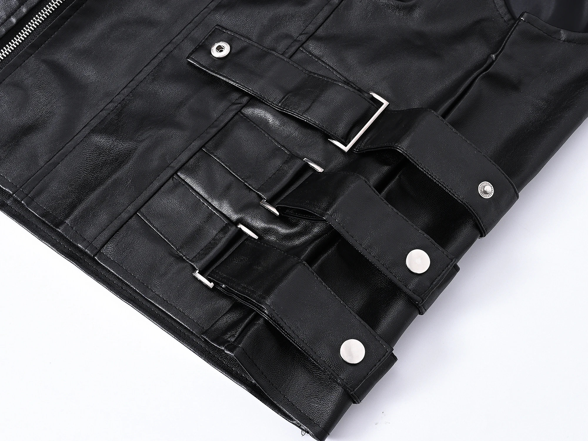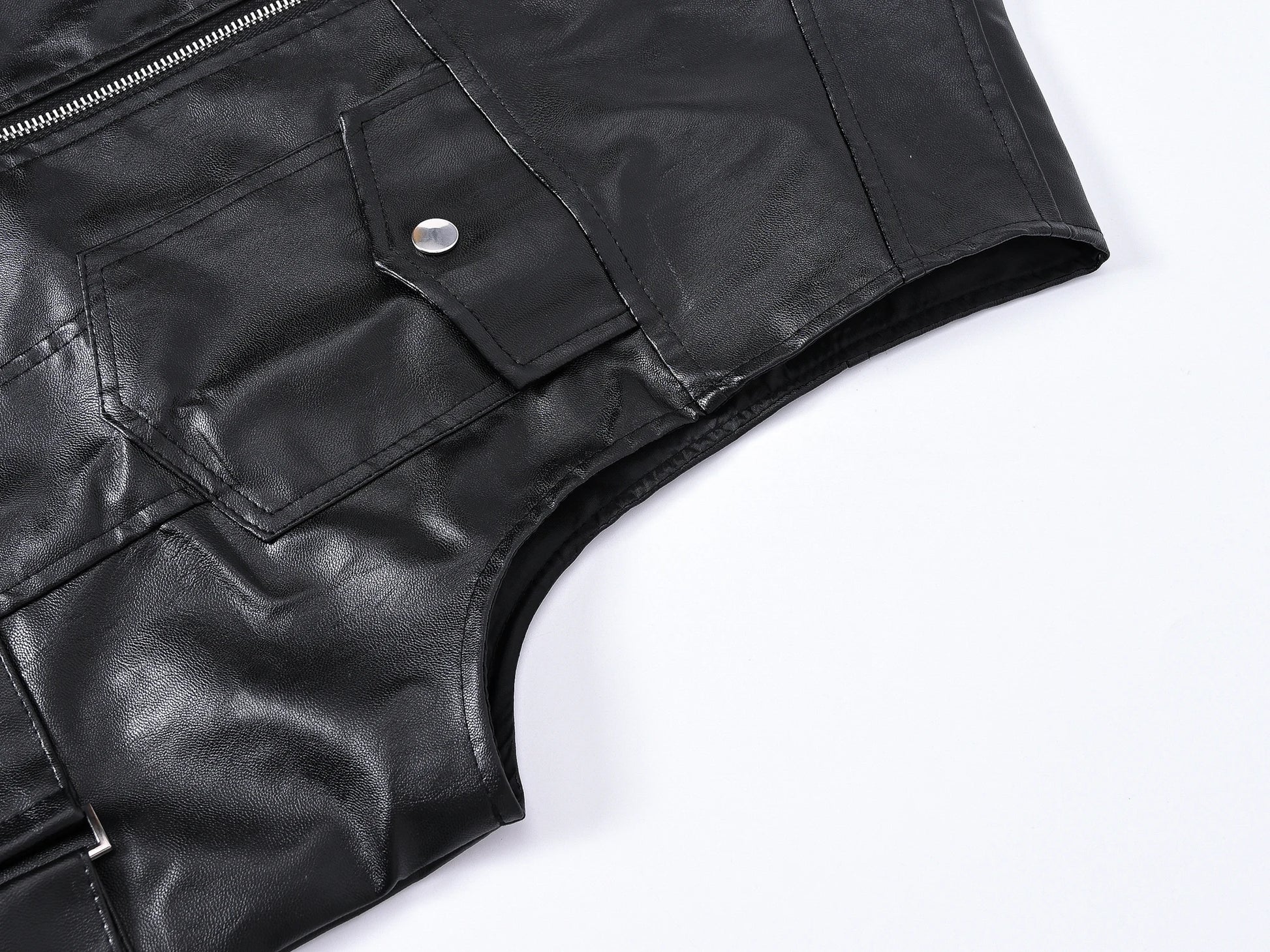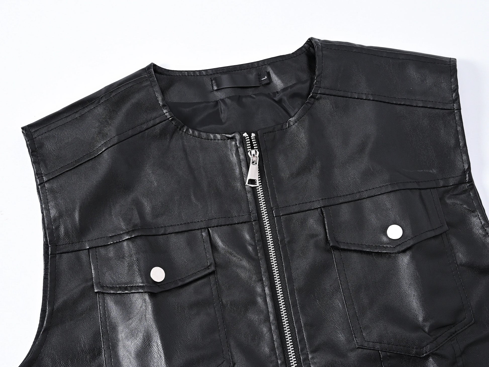 Men's Motorcycle Faux Leather Vest Sleeveless Collarless Waistcoat
