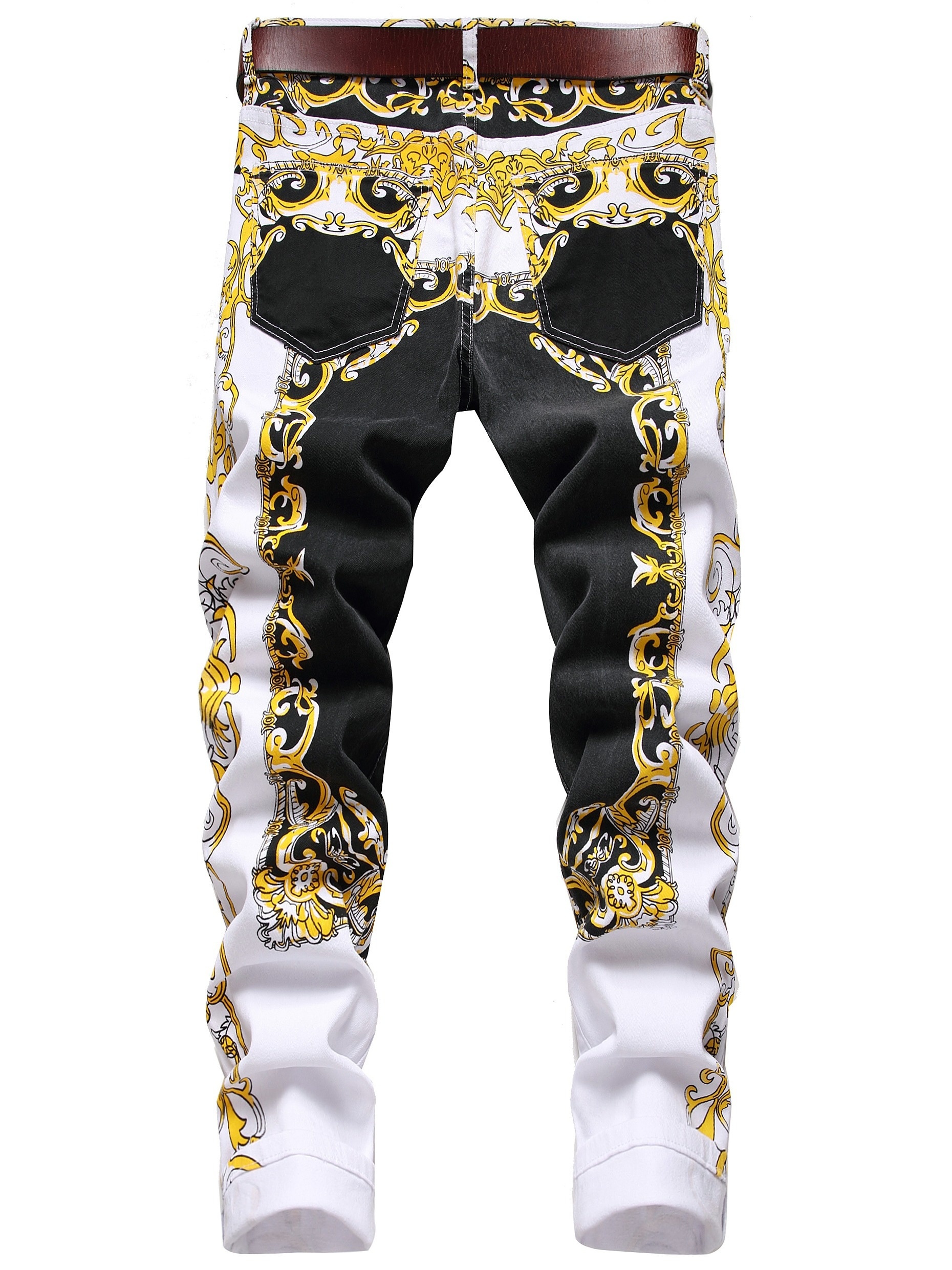 These Mens Printed Jeans are sure to elevate your style with their premium slim fit design and fashionable printed pattern. Made with a comfortable and stretchy denim material, these jeans provide a perfect fit for any occasion. Upgrade your wardrobe with these stylish and versatile printed pants for men.