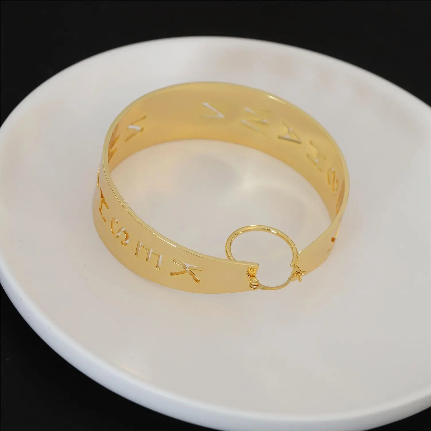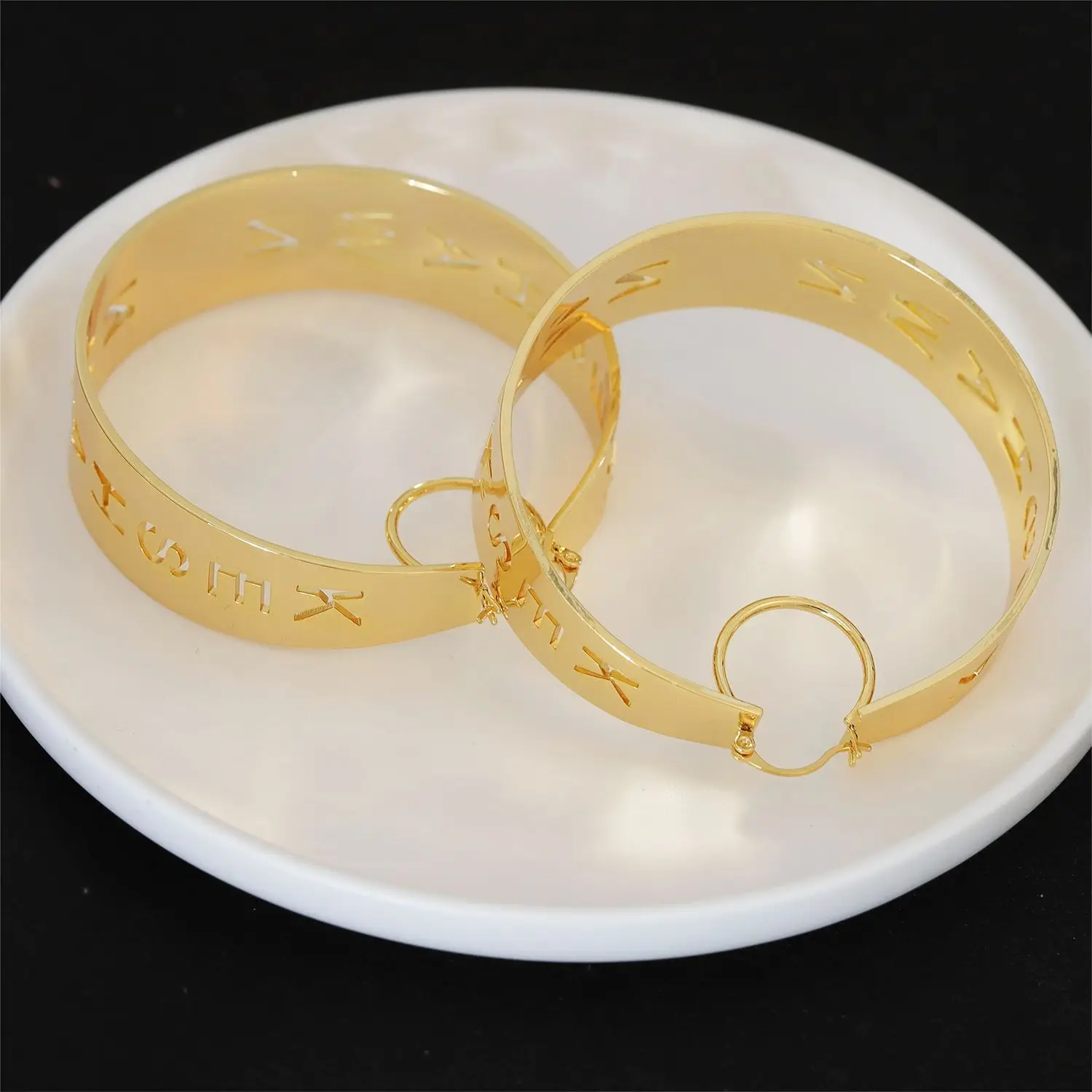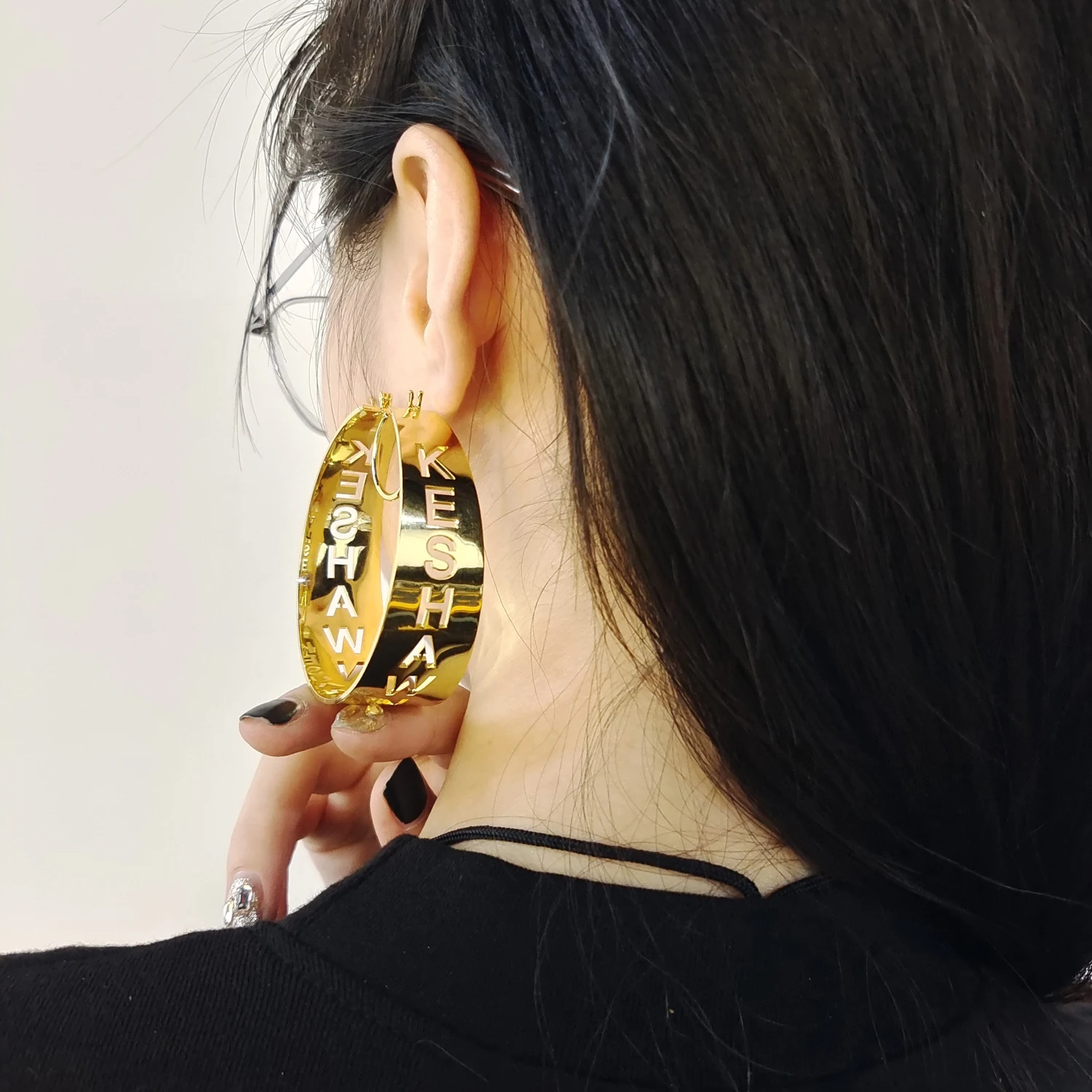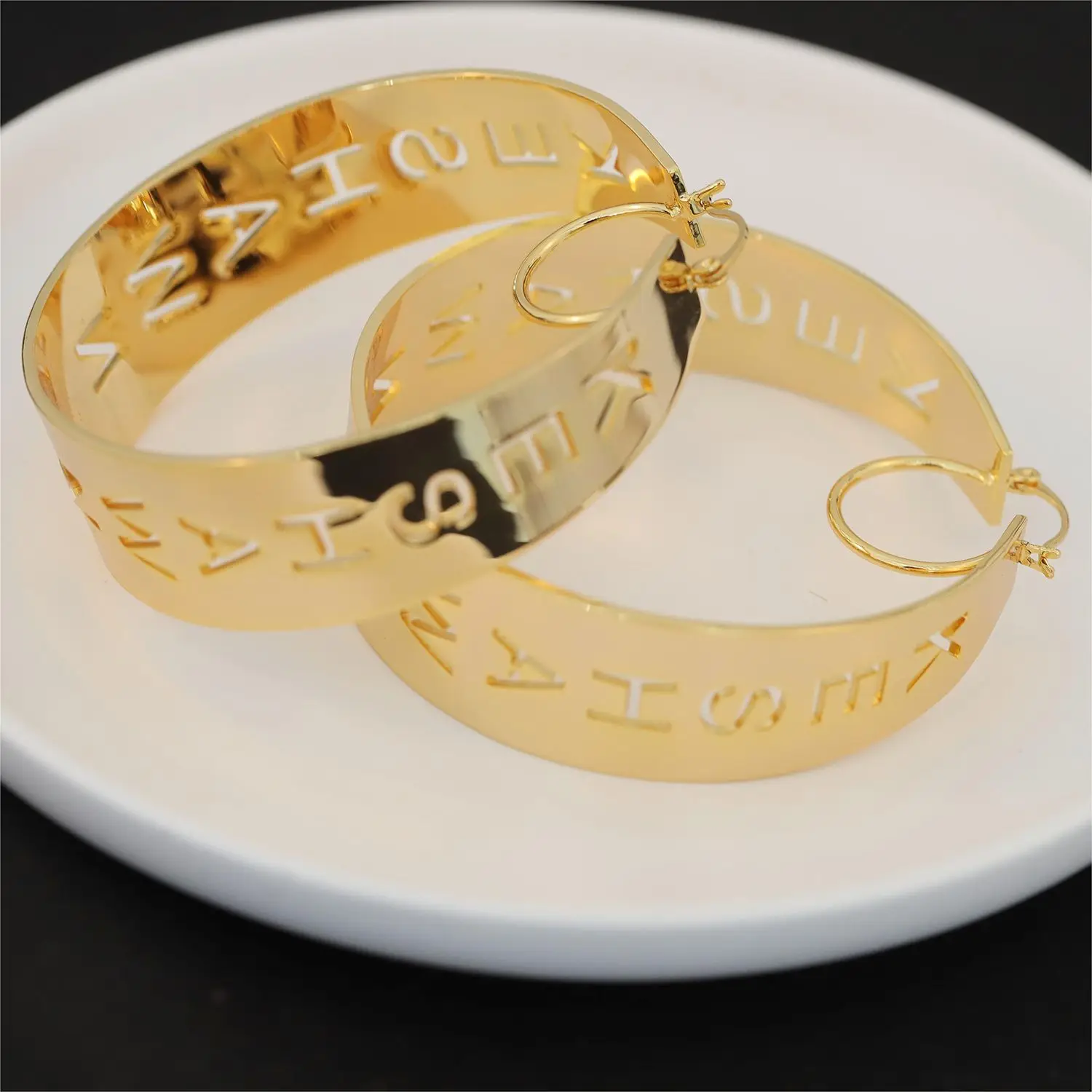 Elevate any outfit with MYDIY's custom letter earrings. Made of high-end stainless steel, these hoop earrings feature a unique hollow design and can be personalized with your name. A thoughtful gift for a loved one or a luxurious addition to your own jewelry collection.