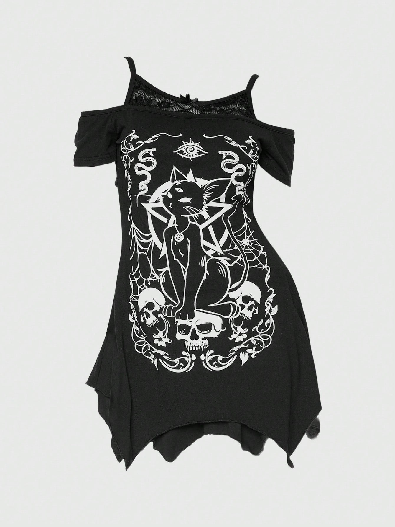 Mysterious Cat Eyes Gothic T-Shirt for Women