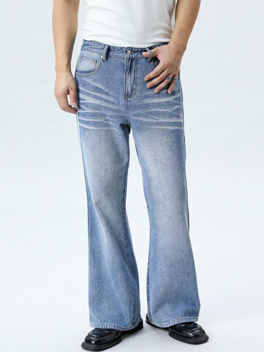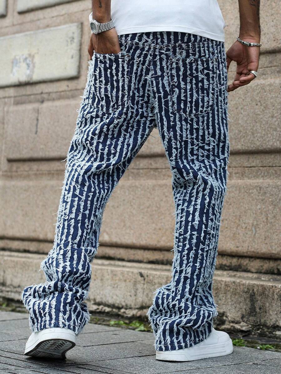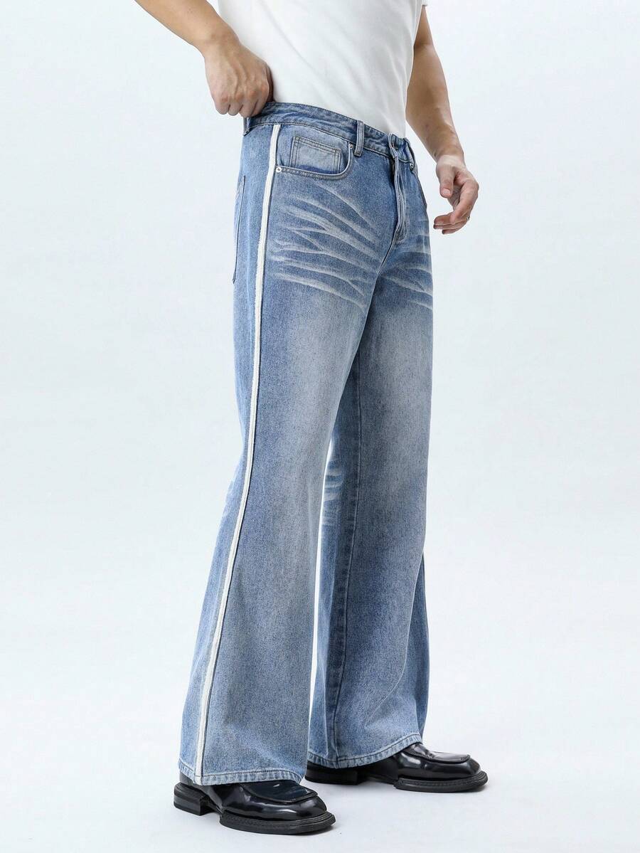 Streetrush Men's Jacquard Straight Leg Flare Wide Leg Jeans for Trendy Urban Style