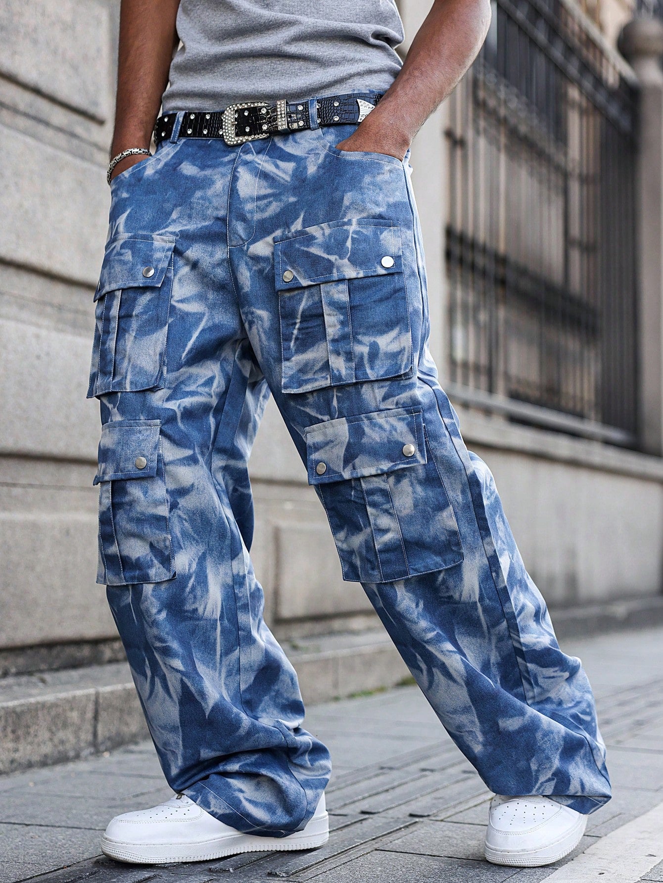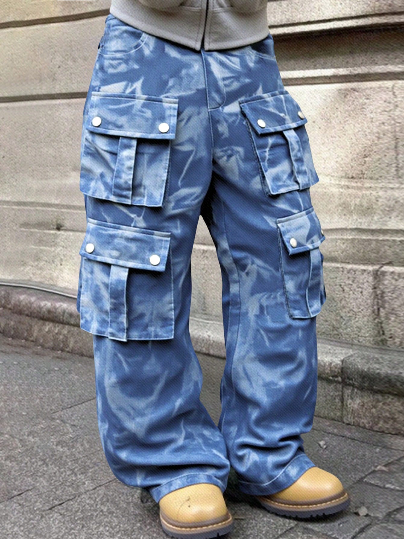 PAVTROS Men's Street Style Tie-Dye Multi-Pocket Loose Fit Pants - Versatile Vintage Trousers for Everyday Chic