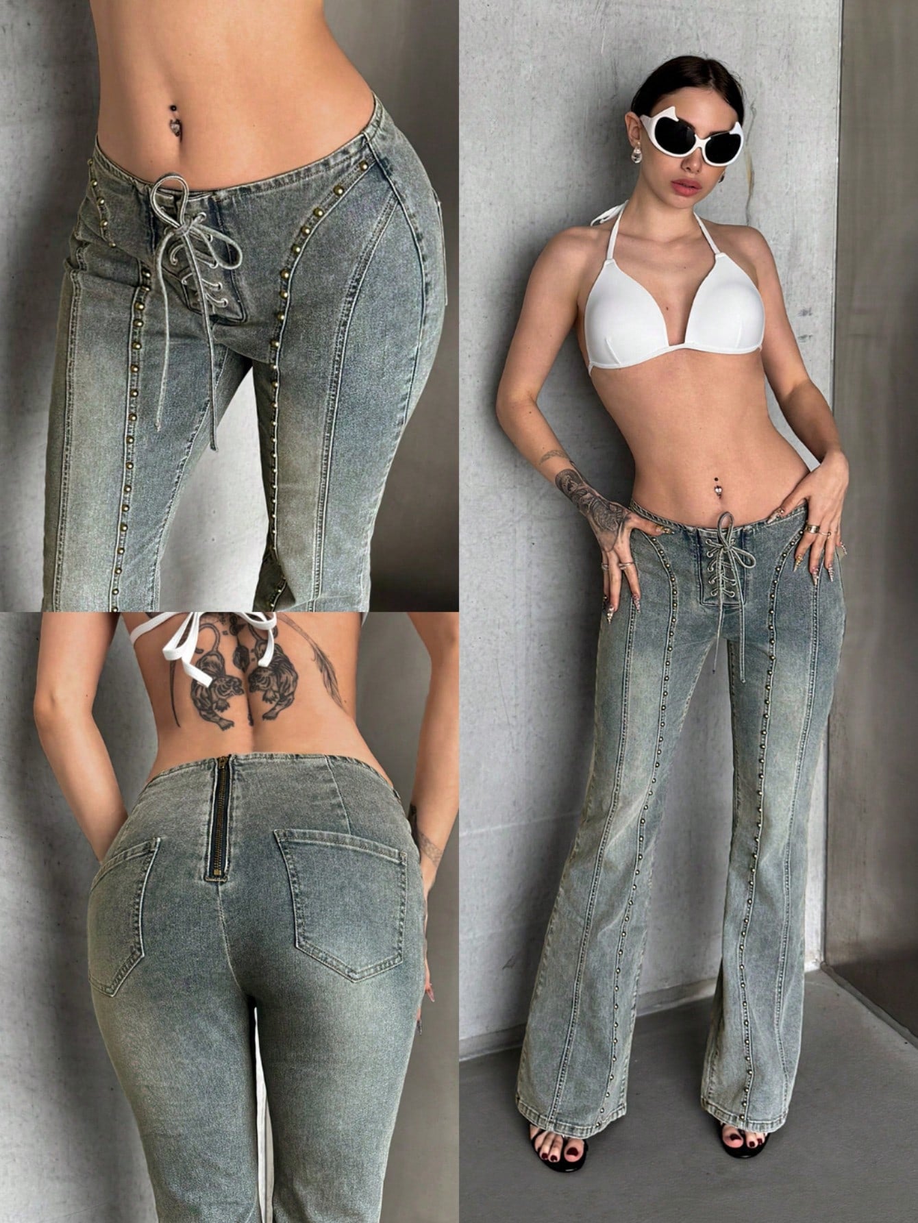 Plus Size Women’s Retro Vintage Flare Jeans - Chic Deep Blue Streetwear Style