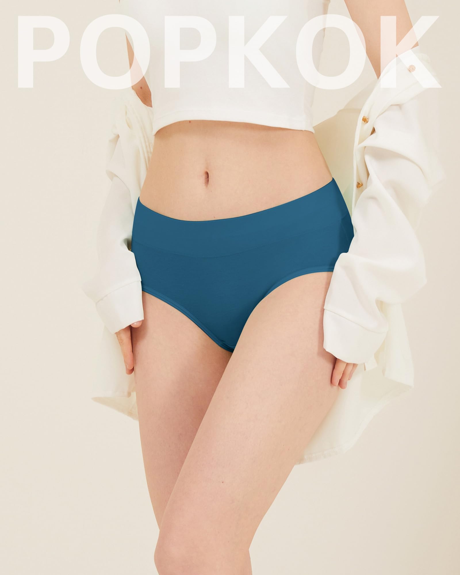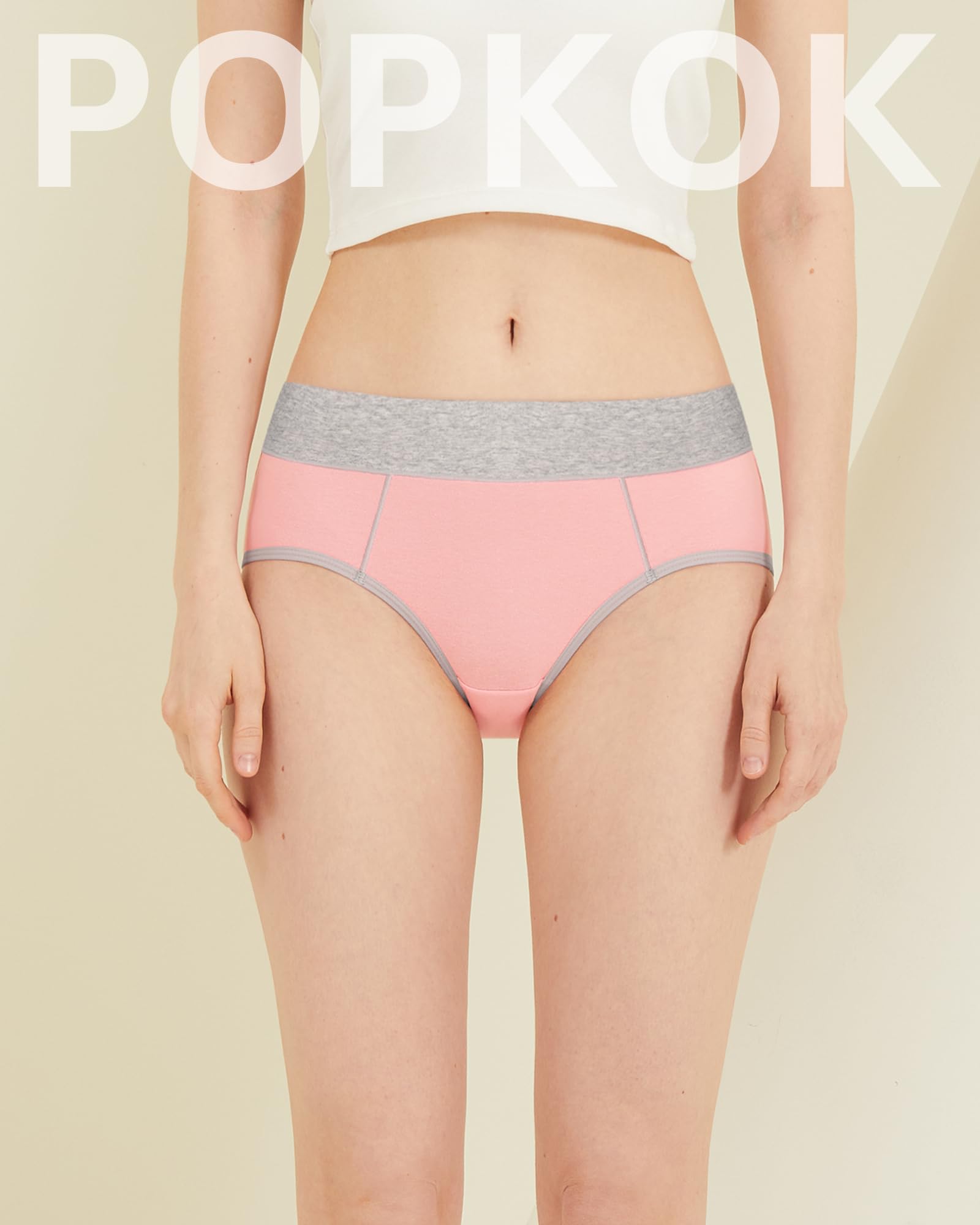 - FABRIC COVERED WAISTBAND: POPKOK big girls mid waisted underwear with double layer soft stretchy fabric-covered waistband (About 1 inch elastic inside) will always sit right at the waist, with no rolling or bunching. As Mid Rise cotton briefs, they can provide better comfort and security.