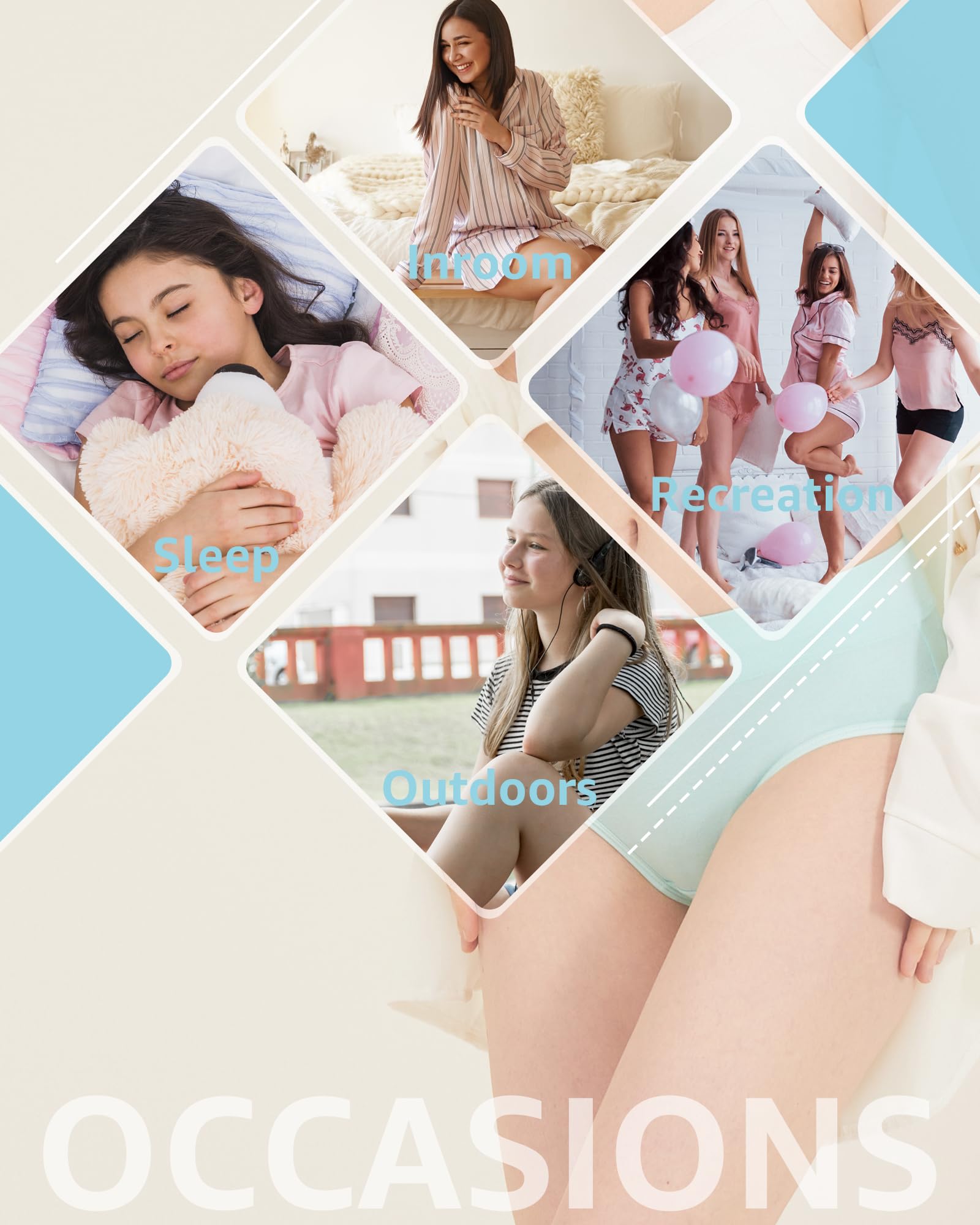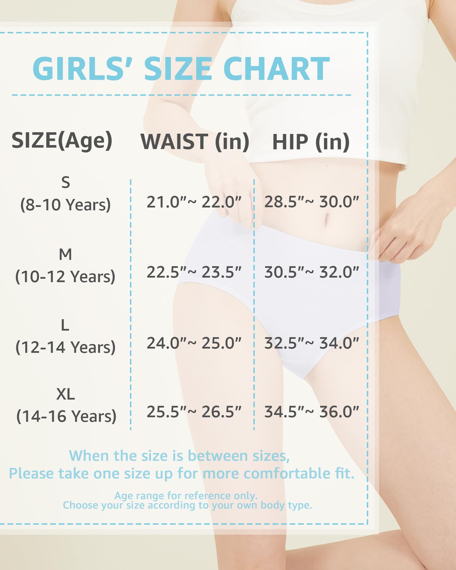 - FIND YOUR BEST SIZE: The teen girls underwear are designed for teenage girls 8-16 years old. When the size is between sizes, please take one size up for a more comfortable fit.