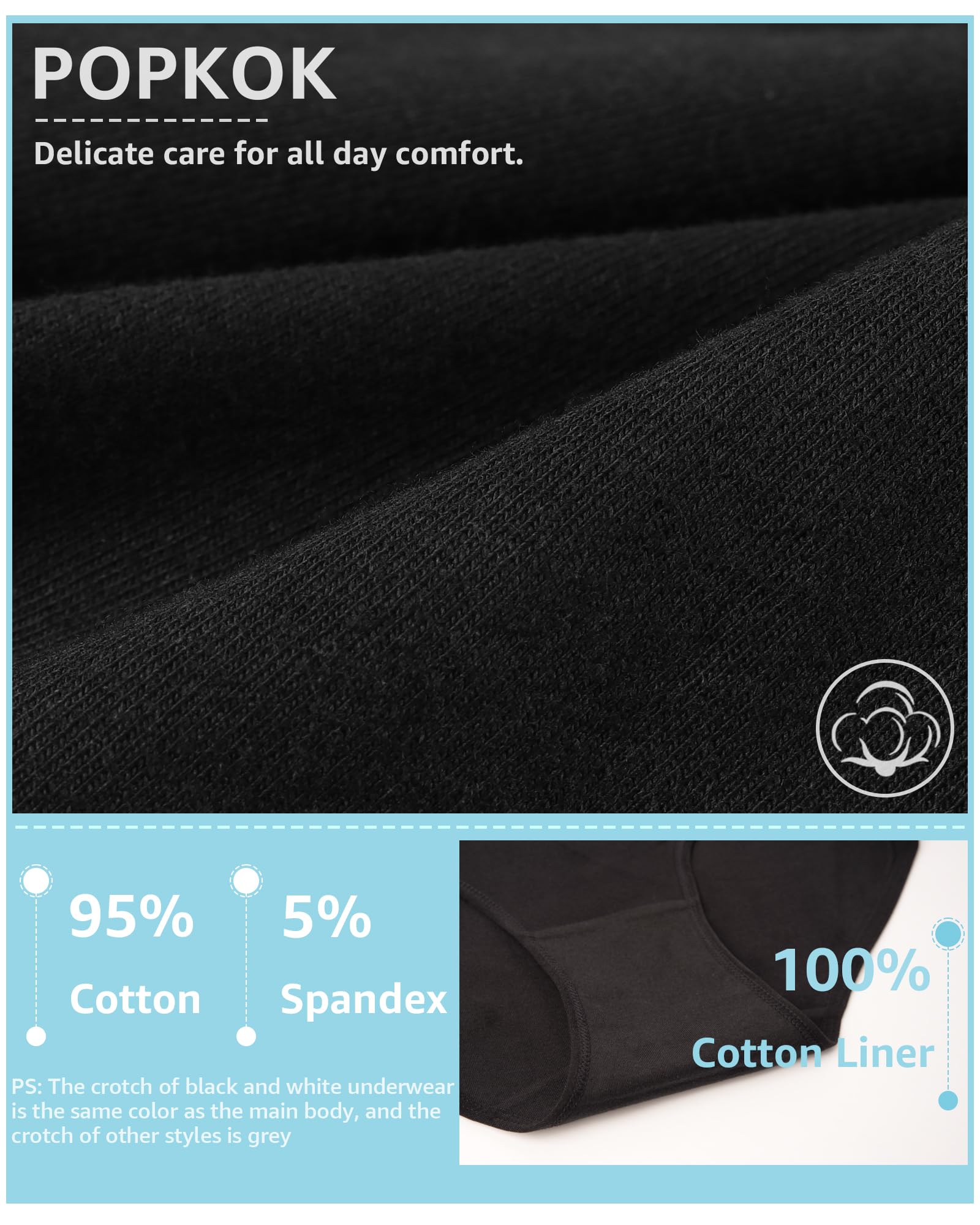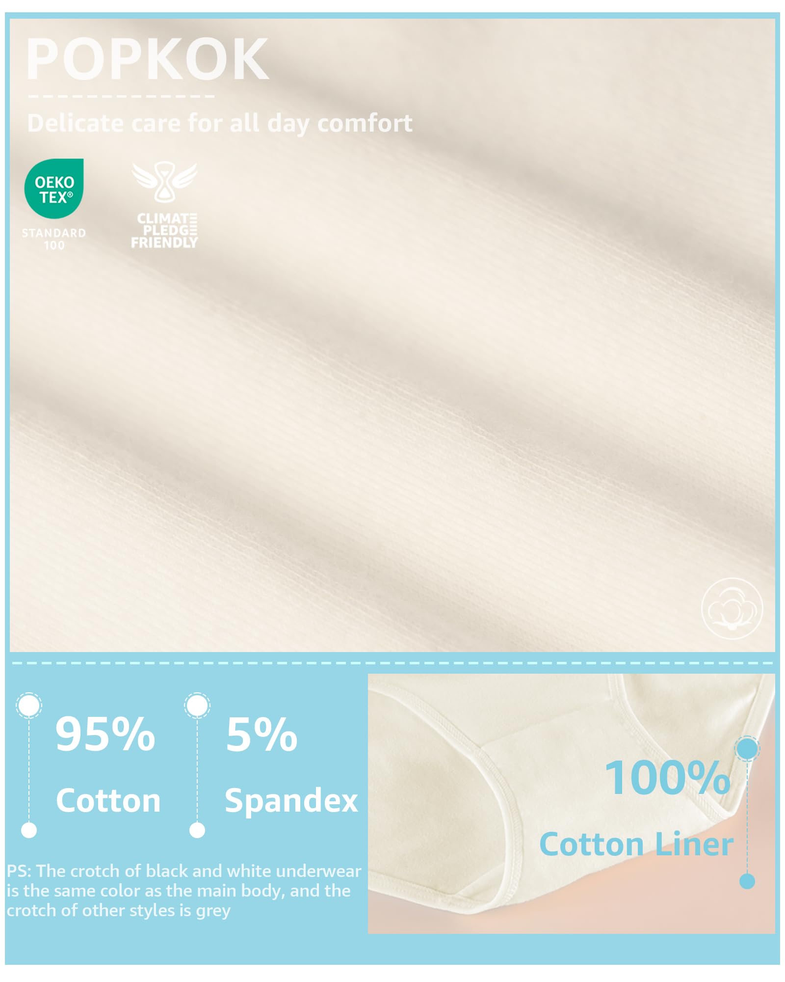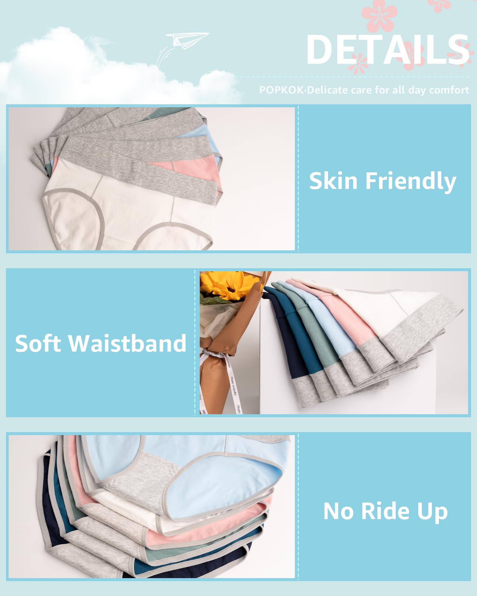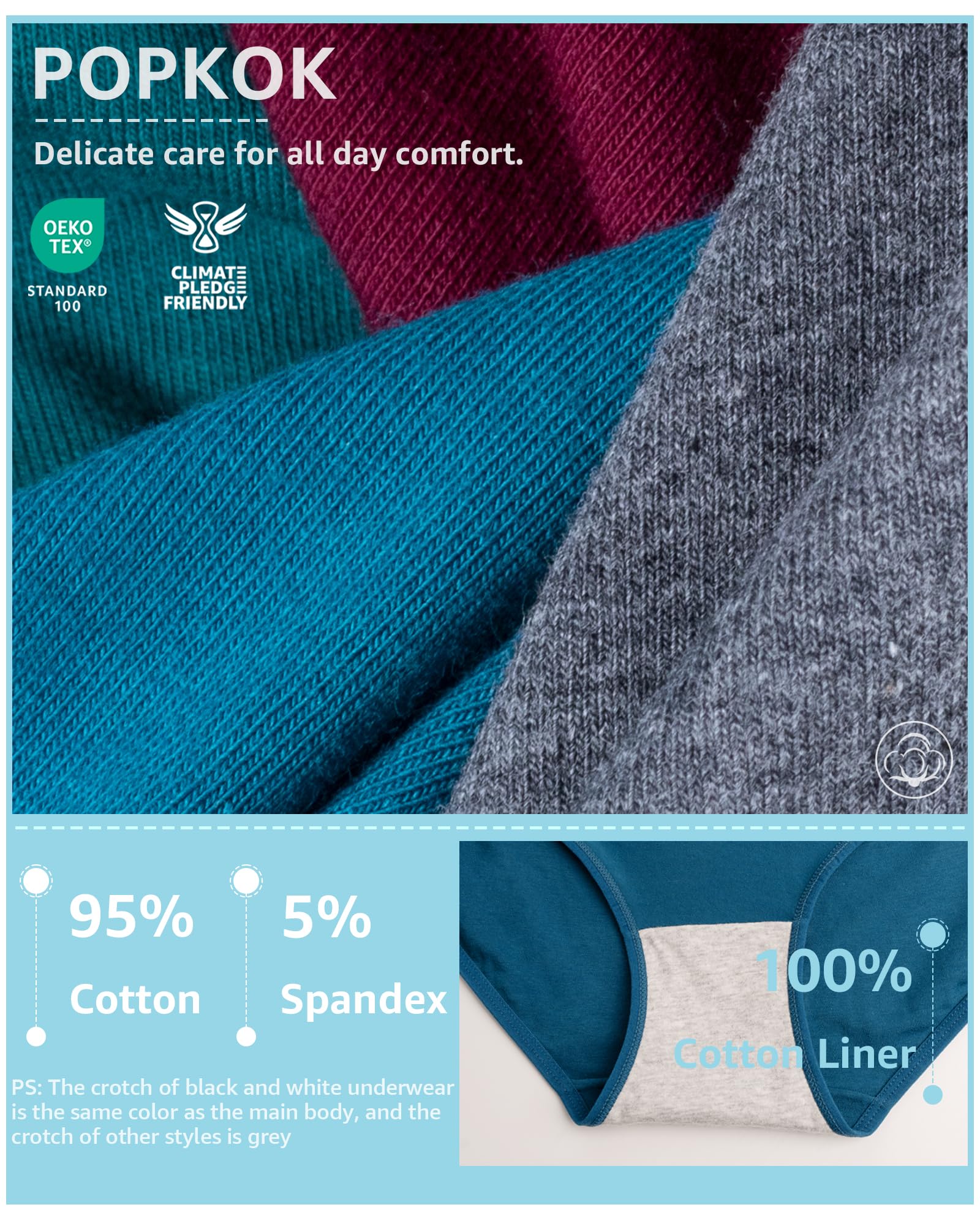 - SELECTED HEALTHY FABLIC: POPKOK teen girls cotton underwear, made of 95% premium cotton and 5% spandex, which combine softness and breathability, are friendly to the skin, and will keep comfortable and dry all day long. Also, there is an extra 100% cotton layer in the crotch area for added softness protection.